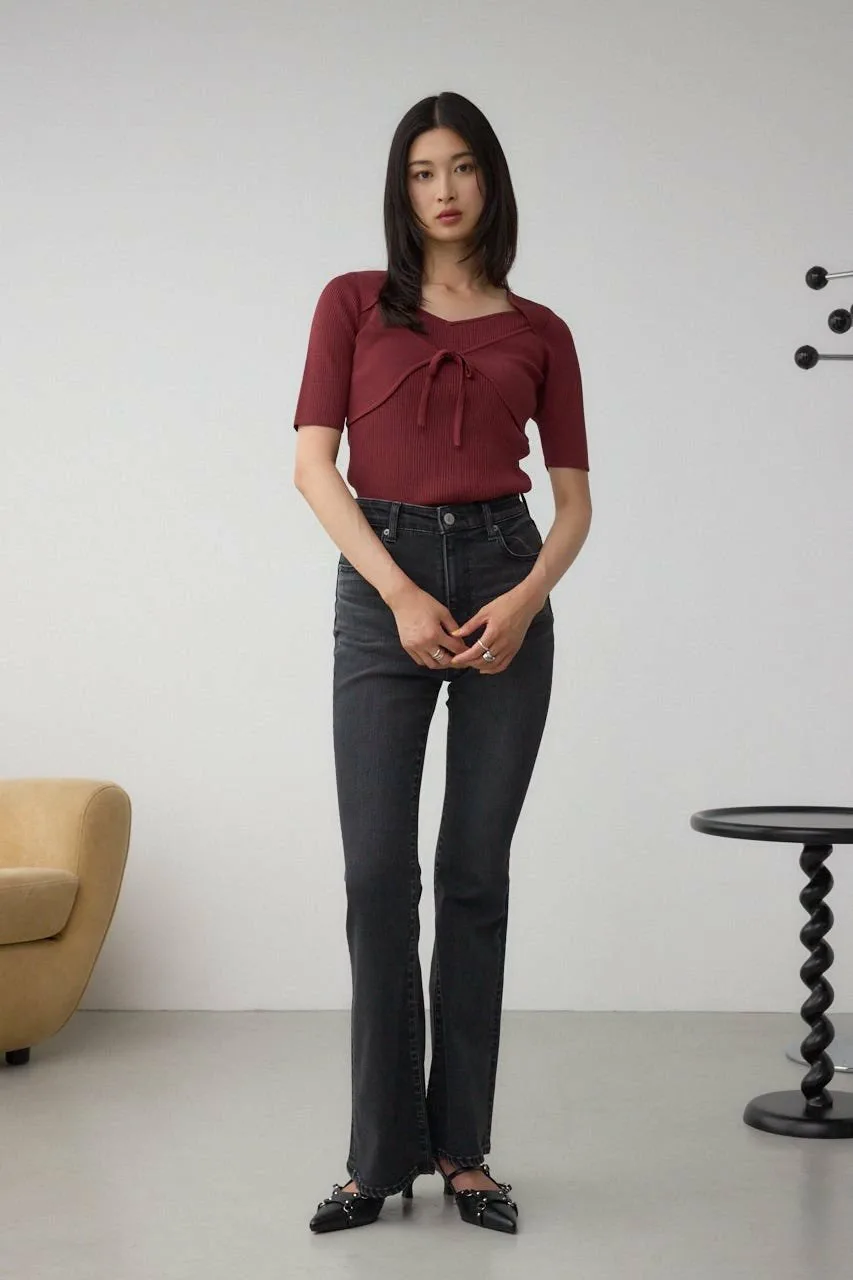 Вязаный бюстье надет спереди, создавая дизайн, который можно носить отдельно, чтобы завершить образ.