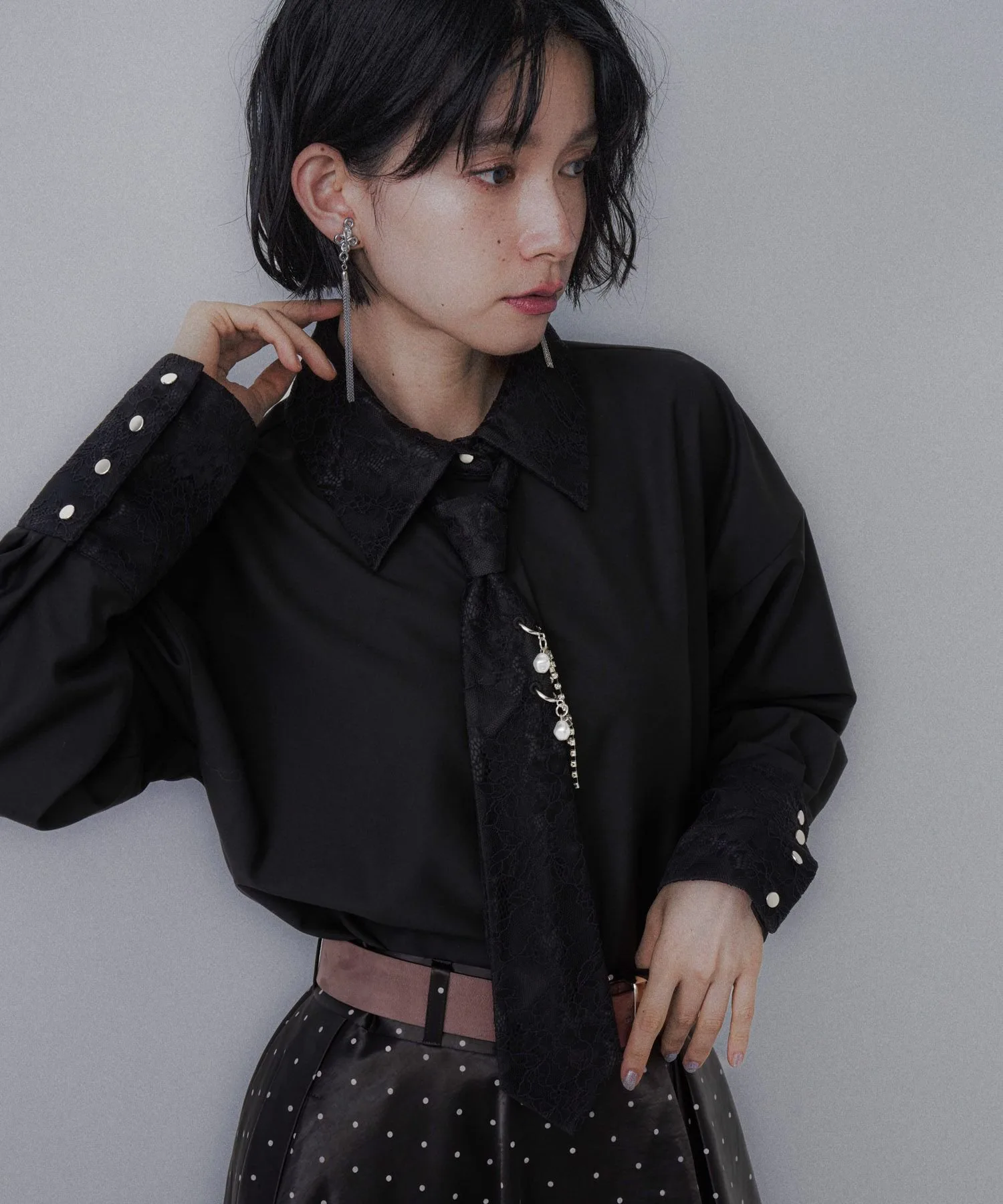 □Дизайнерская рубашка со съемными жемчужными элементами на галстуке