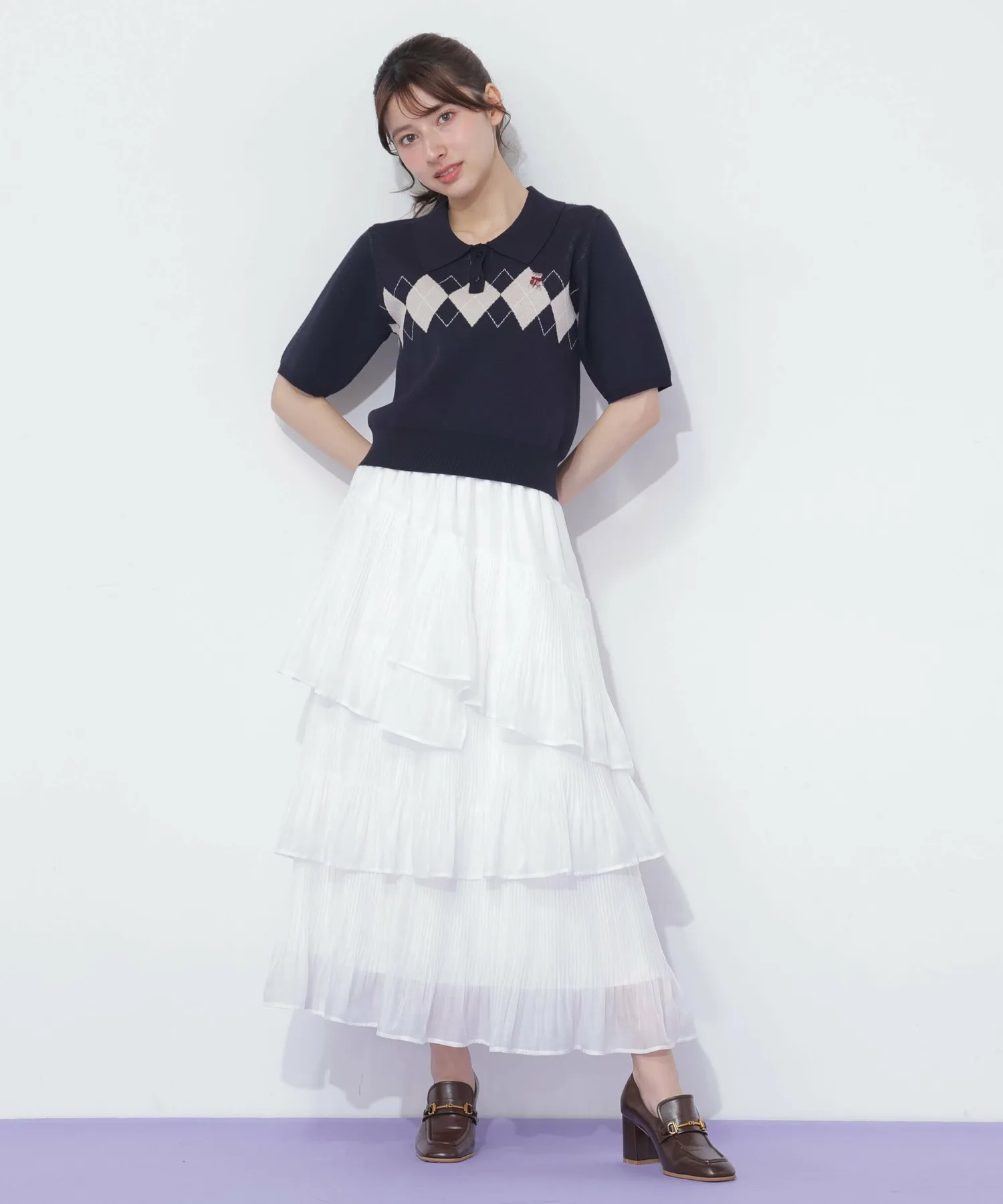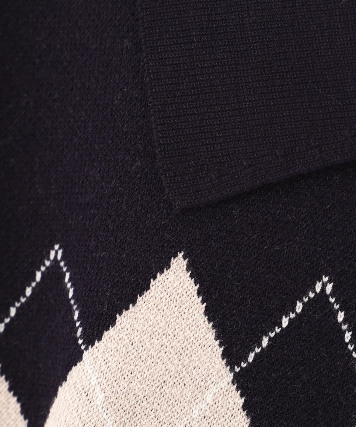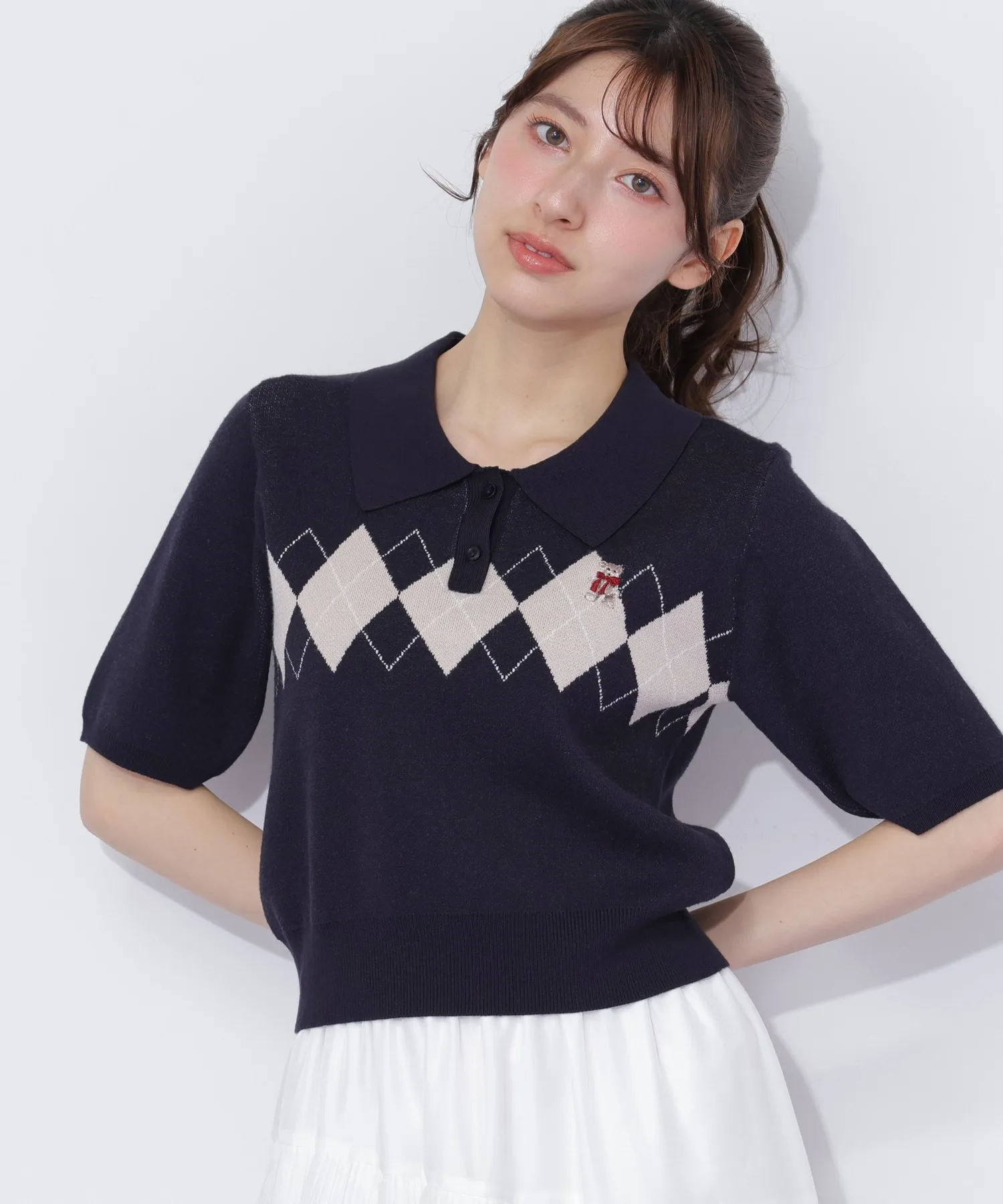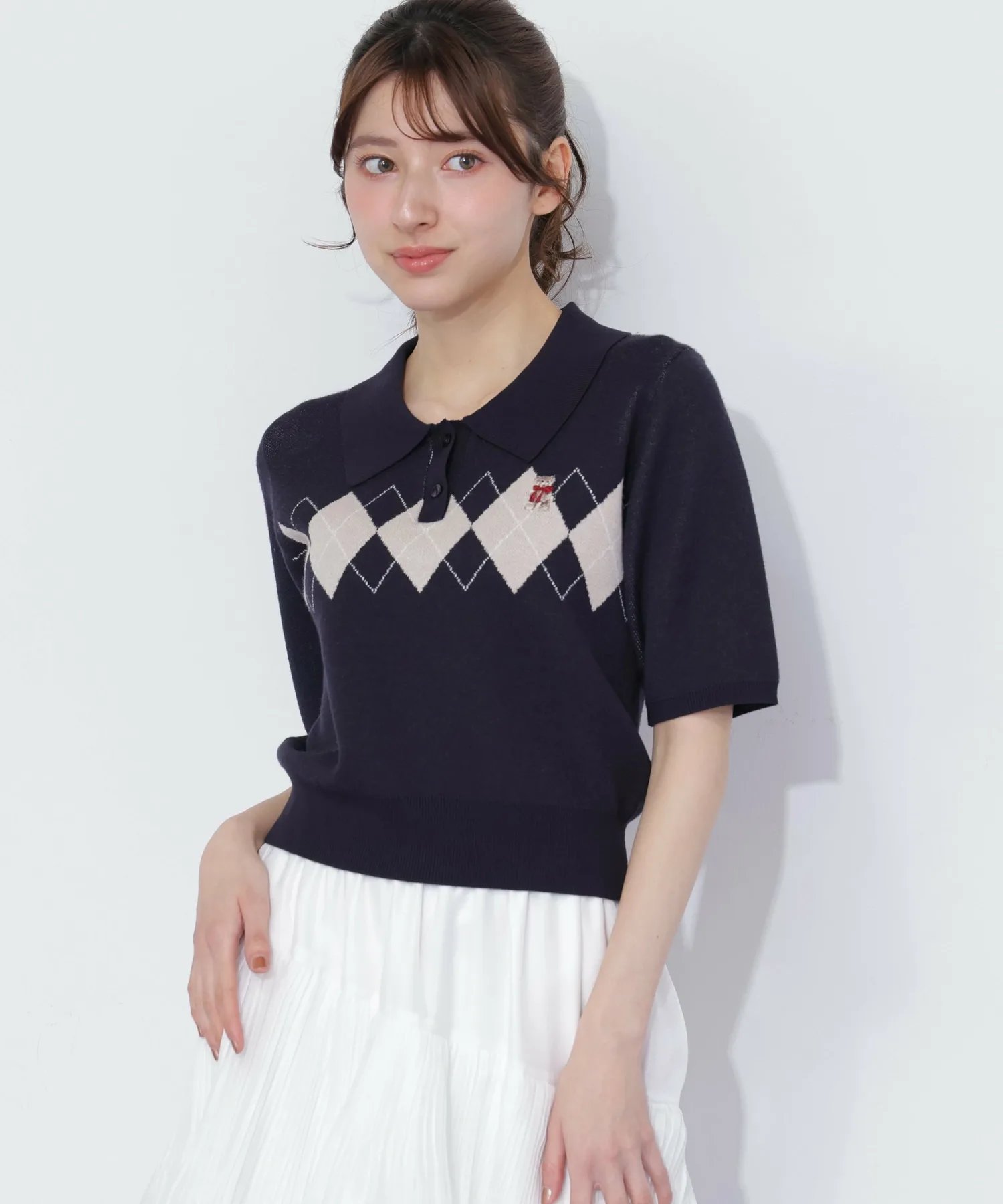 Этот оригинальный трикотаж украшен узором «аргайл» в весенних тонах и милой вышивкой JILLBEAR на левой стороне груди. Легкая и гладкая ткань идеально сочетается с плиссированными брюками.