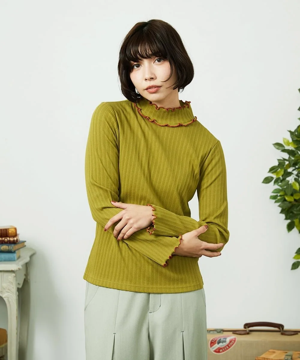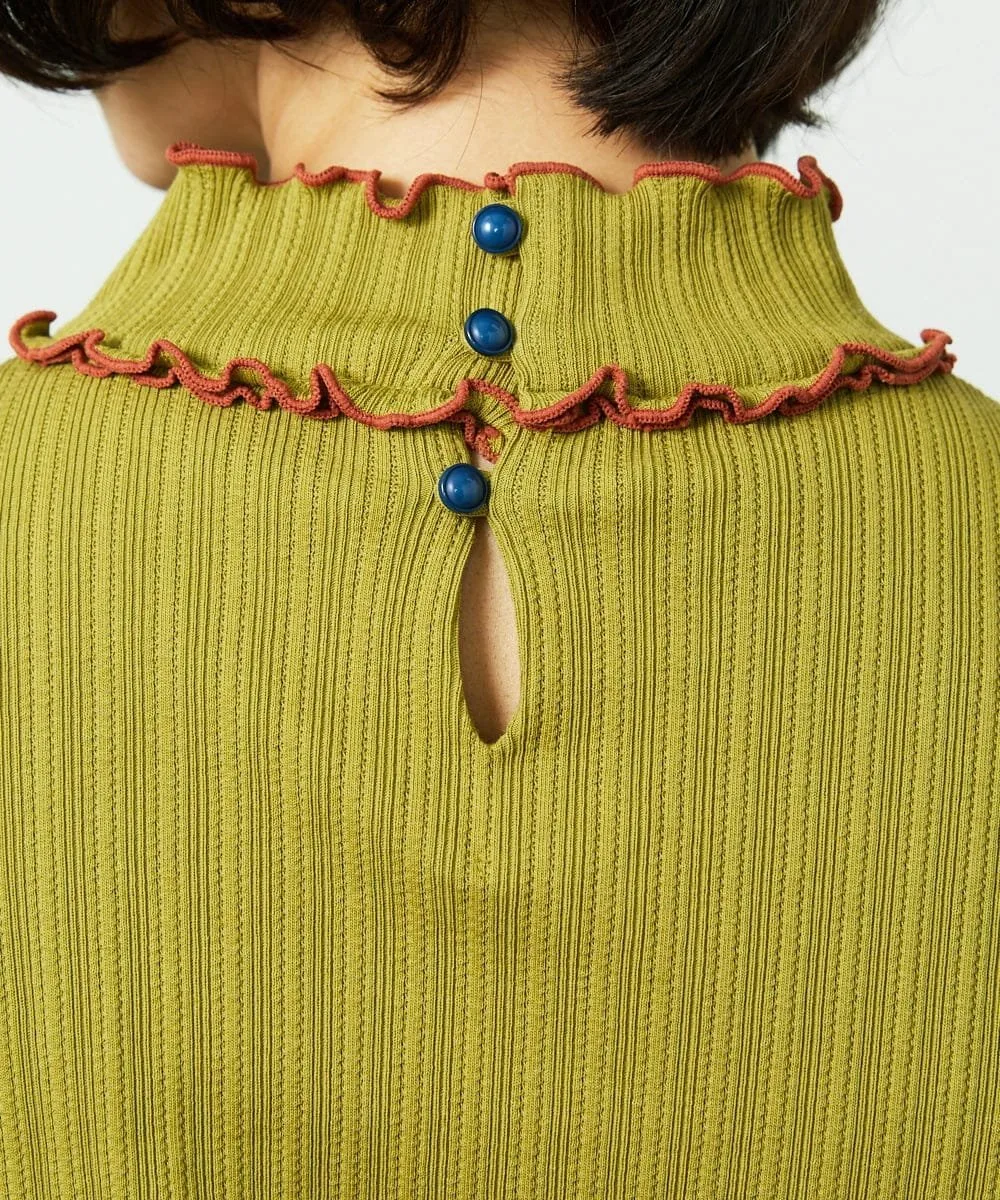 Топ с высоким воротником и привлекательными оборками в тон. Удобный крой делает его идеальным для ношения как в качестве нижнего слоя, так и самостоятельно. Оборки в тон на манжетах и воротнике удвоены только у основания шеи, создавая уникальную дизайнерскую деталь. Простой дизайн позволяет легко сочетать его с платьем или носить как жакет.