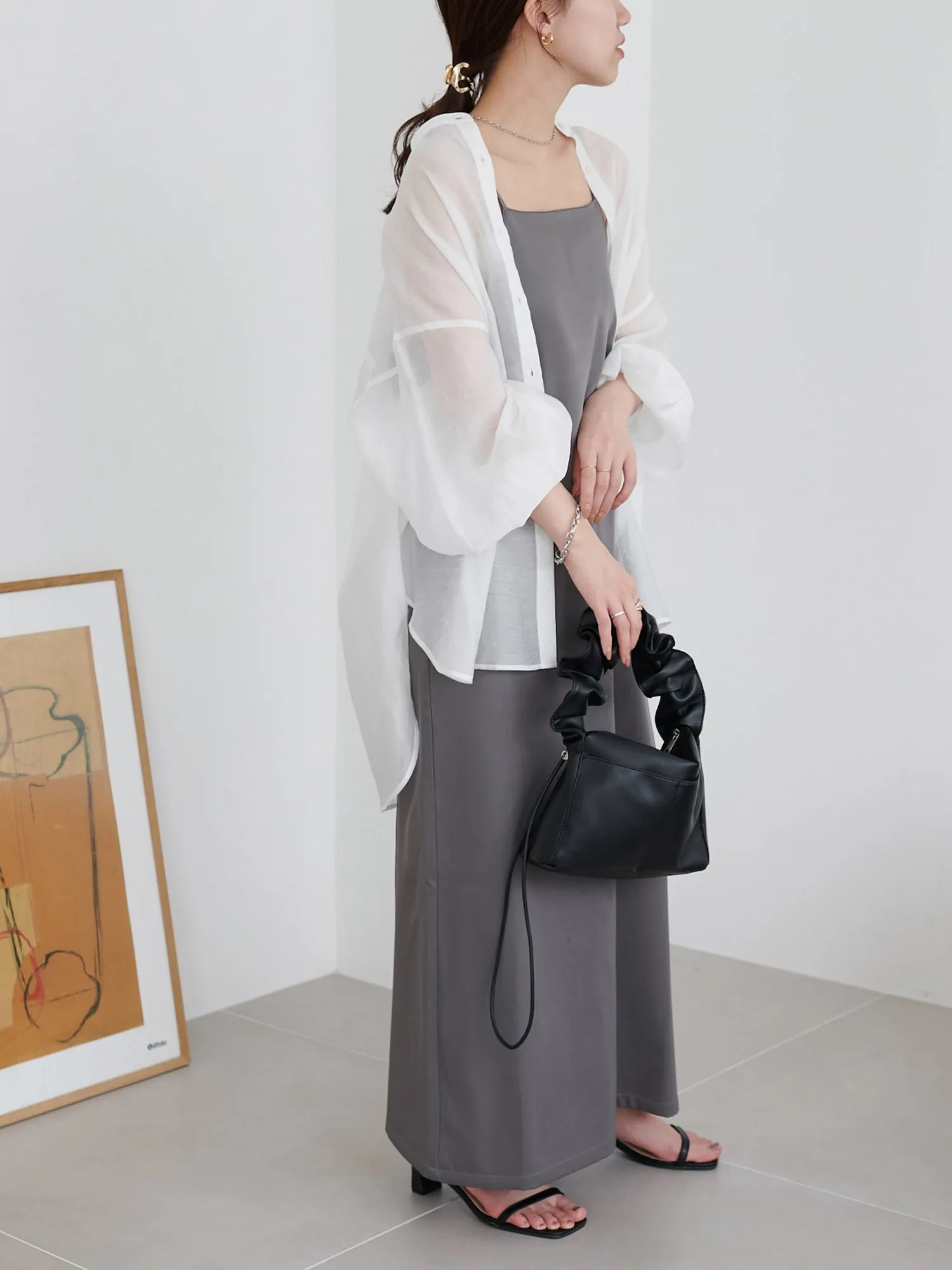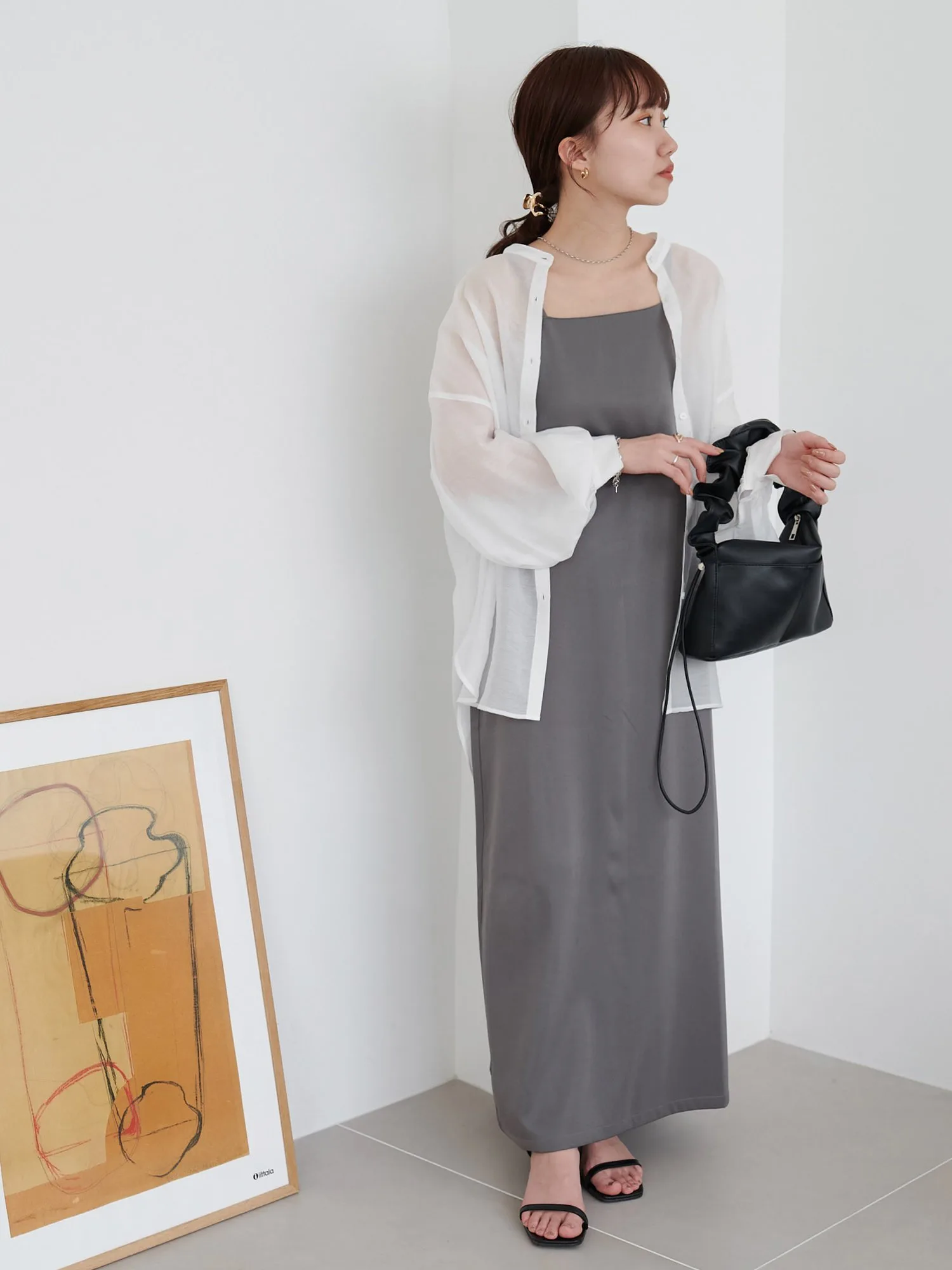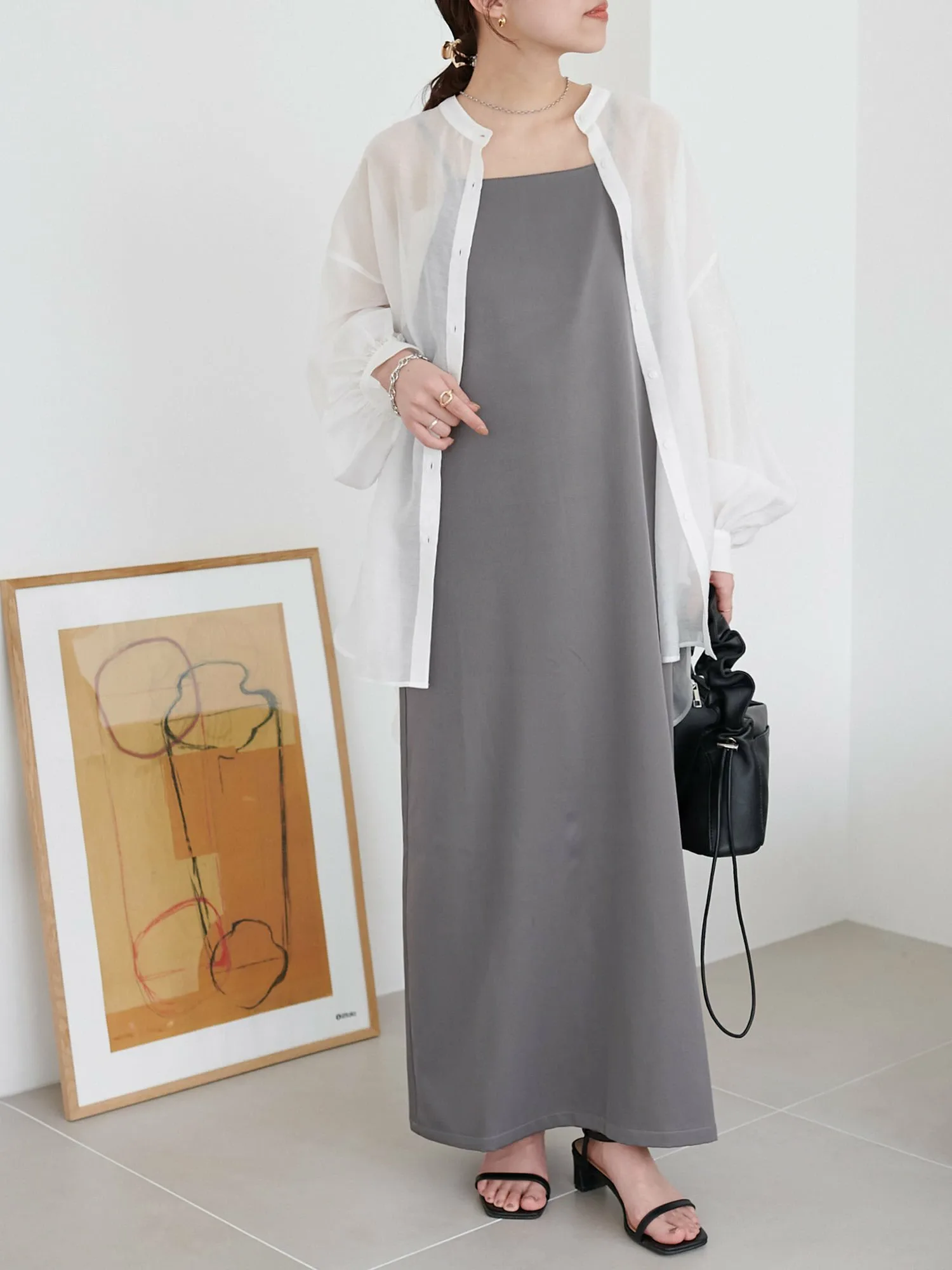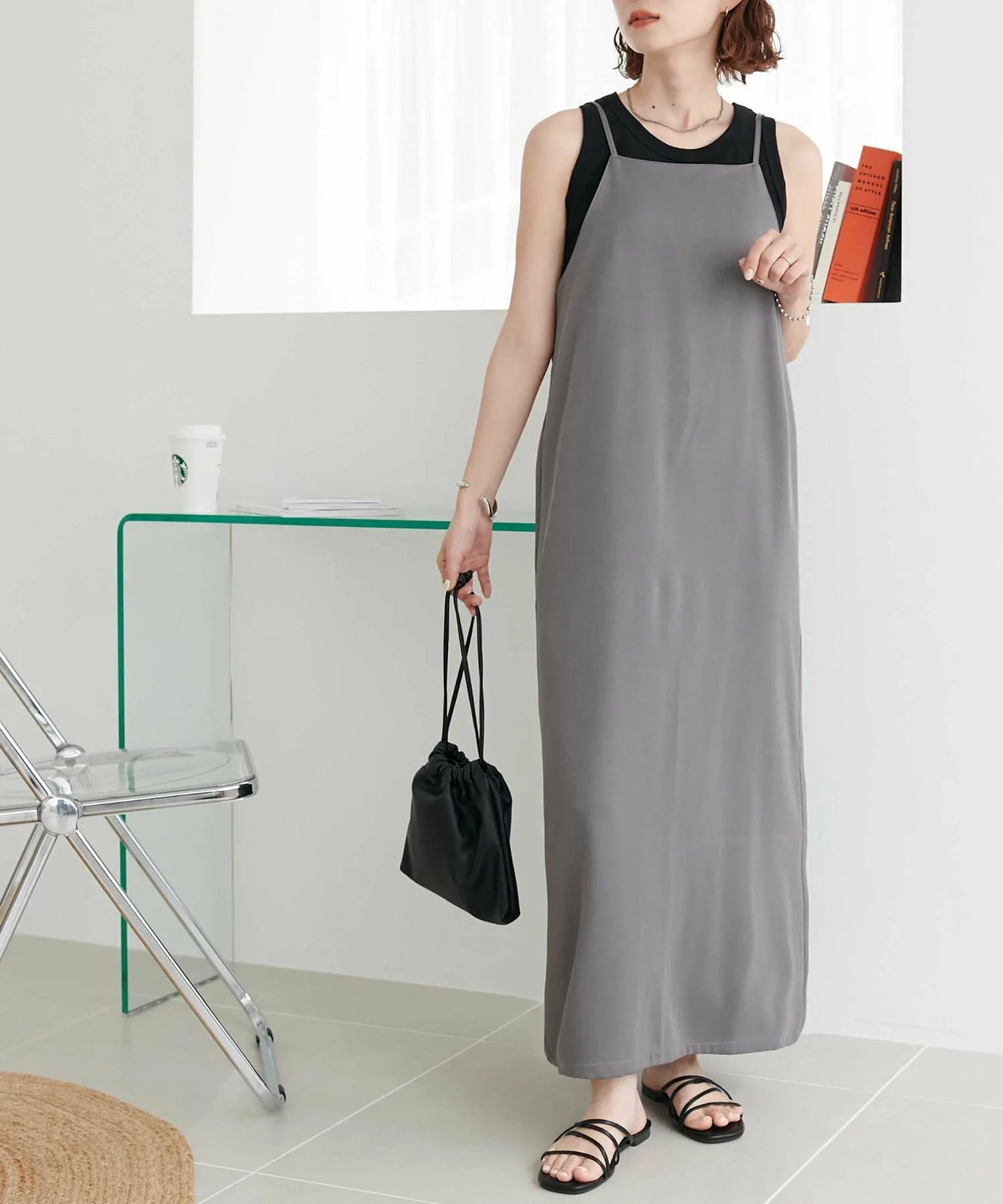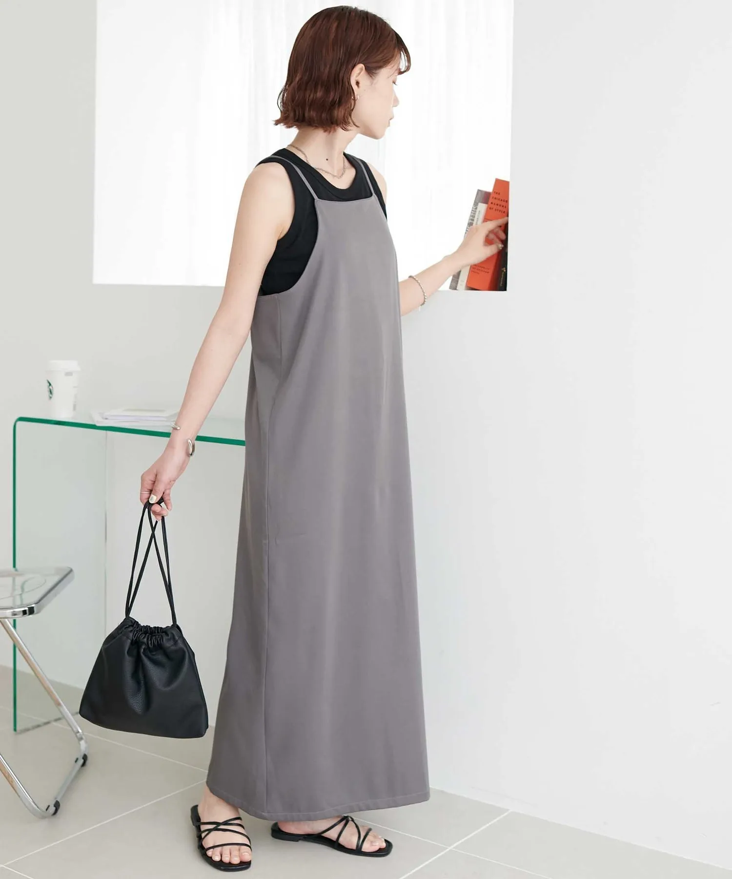 Персонал ростом 159 см: Ширина достаточно большая, платье удобное, а свободный крой придает ему аккуратный вид.◎ Плечевые лямки регулируются с помощью регулятора, поэтому оно подходит как для невысоких, так и для высоких людей!