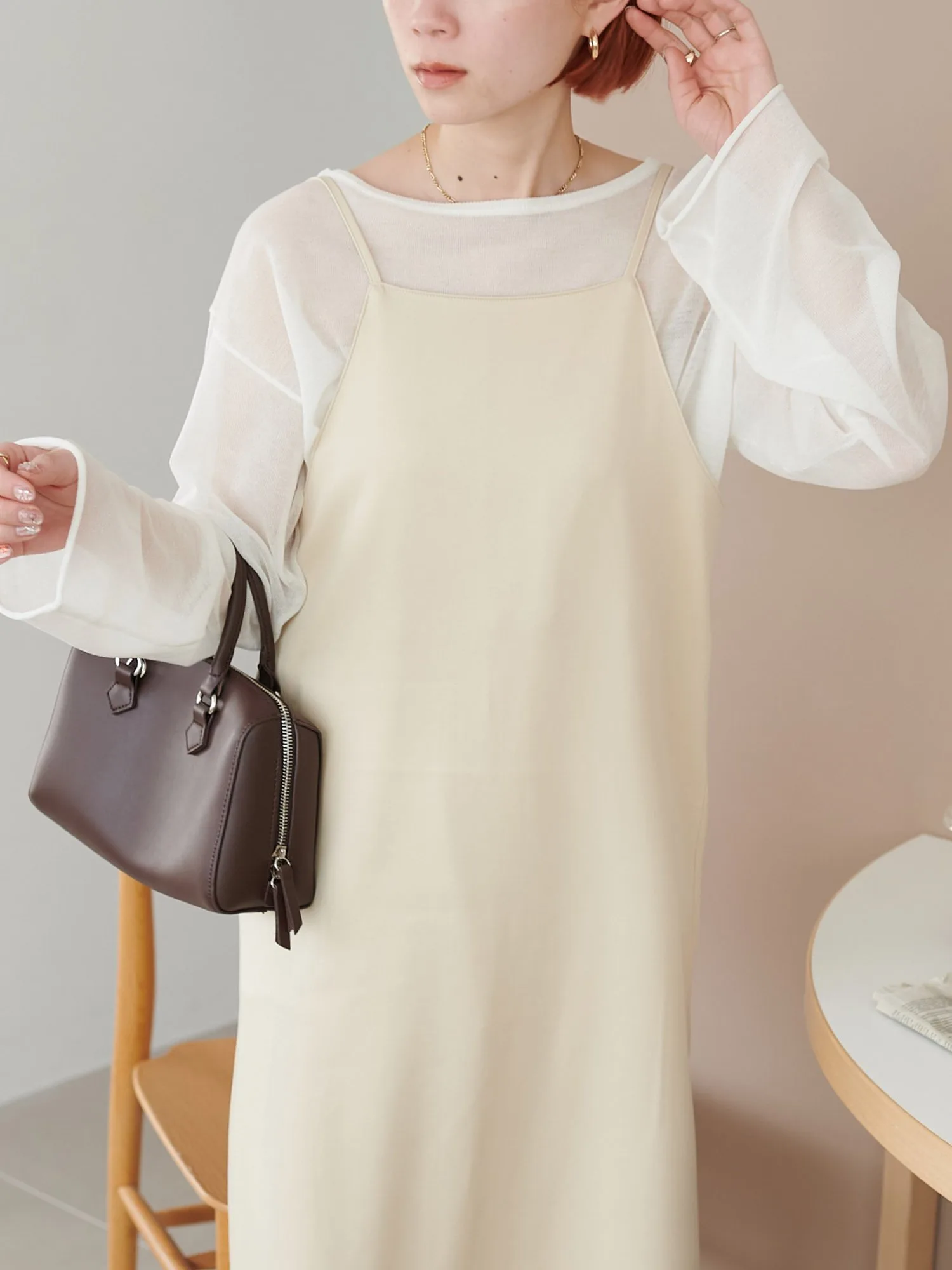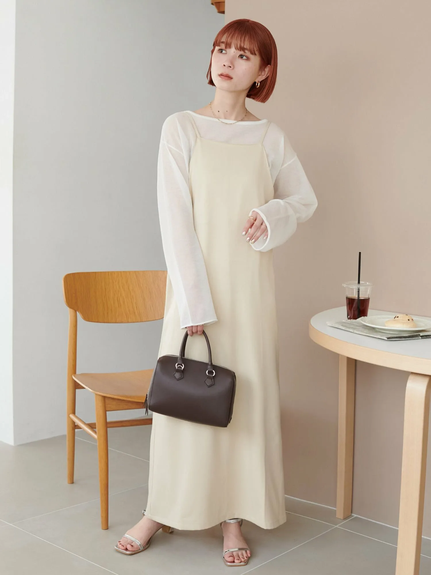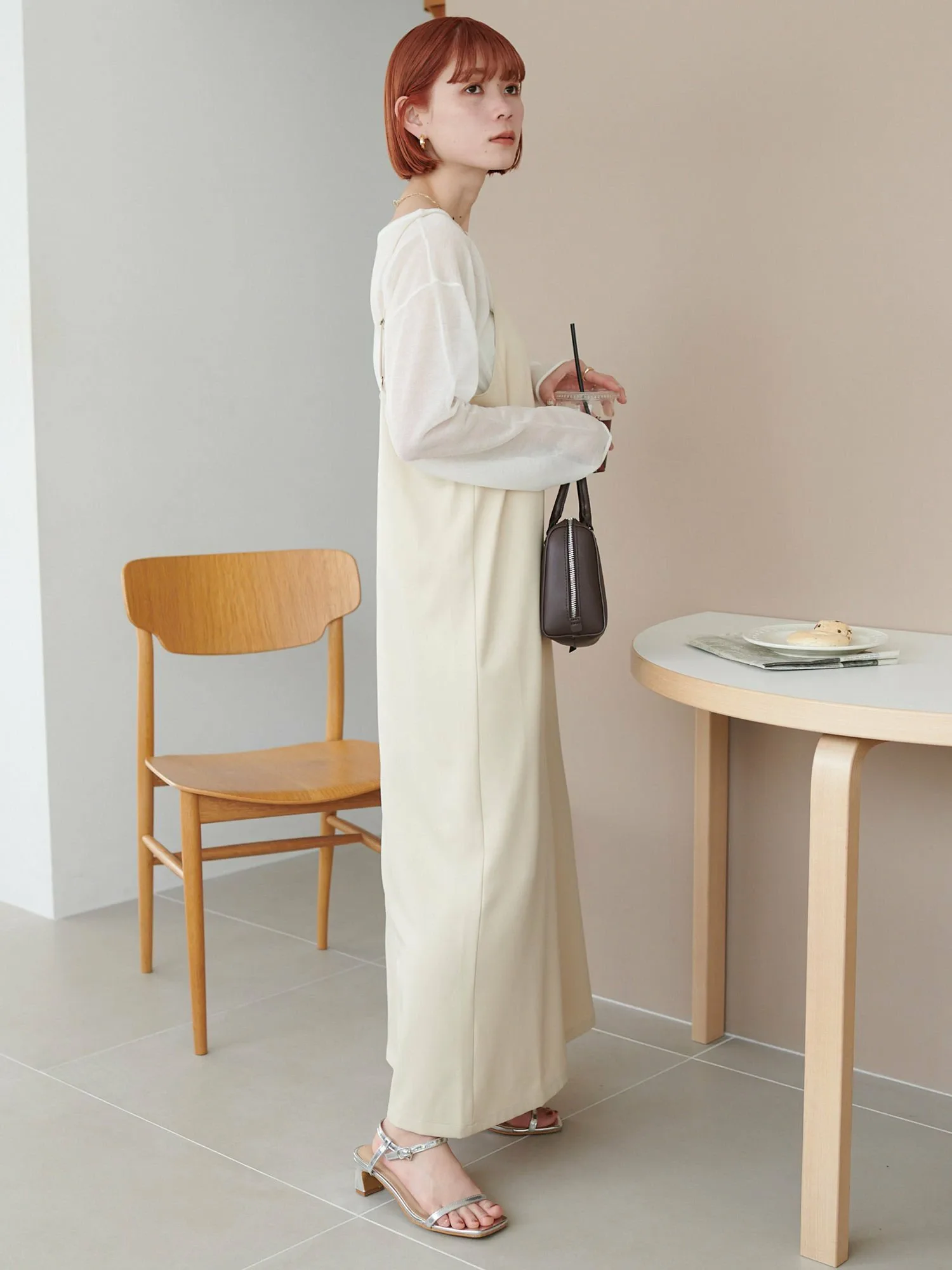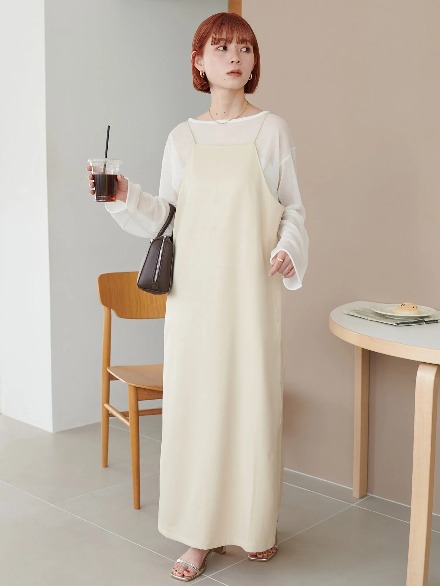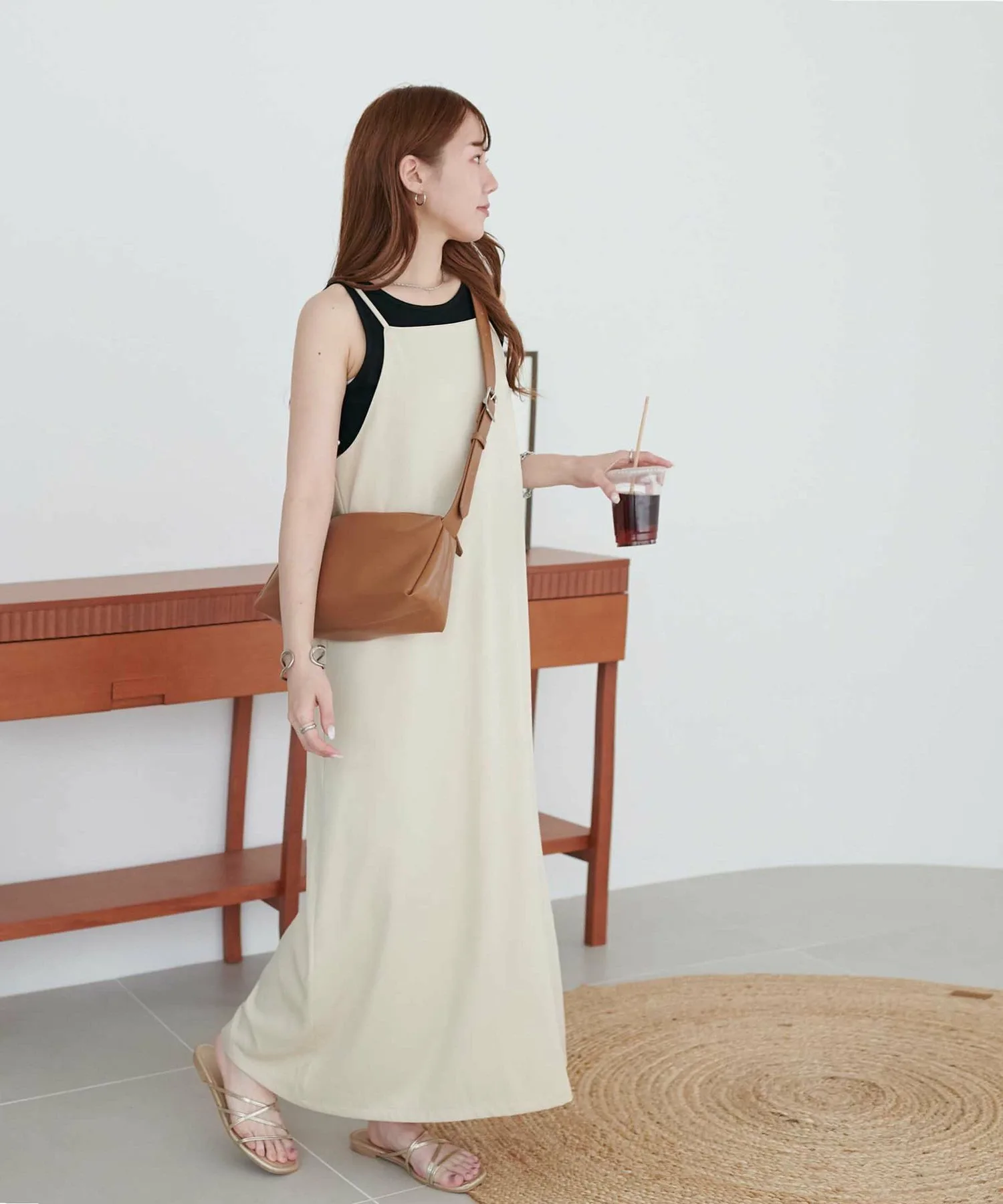 Персонал ростом 159 см: Ширина достаточно большая, платье удобное, а свободный крой придает ему аккуратный вид.◎ Плечевые лямки регулируются с помощью регулятора, поэтому оно подходит как для невысоких, так и для высоких людей!