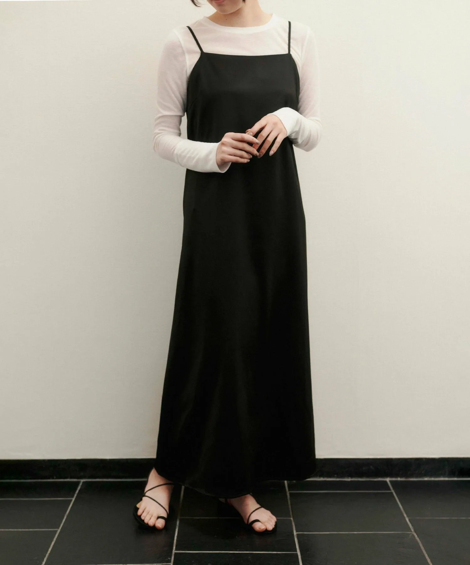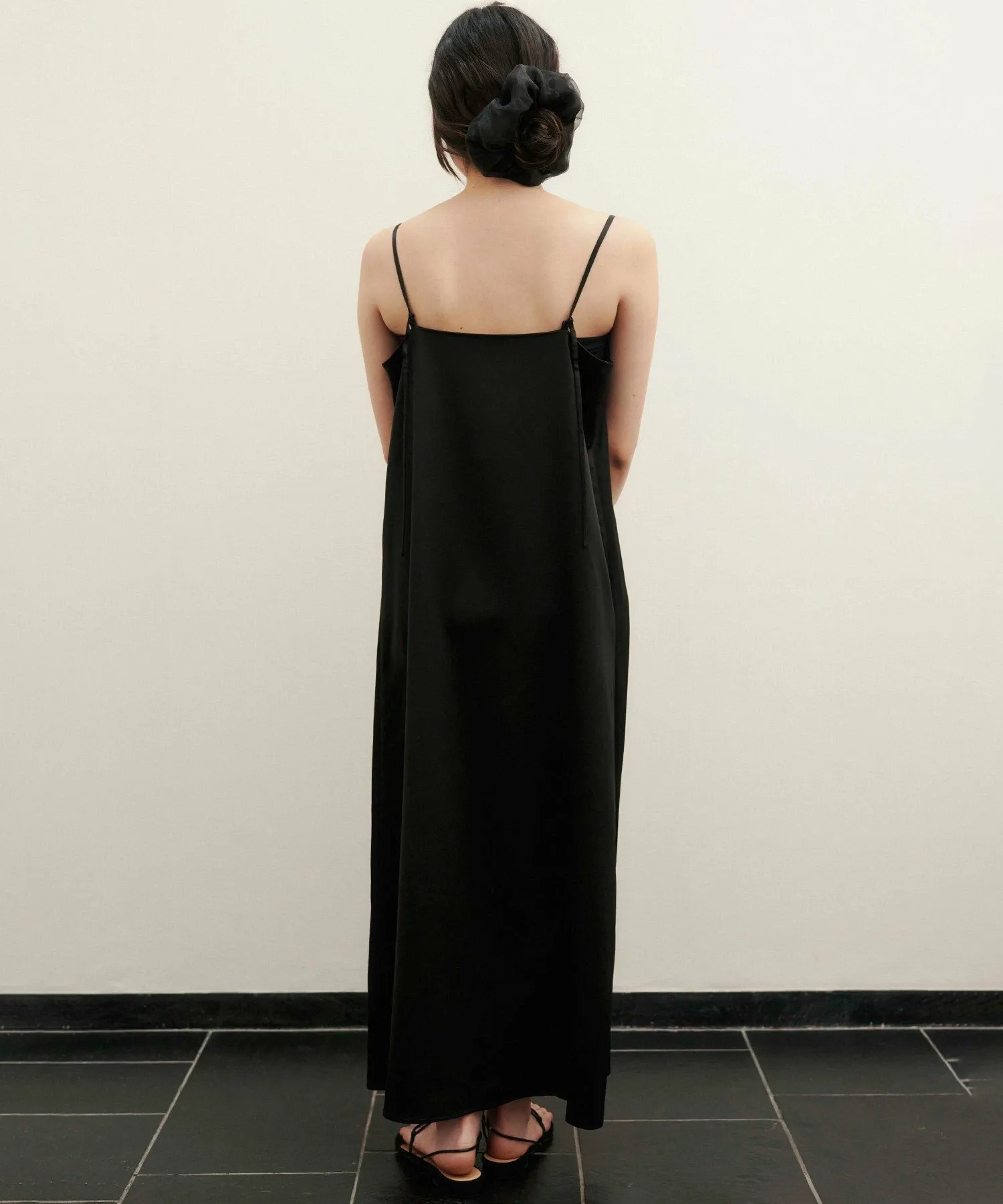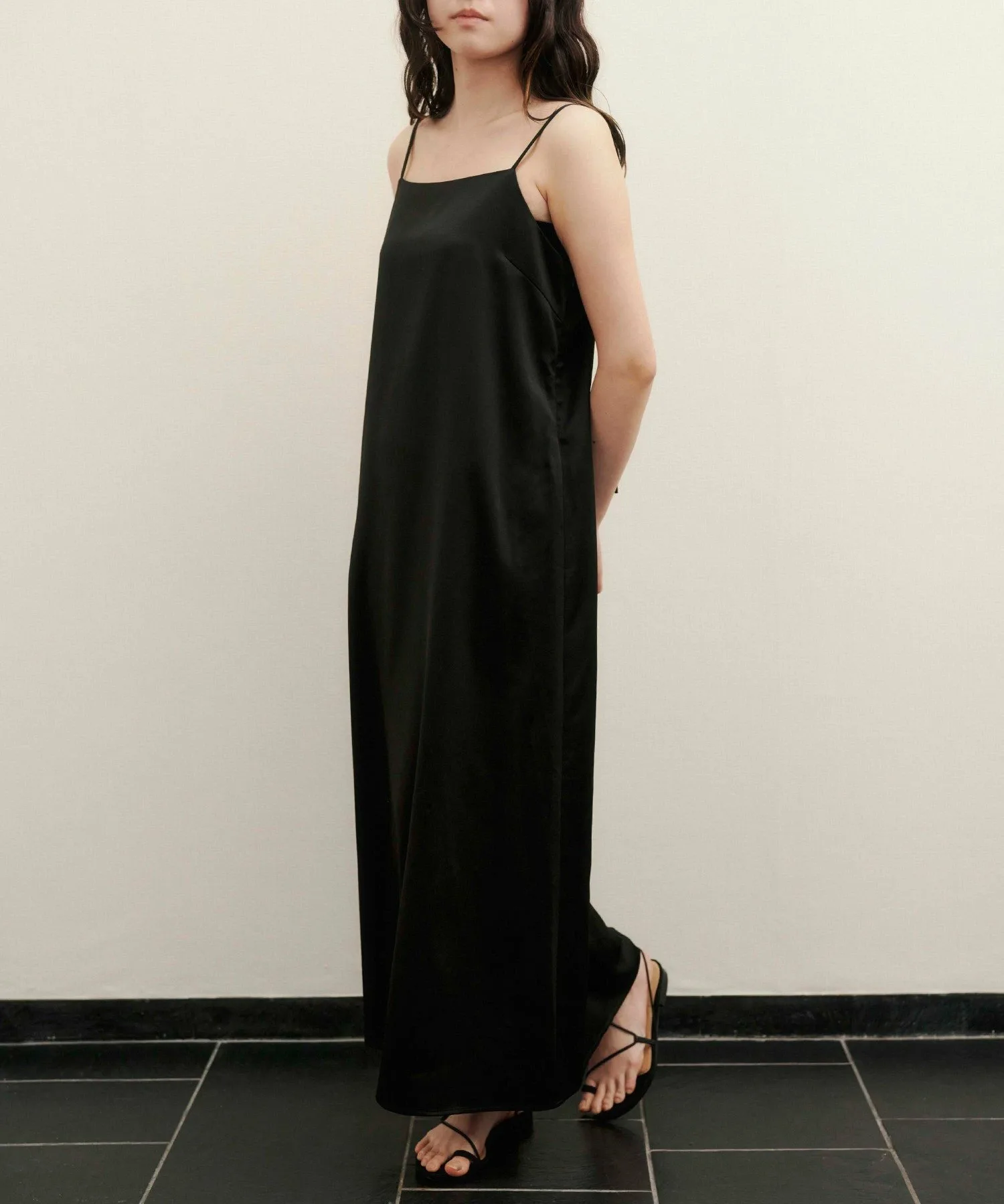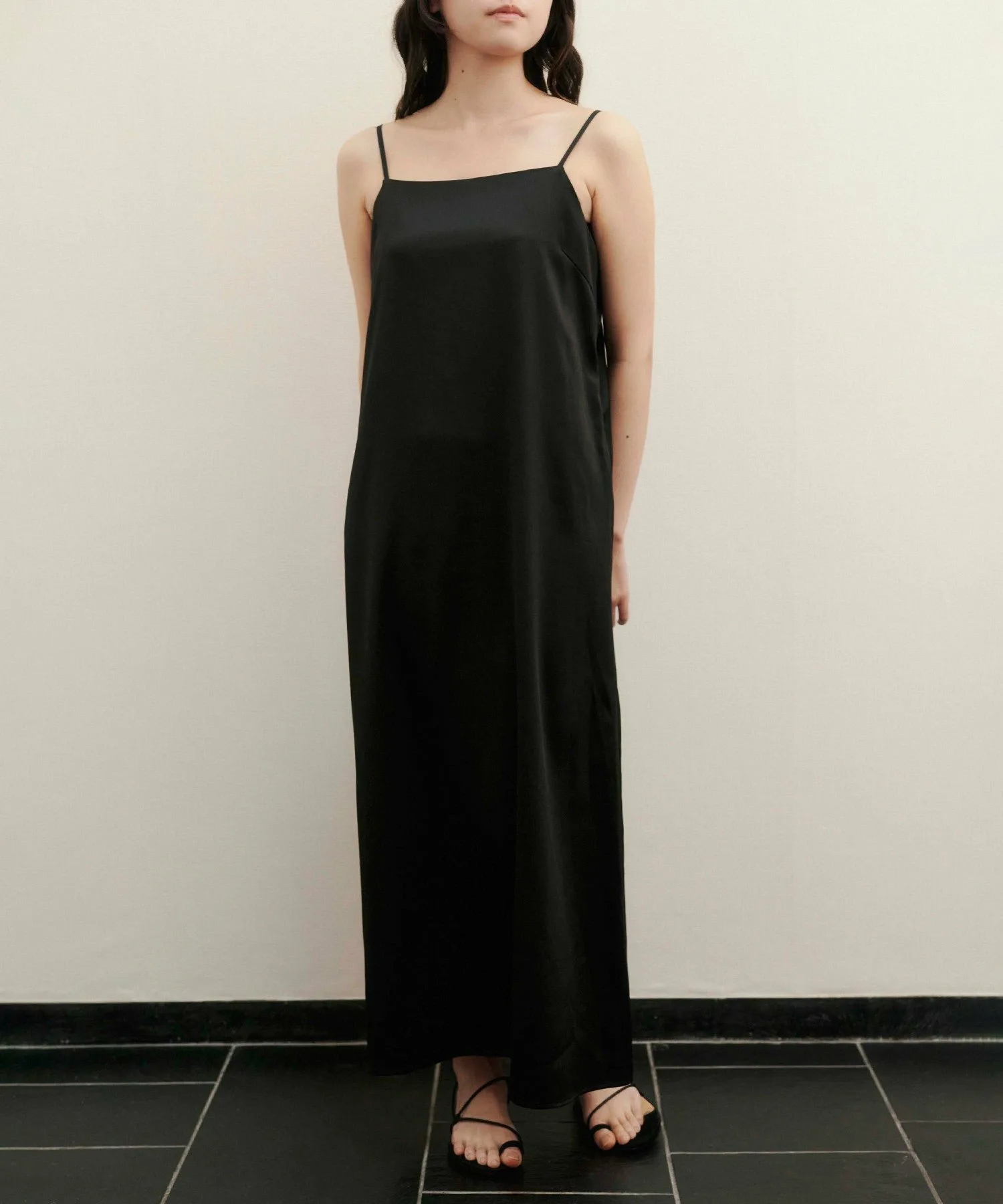 Классическое платье А-силуэта с тонкими бретелями, нежное и женственное.