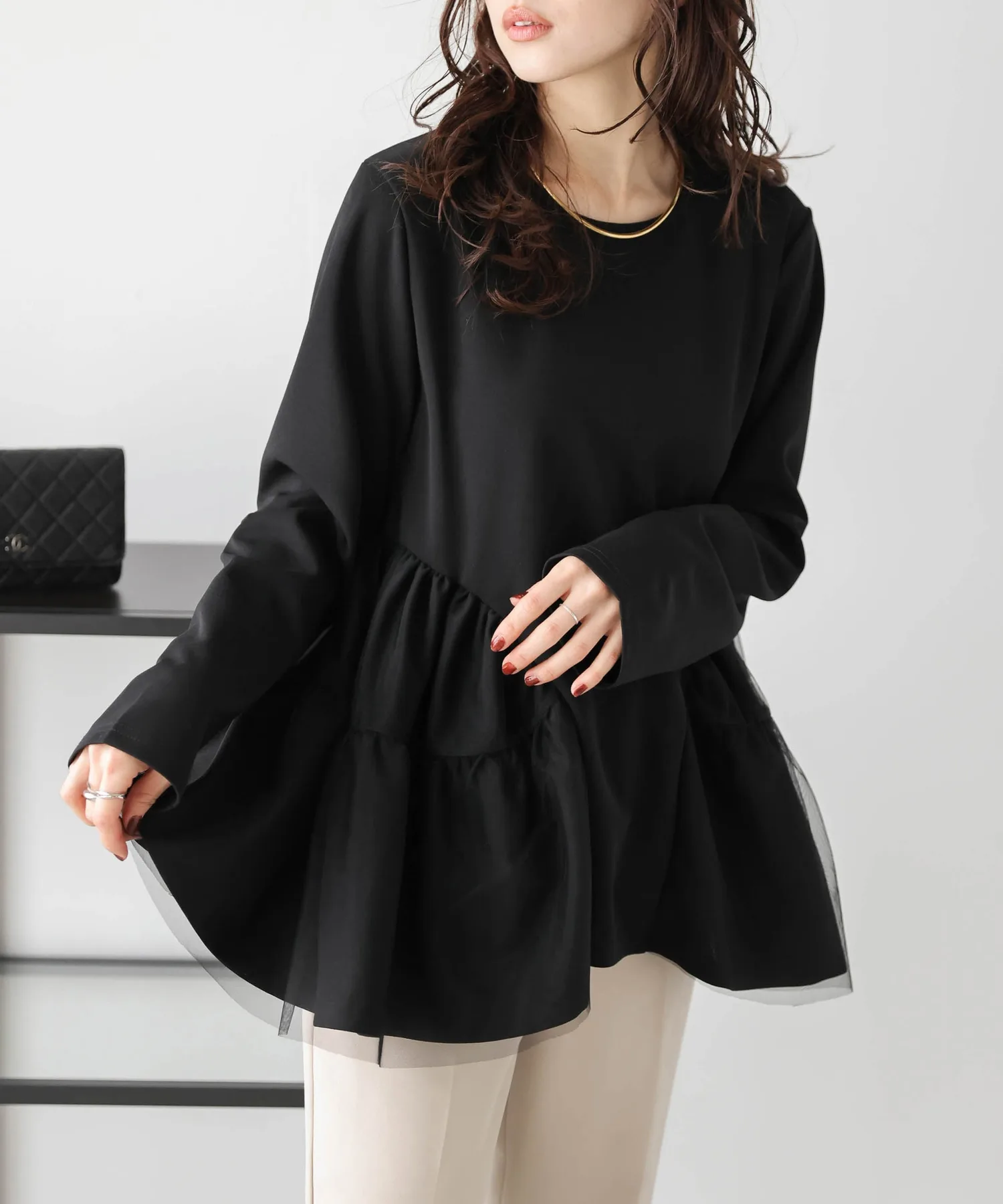Этот великолепный топ имеет баску, скроенную сбоку к спине, и состоит из слоев мягкой тюлевой ткани. Просто сочетайте его с простыми брюками или юбкой, чтобы создать женственный образ.