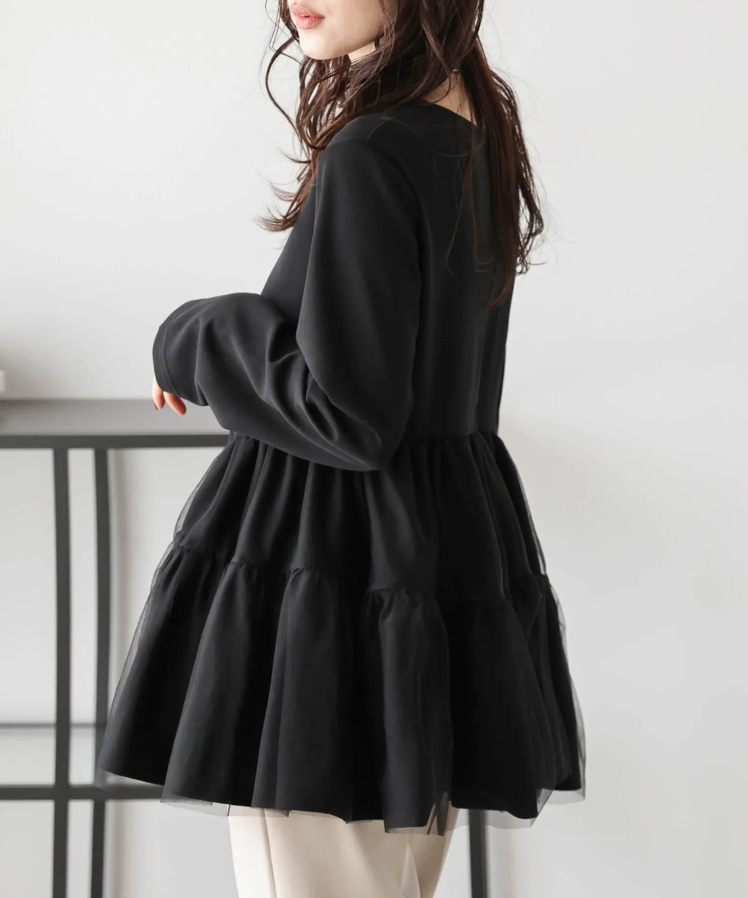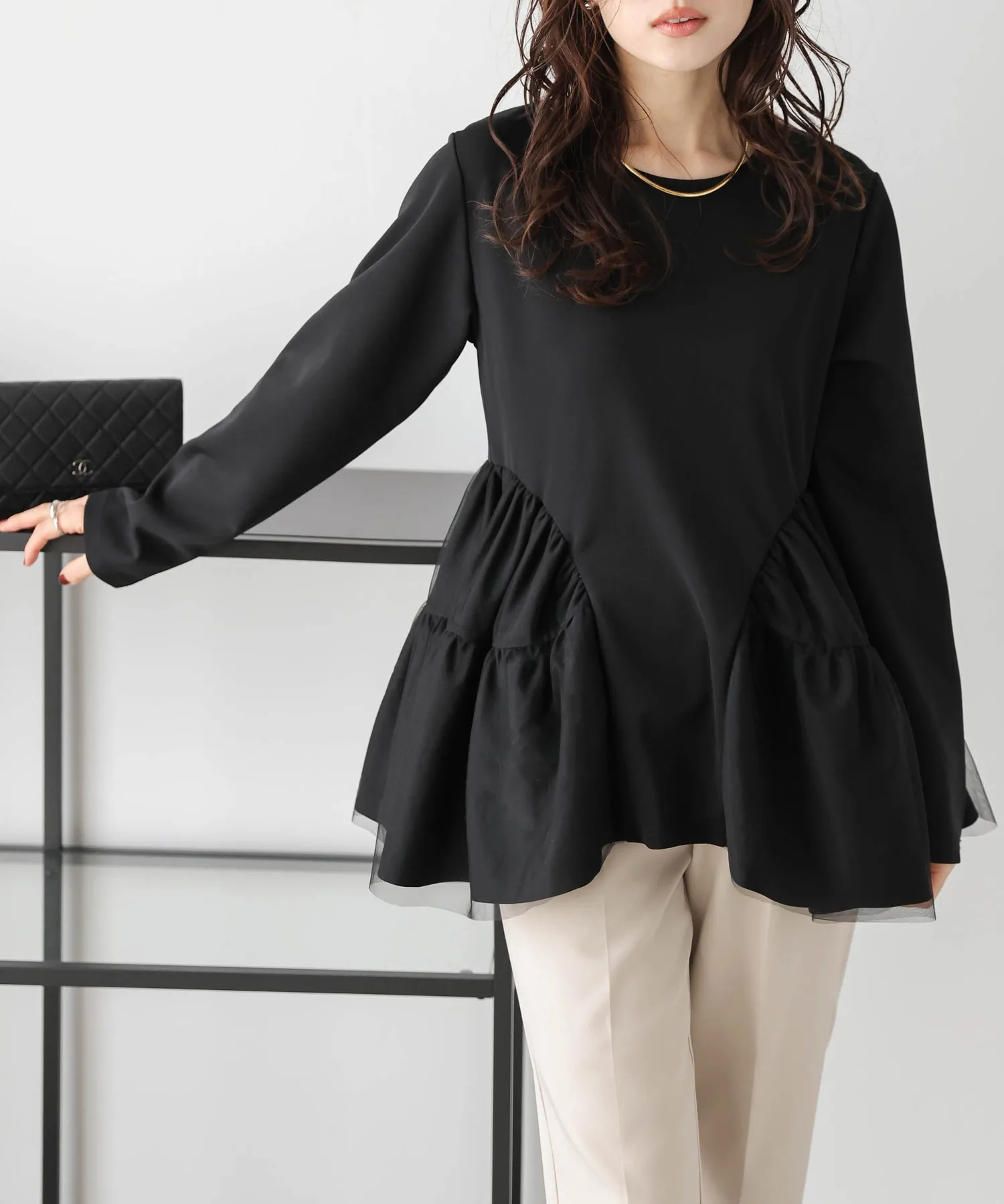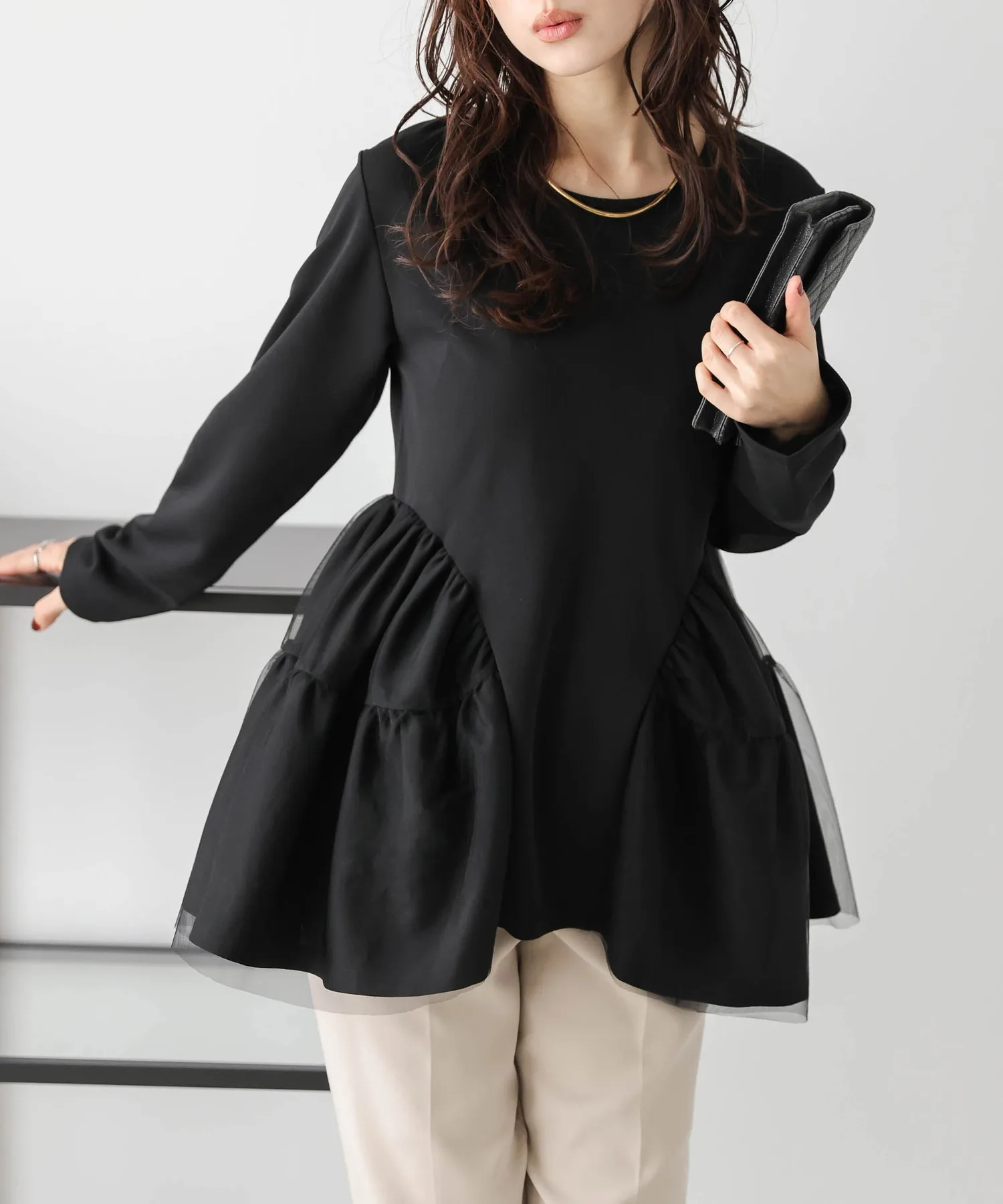 Топ с баской из тюля La-Gemme, цвет Black