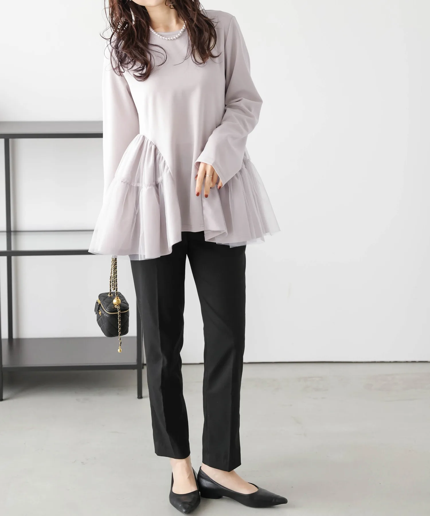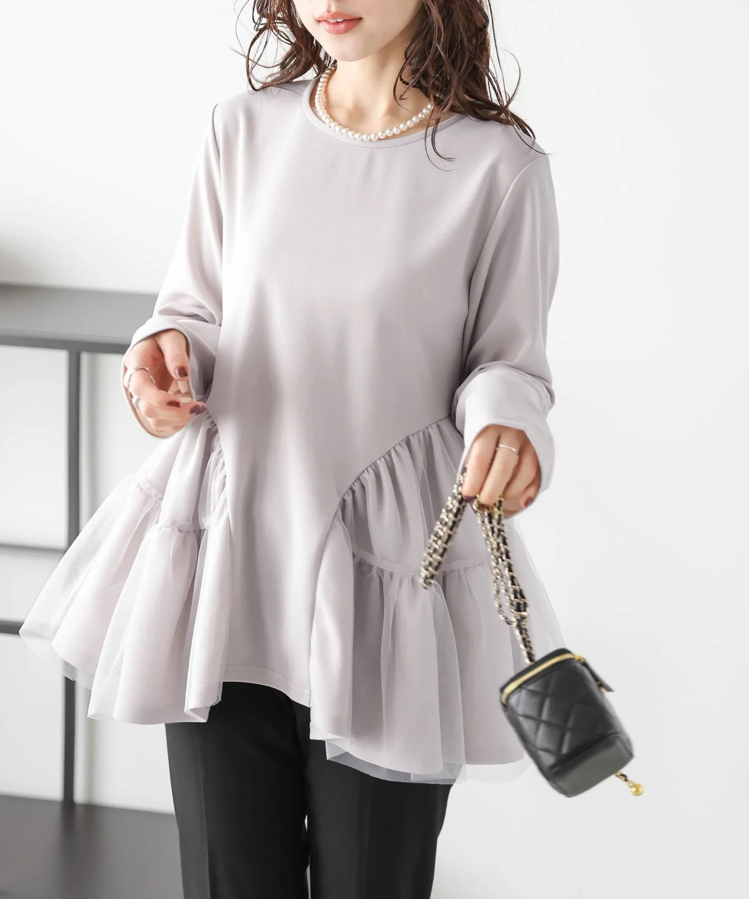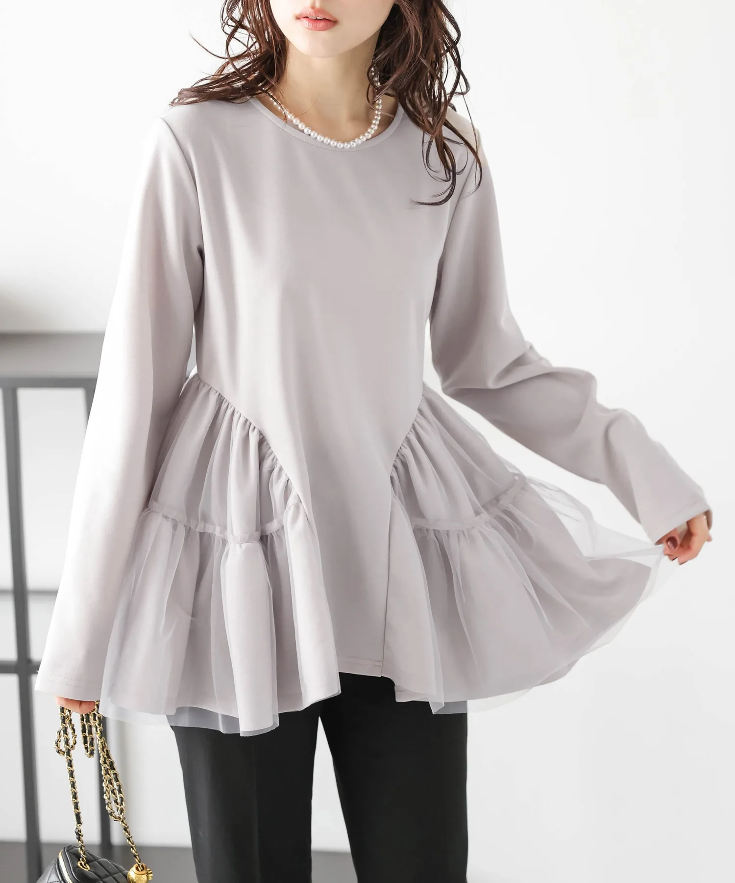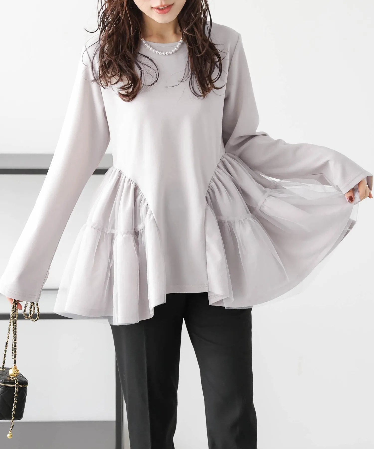 Этот великолепный топ имеет баску, скроенную сбоку к спине, и состоит из слоев мягкой тюлевой ткани. Просто сочетайте его с простыми брюками или юбкой, чтобы создать женственный образ.