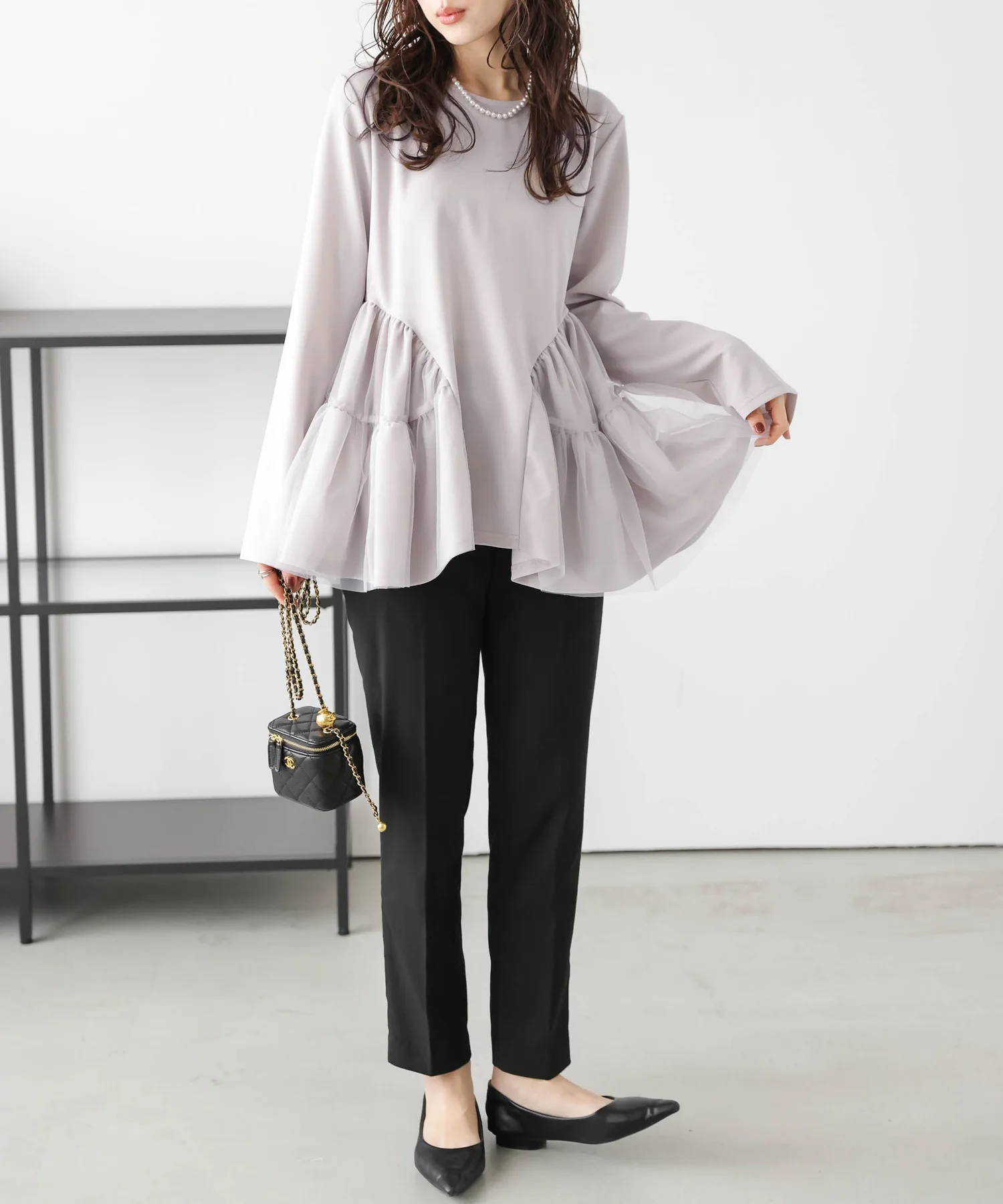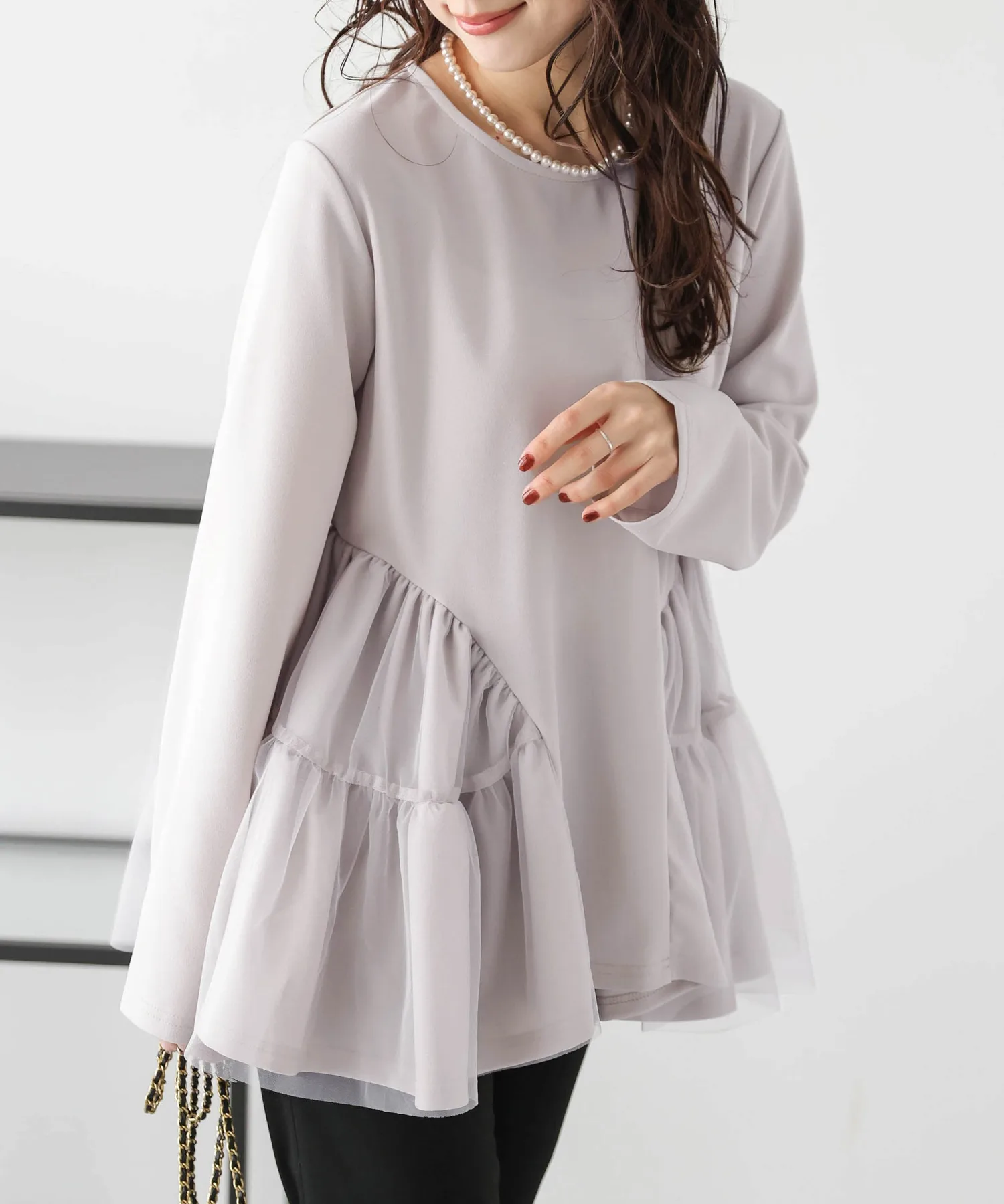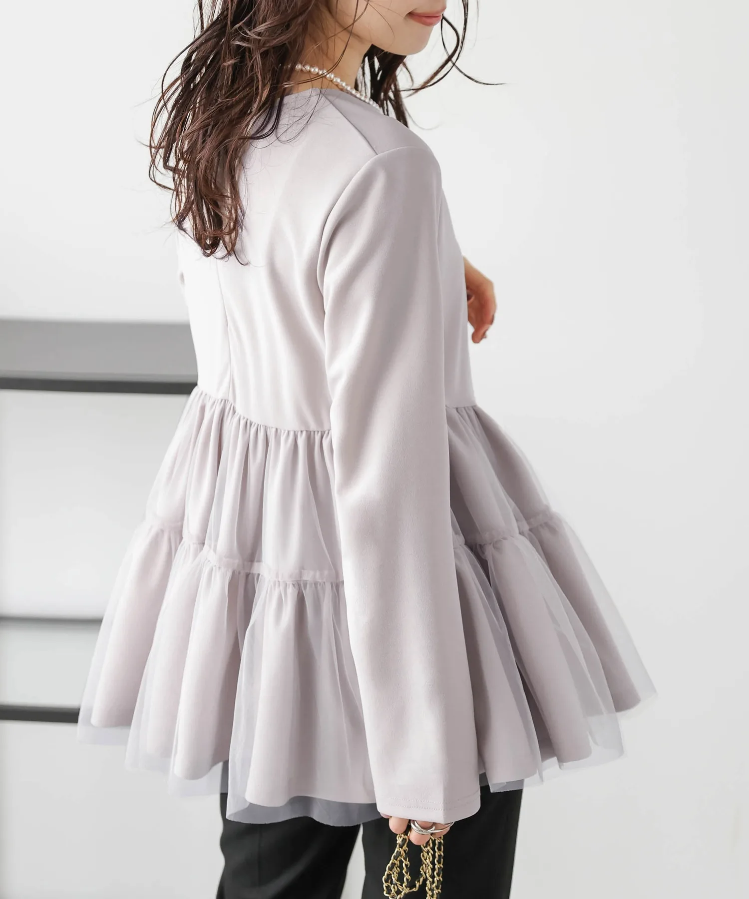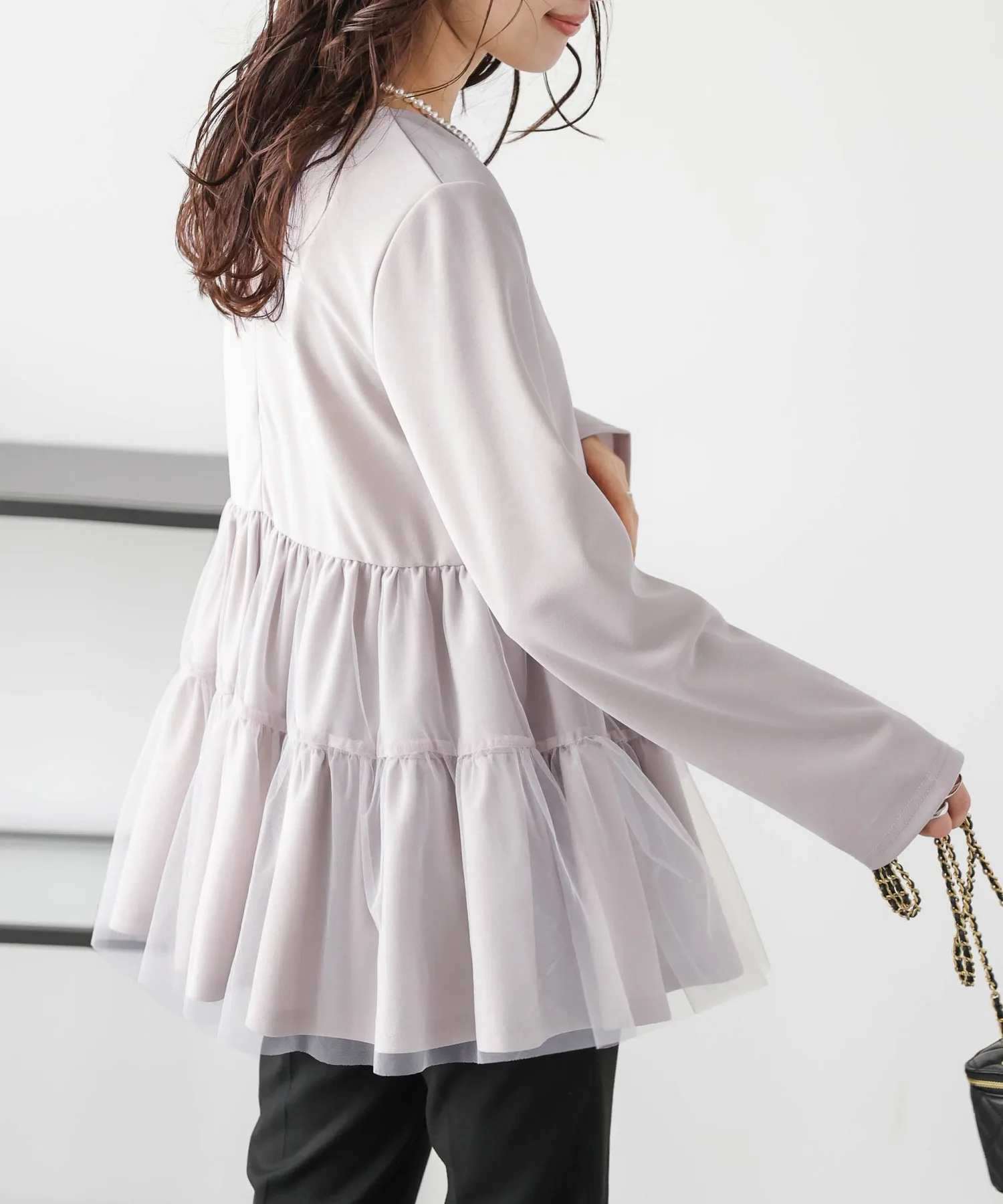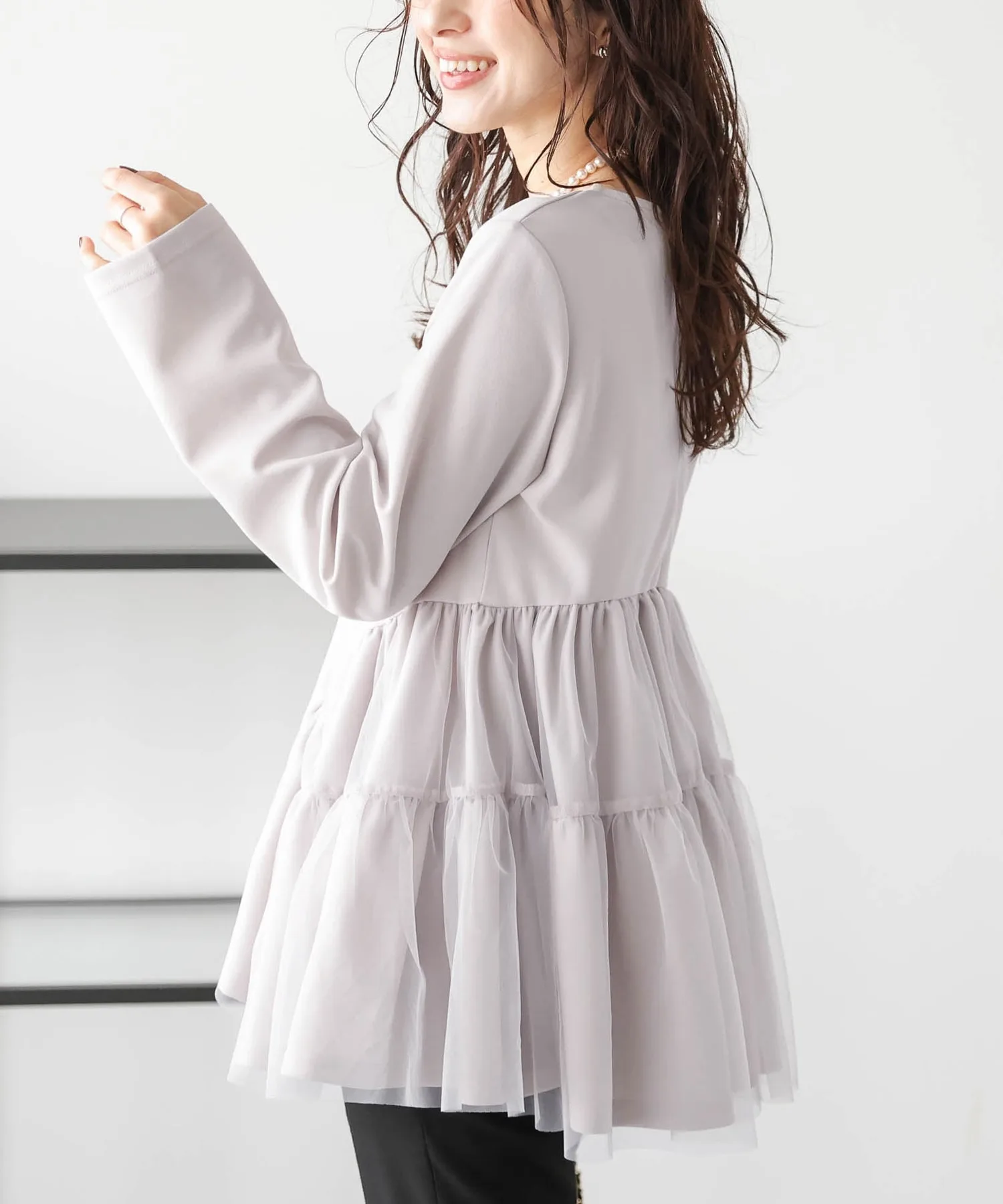 Этот великолепный топ имеет баску, скроенную сбоку к спине, и состоит из слоев мягкой тюлевой ткани. Просто сочетайте его с простыми брюками или юбкой, чтобы создать женственный образ.