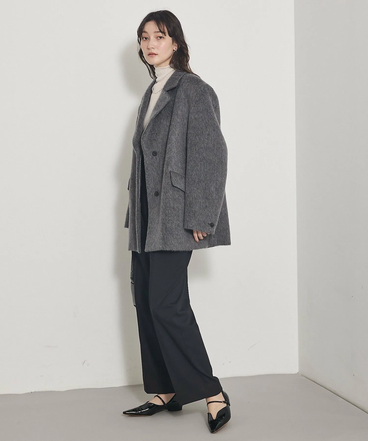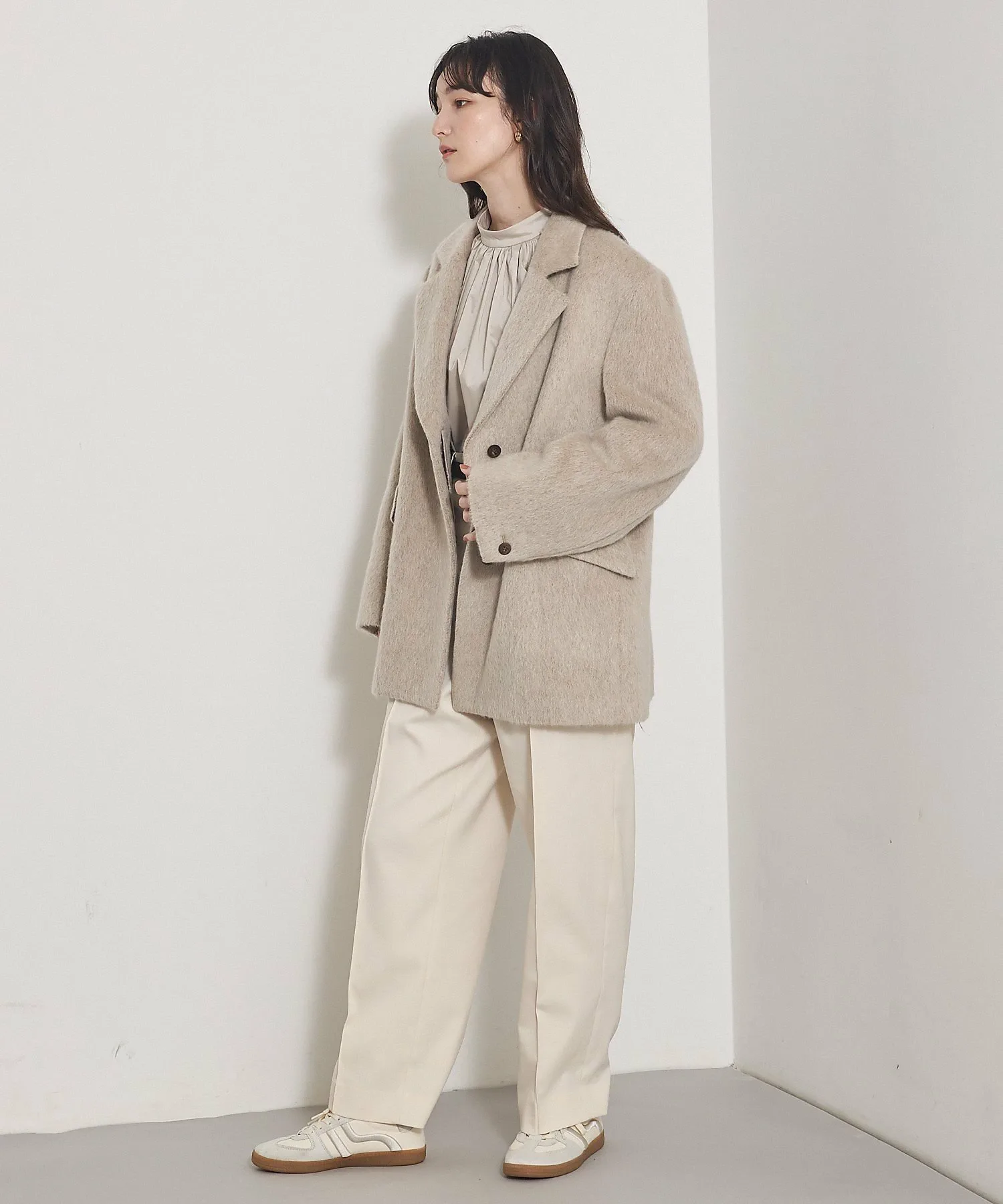 Сочетайте ее с женственными брюками для изысканного баланса между мужским и женственным стилем.