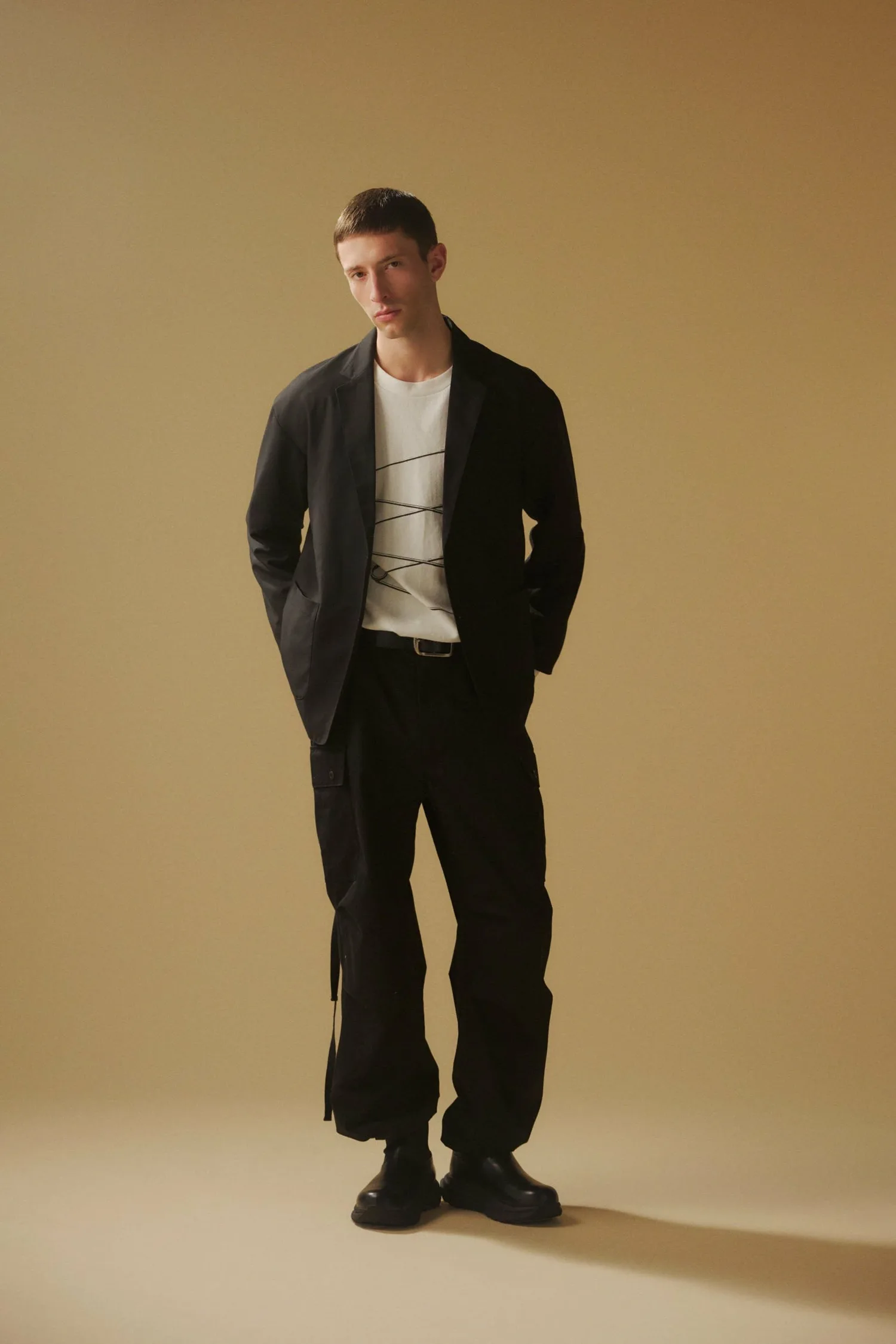 Конечно, он также хорошо сочетается с бежевыми брюками и рабочими брюками.
