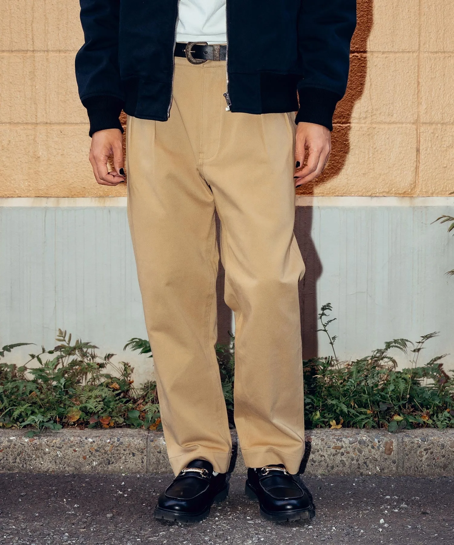 Передняя часть заменена на удобную застежку-молнию, при этом сохранены такие детали, как две складки, боковые карманы с клапанами и широкий силуэт.
