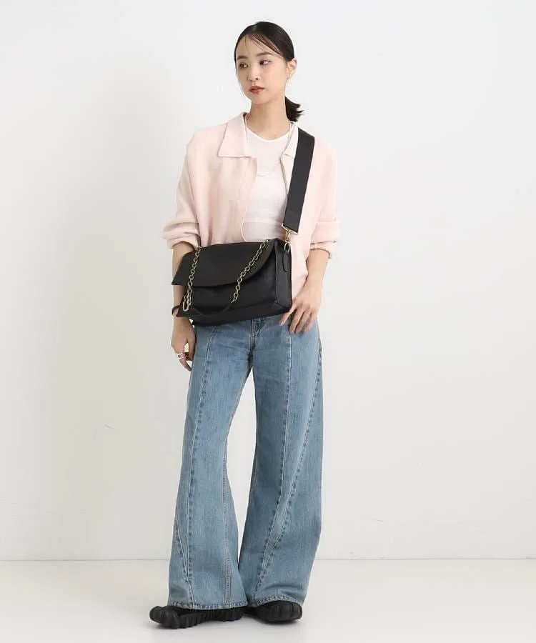 Сумка среднего размера имеет простой дизайн, а ношение через плечо с помощью толстого плечевого ремня создает непринужденный образ.