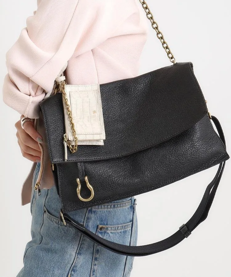 Снимите плечевой ремень и наденьте большую цепочку на плечо, чтобы получить элегантную сумку с одной ручкой.