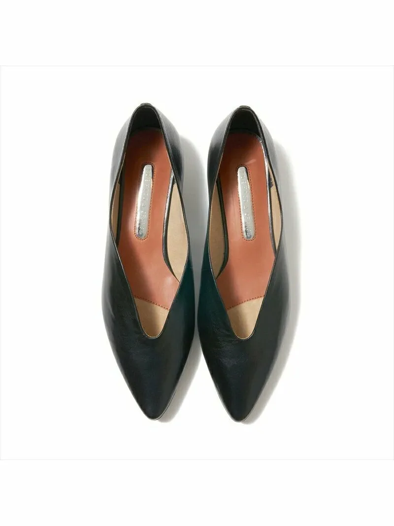 Представляем простые туфли-лодочки с умеренно острым миндалевидным носком и U-образным вырезом. Верхняя часть выполнена из мягкой буйволиной телячьей и козьей кожи. Подкладка и передняя часть стельки шелковистые, что делает их еще мягче на ощупь. Подошва изготовлена из оригинальной формованной кожи, обеспечивающей удобную посадку и плотно облегающей стопу. Цветовая гамма внутренней части также тщательно продумана, благодаря чему эти туфли выглядят очаровательно даже в момент снятия.