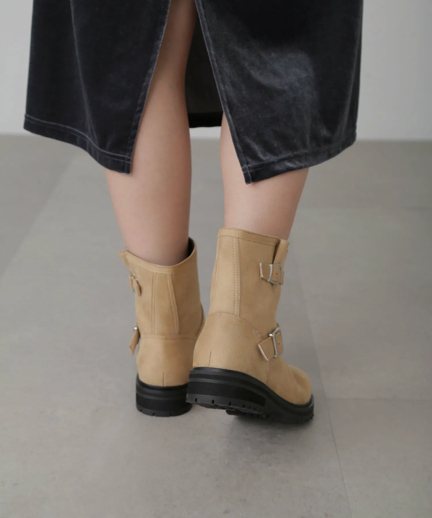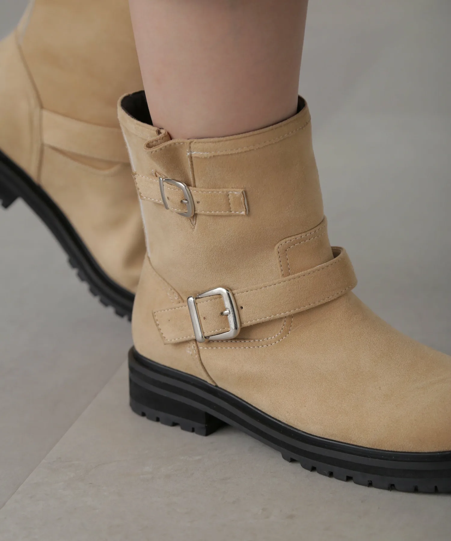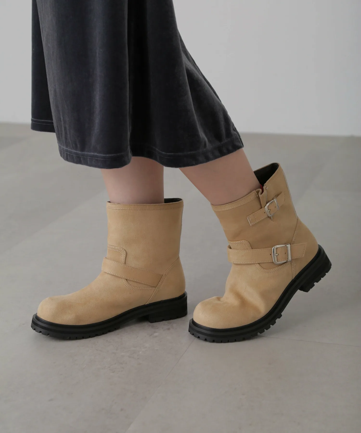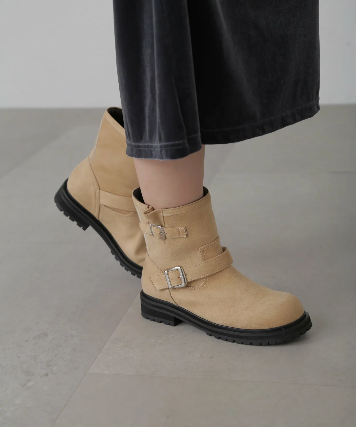 Инженерные ботинки — обязательный элемент стиля этого сезона. Их рекомендуется сочетать не только с шортами и мини-юбками, но и с длинными юбками. Простой, но модный дизайн обязательно расширит ваши возможности в создании образов. Замшевый бежевый цвет, который полностью меняет образ, — рекомендуемый цвет этого сезона.