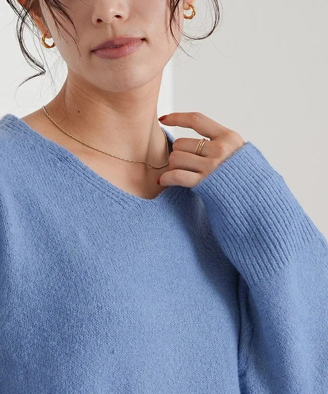 Мягкий, теплый трикотаж с V-образным вырезом, похожий на шерсть, который окутает вас комфортом.