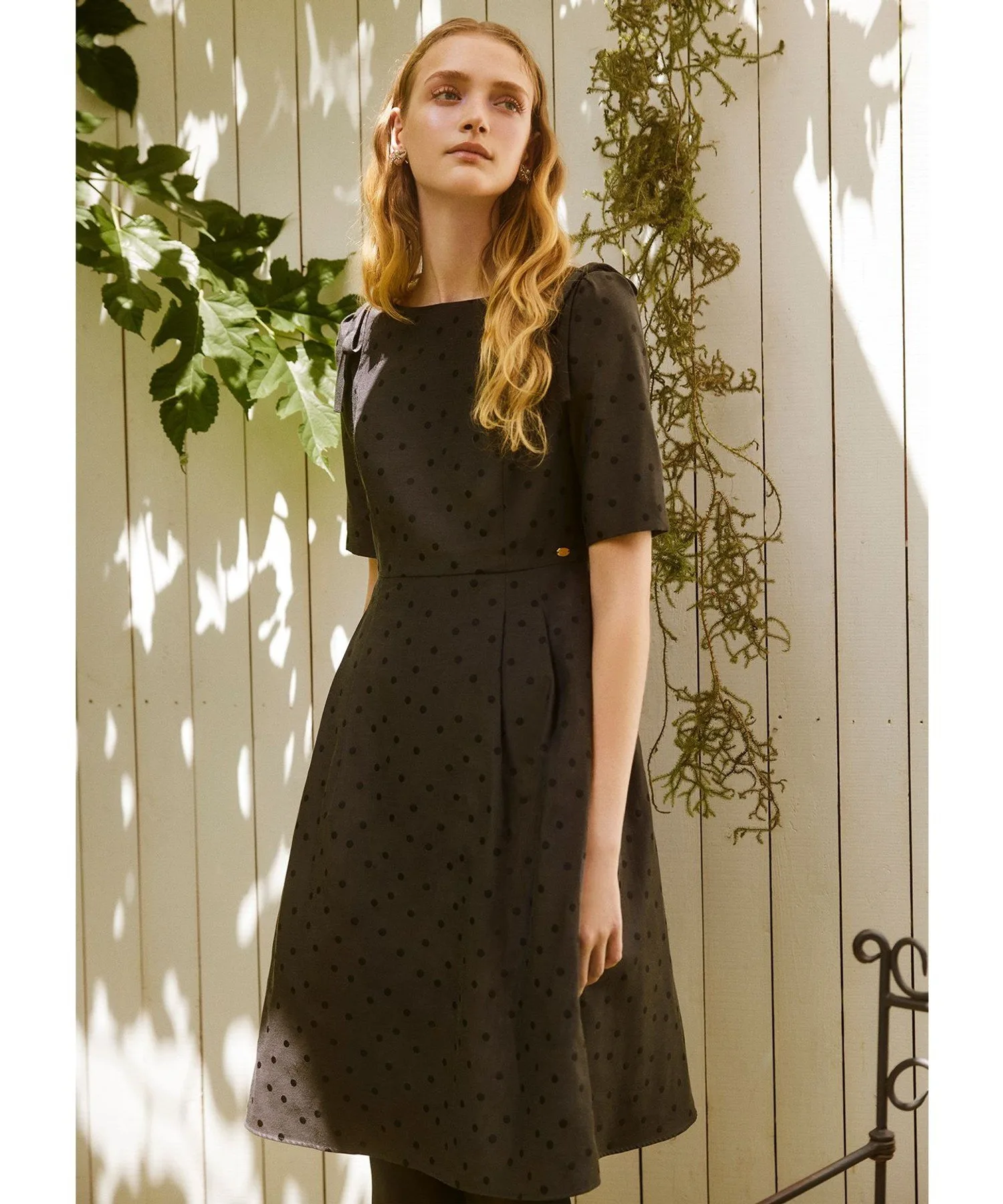 Жаккардовые точки на этом платье придают ему гламурный, но не повседневный вид.