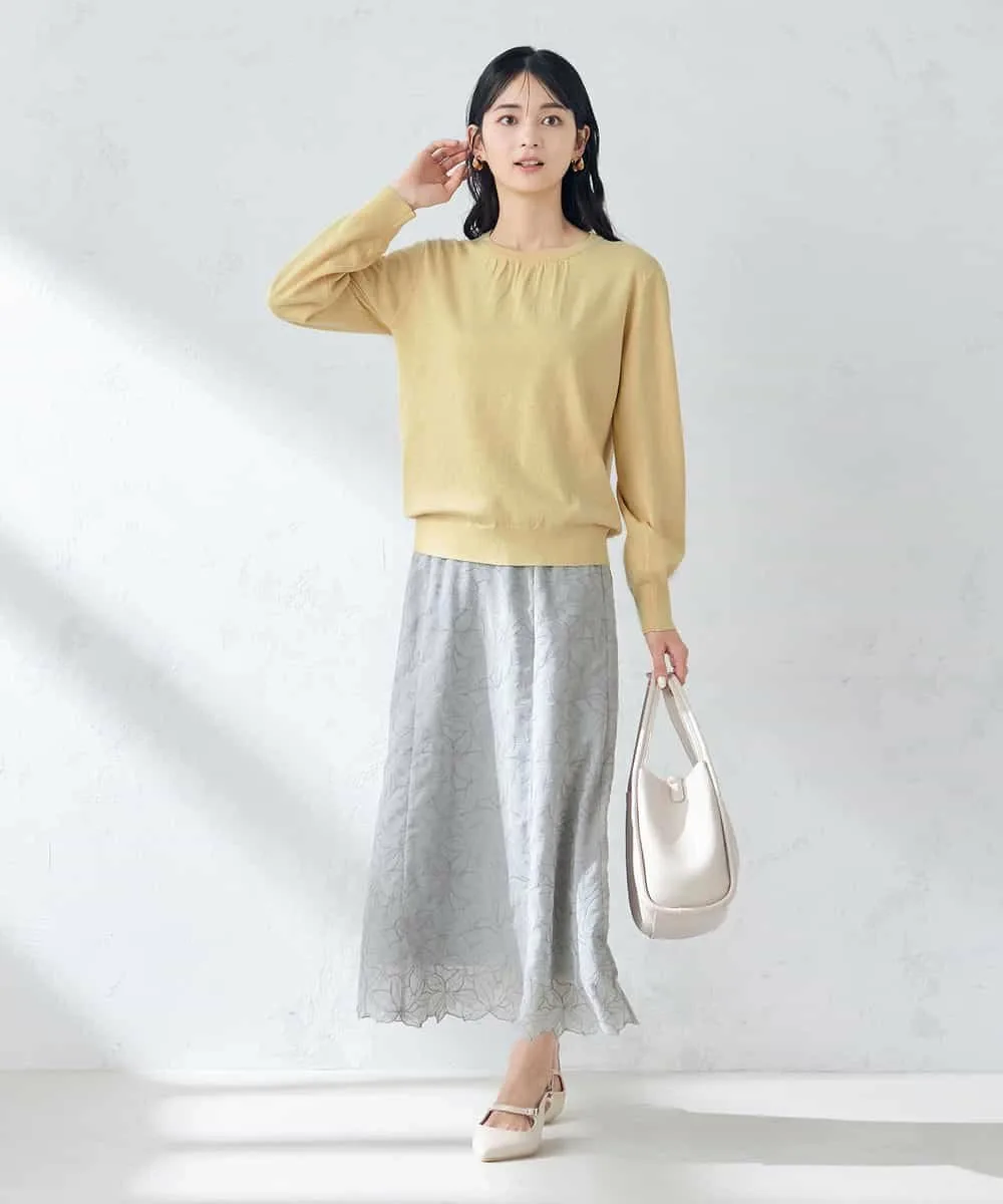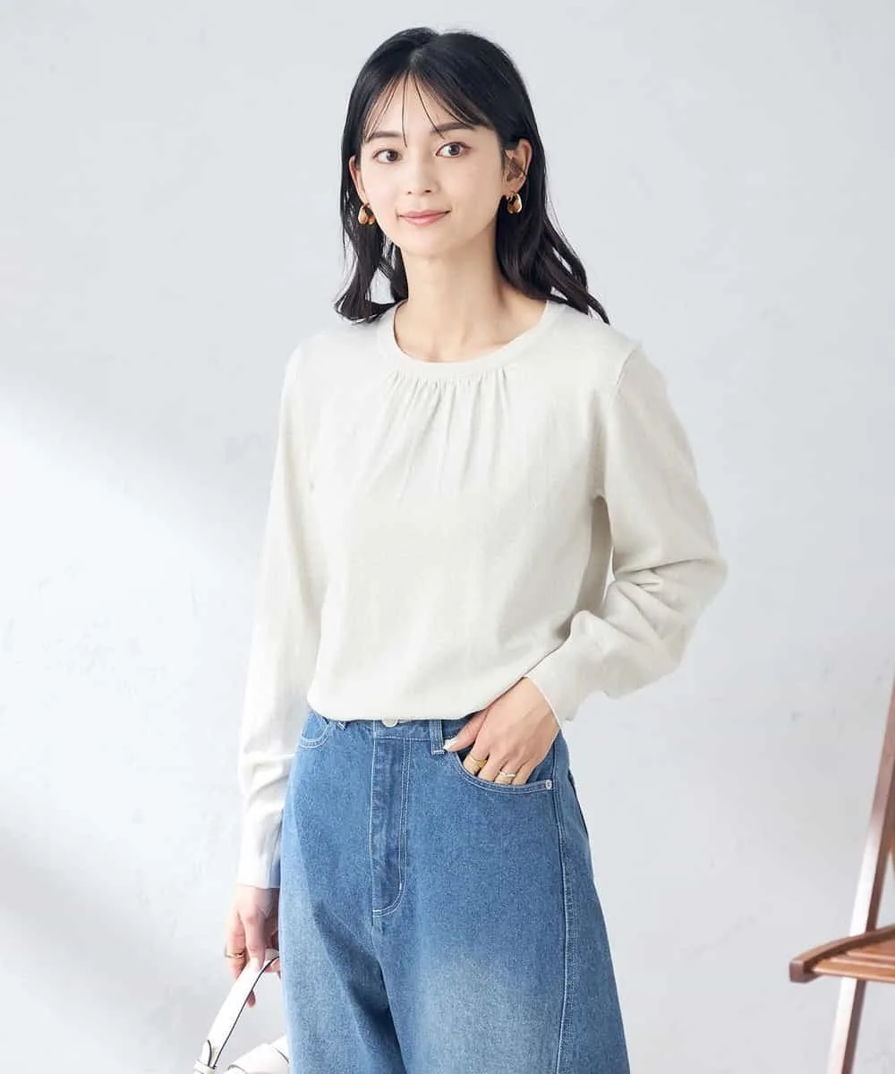 Трикотаж с присборенным воротником и блестками: K2FEA02039