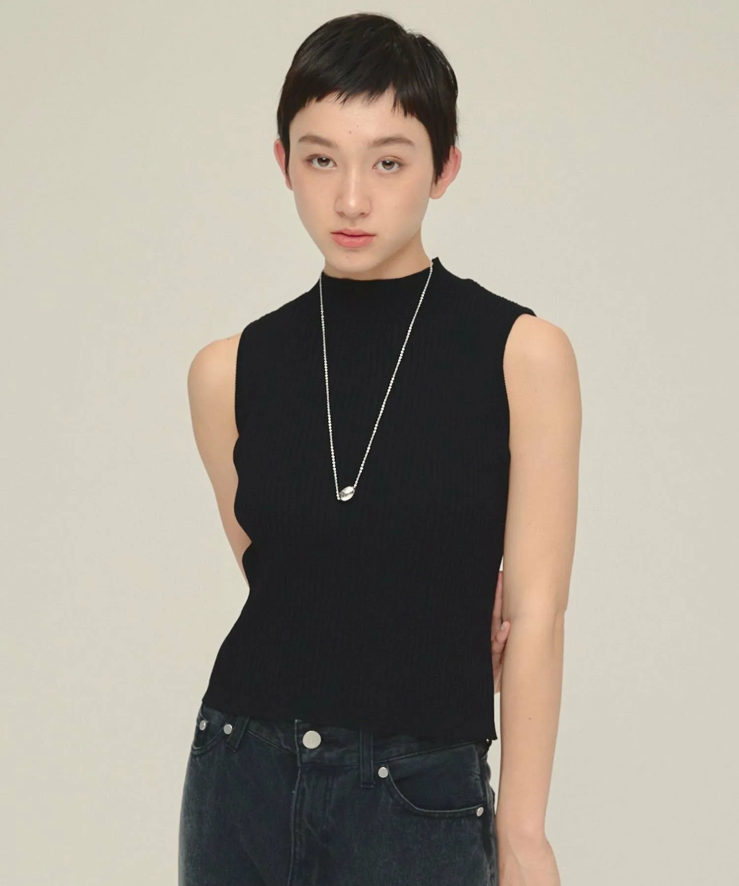 Трикотажное изделие без рукавов, которое минимизирует открытые участки тела, создавая четкие линии и элегантный эффект демонстрации кожи.