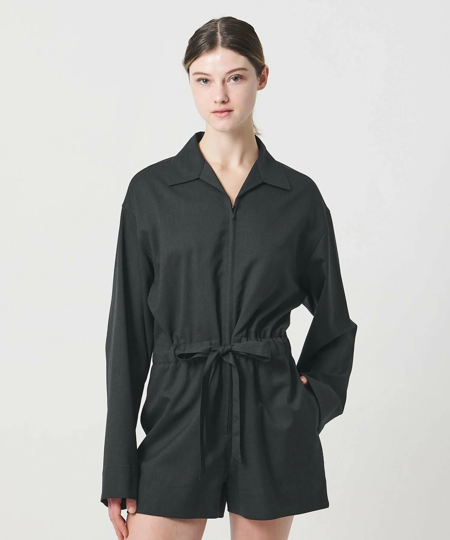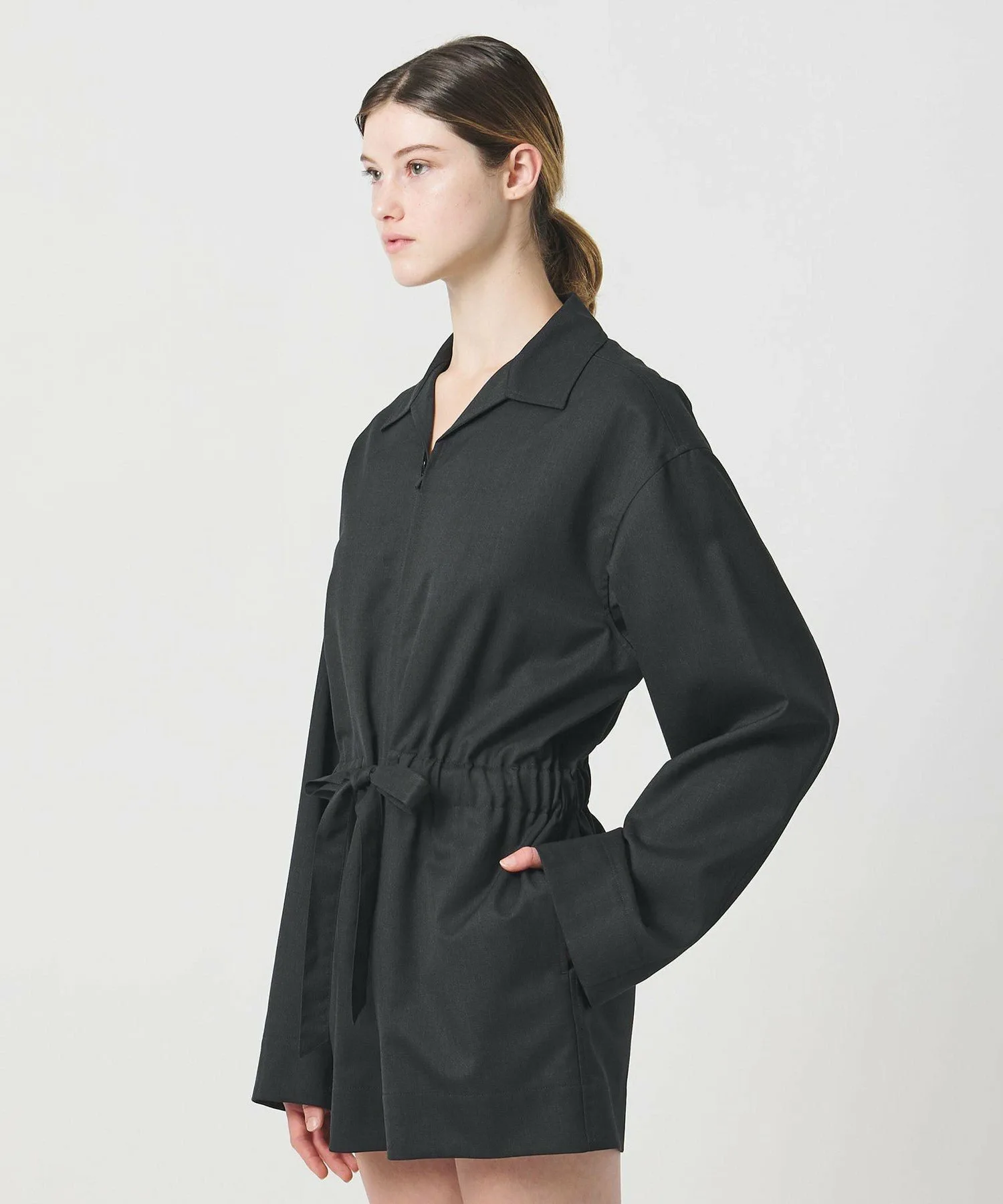 Комбинезон с воротником-стойкой.