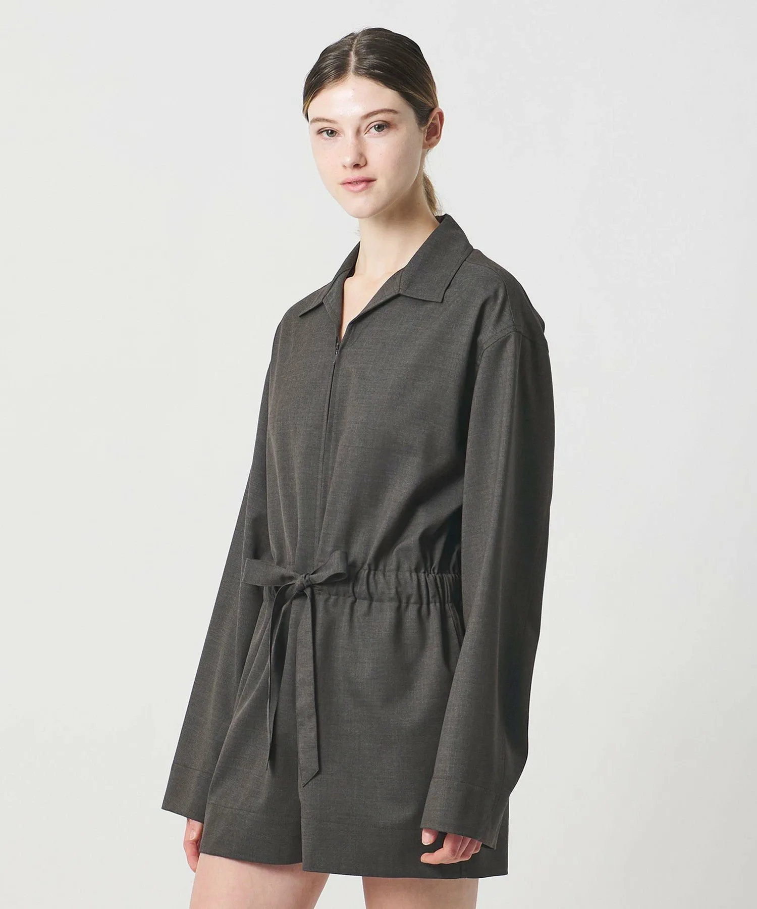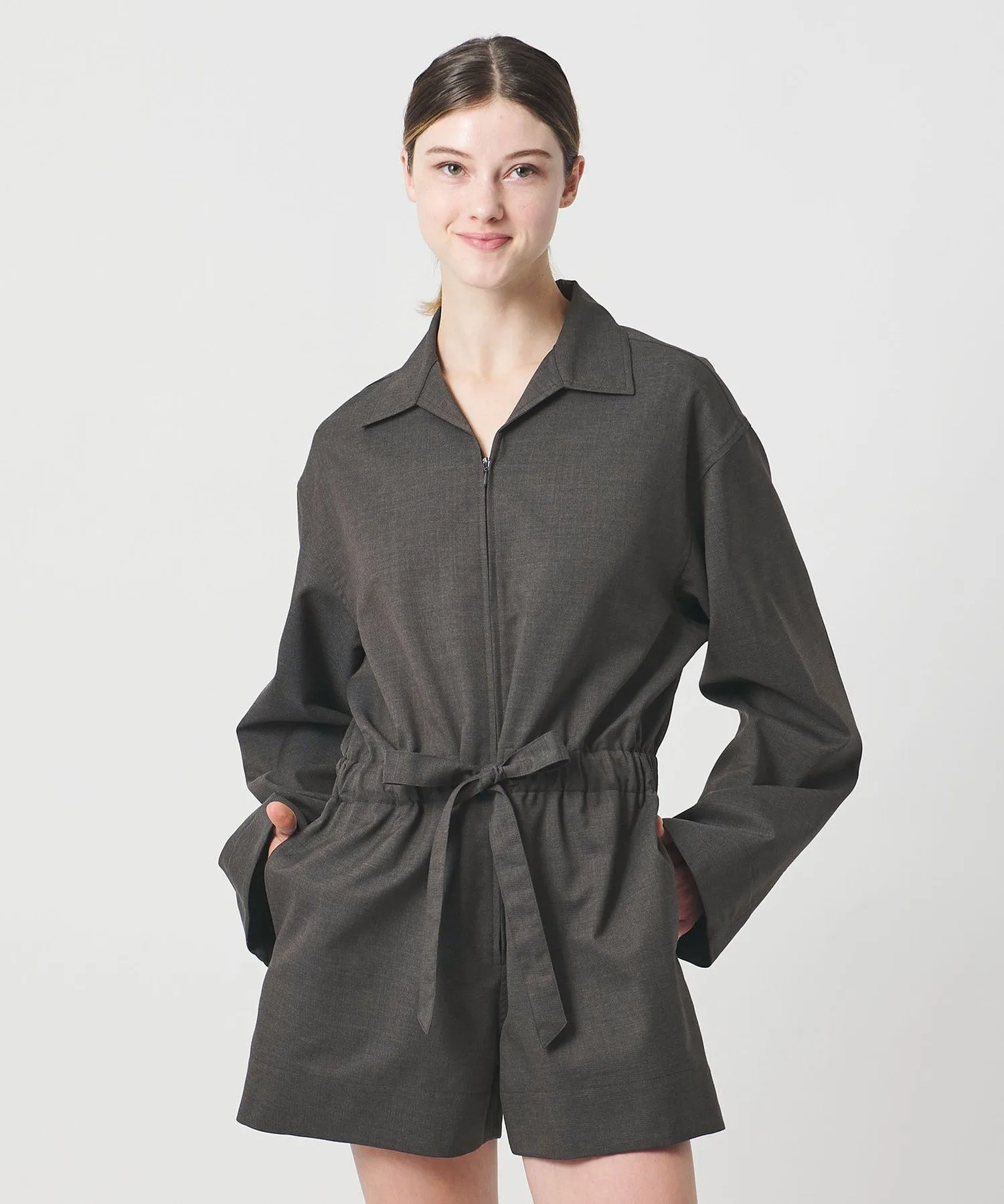 Комбинезон с воротником-стойкой.