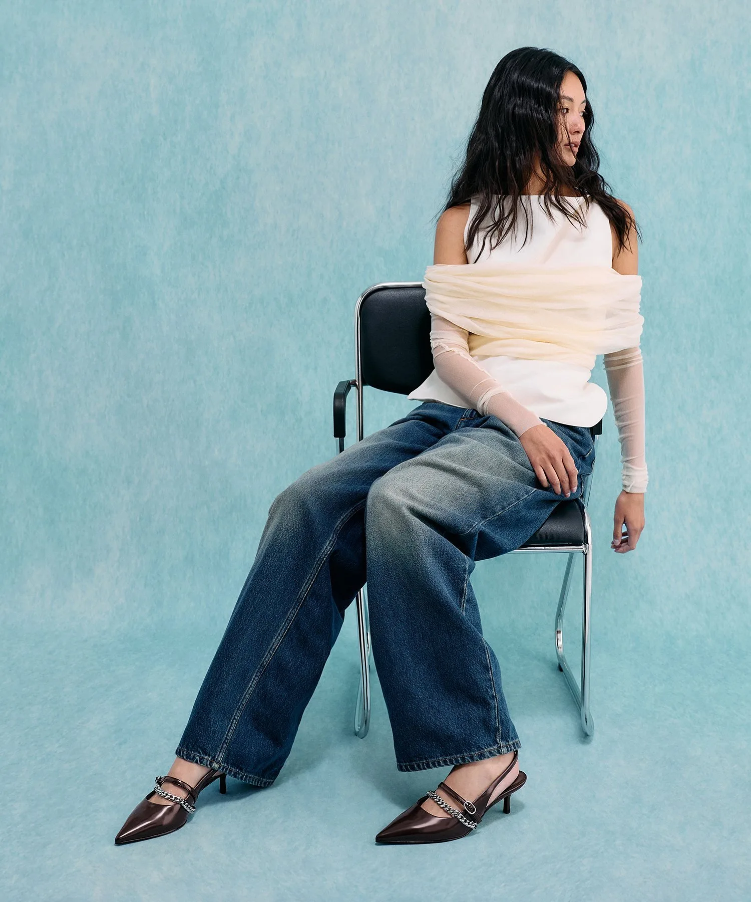 Минималистичный дизайн с деталями в виде цепочек создает стильный образ.