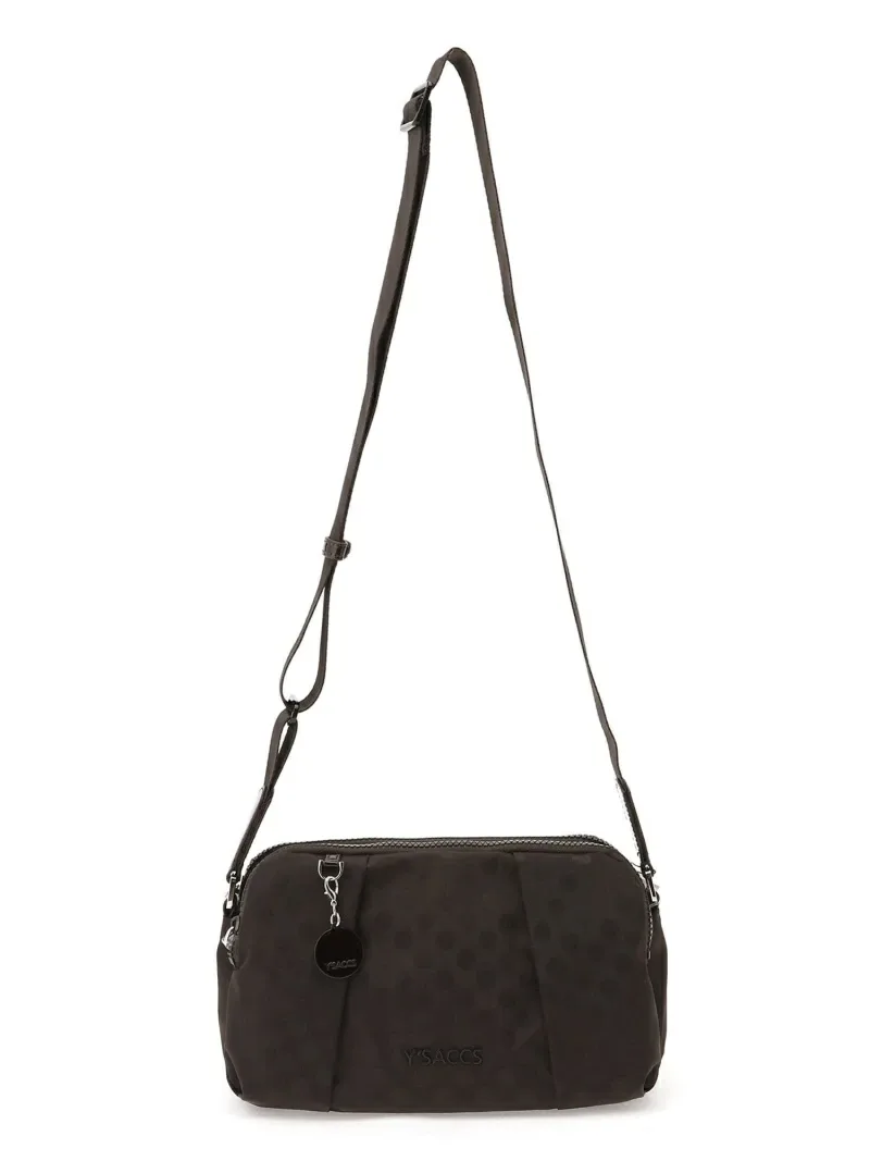 Эта сумка через плечо украшена эффектным, едва заметным узором в горошек. Ее функциональная конструкция включает основное отделение и карман на молнии, что делает ее чрезвычайно удобной в использовании.