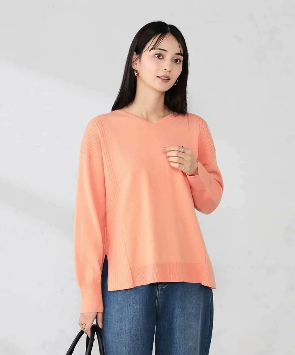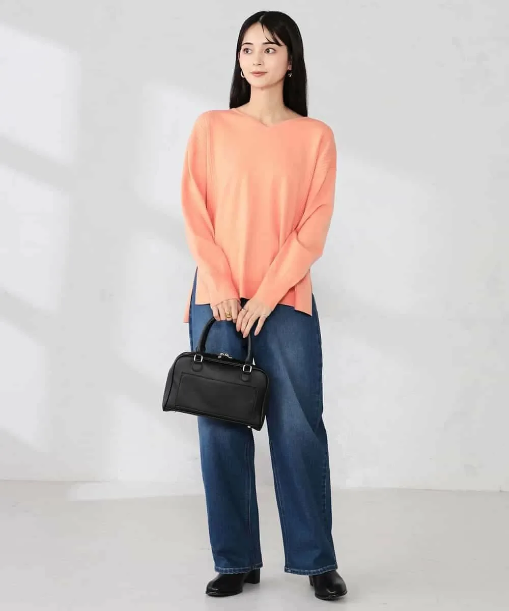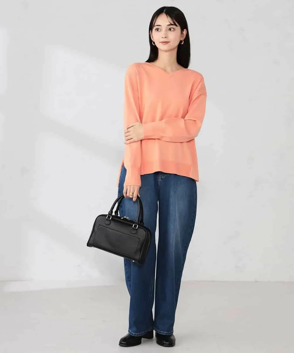 - Неглубокий V-образный вырез создает аккуратный вид вокруг лица и позволяет легко надевать его под другую одежду