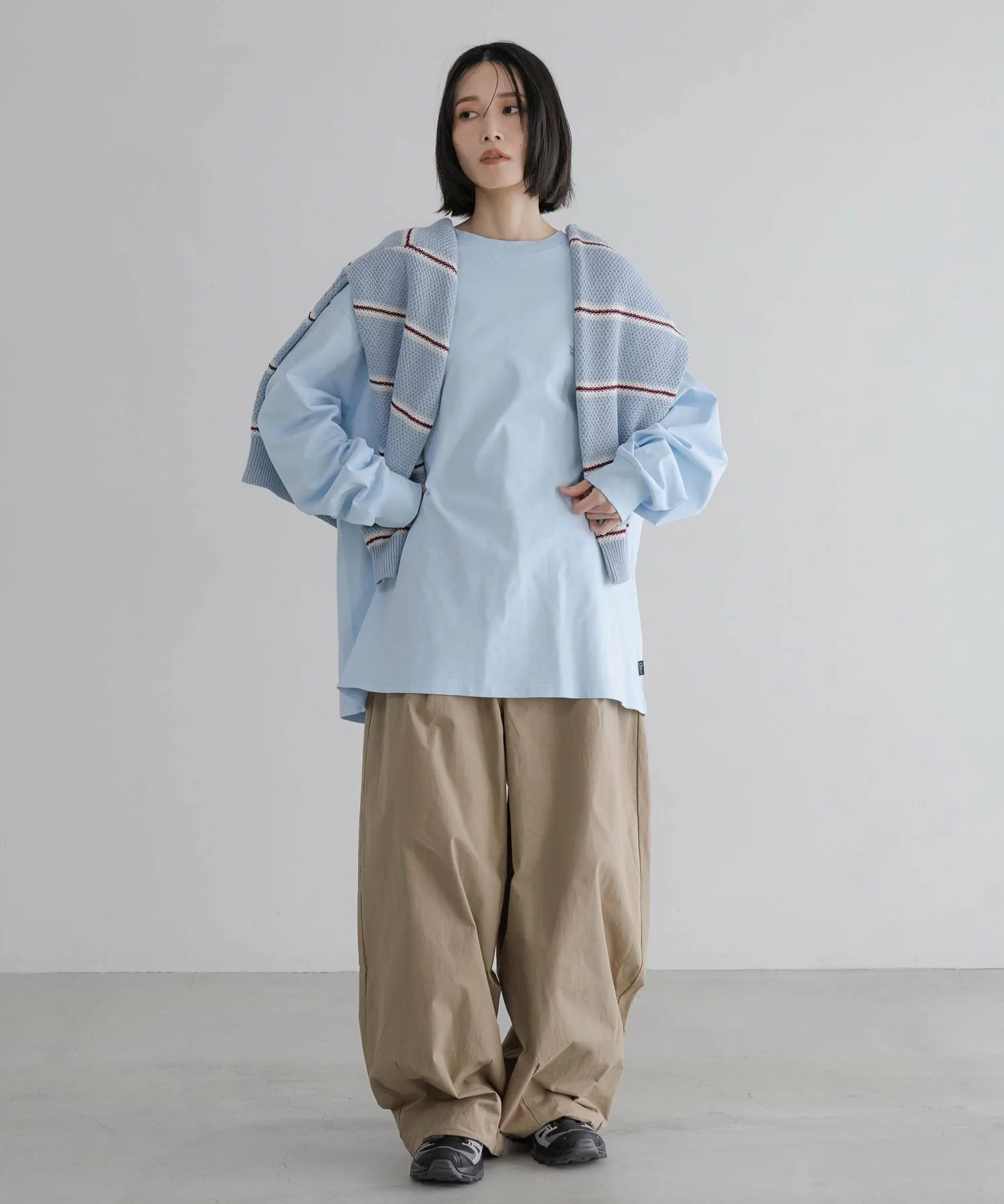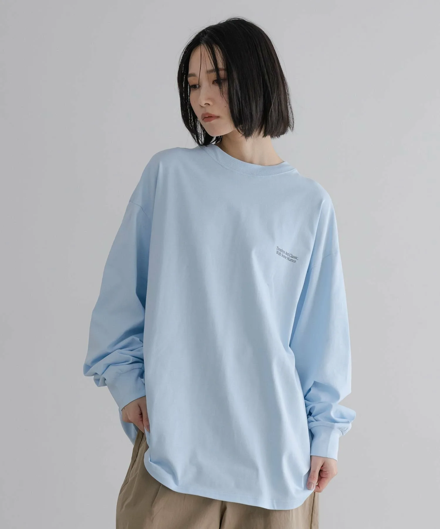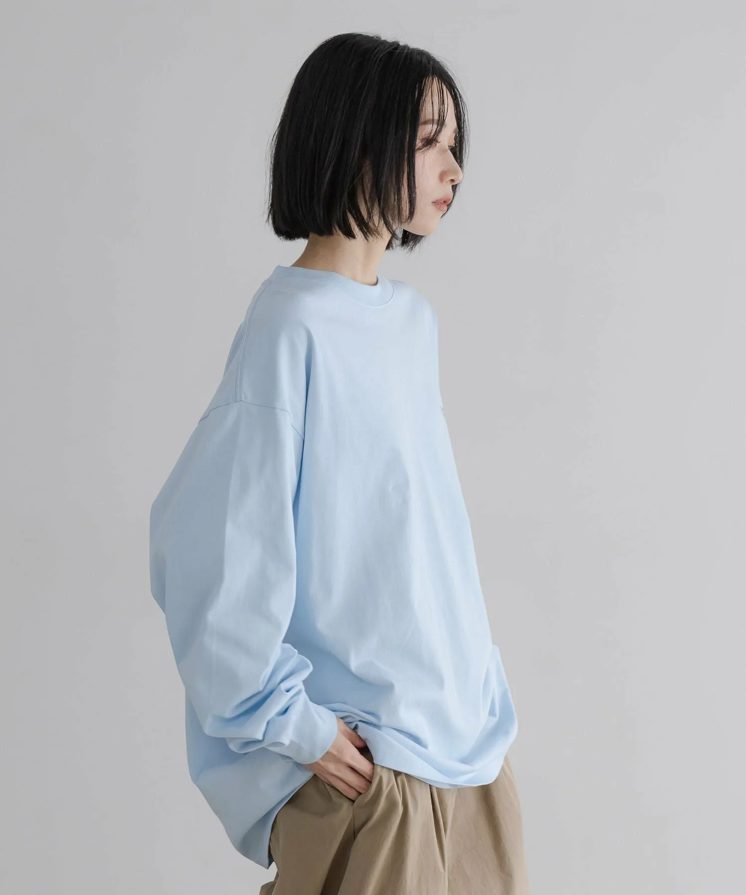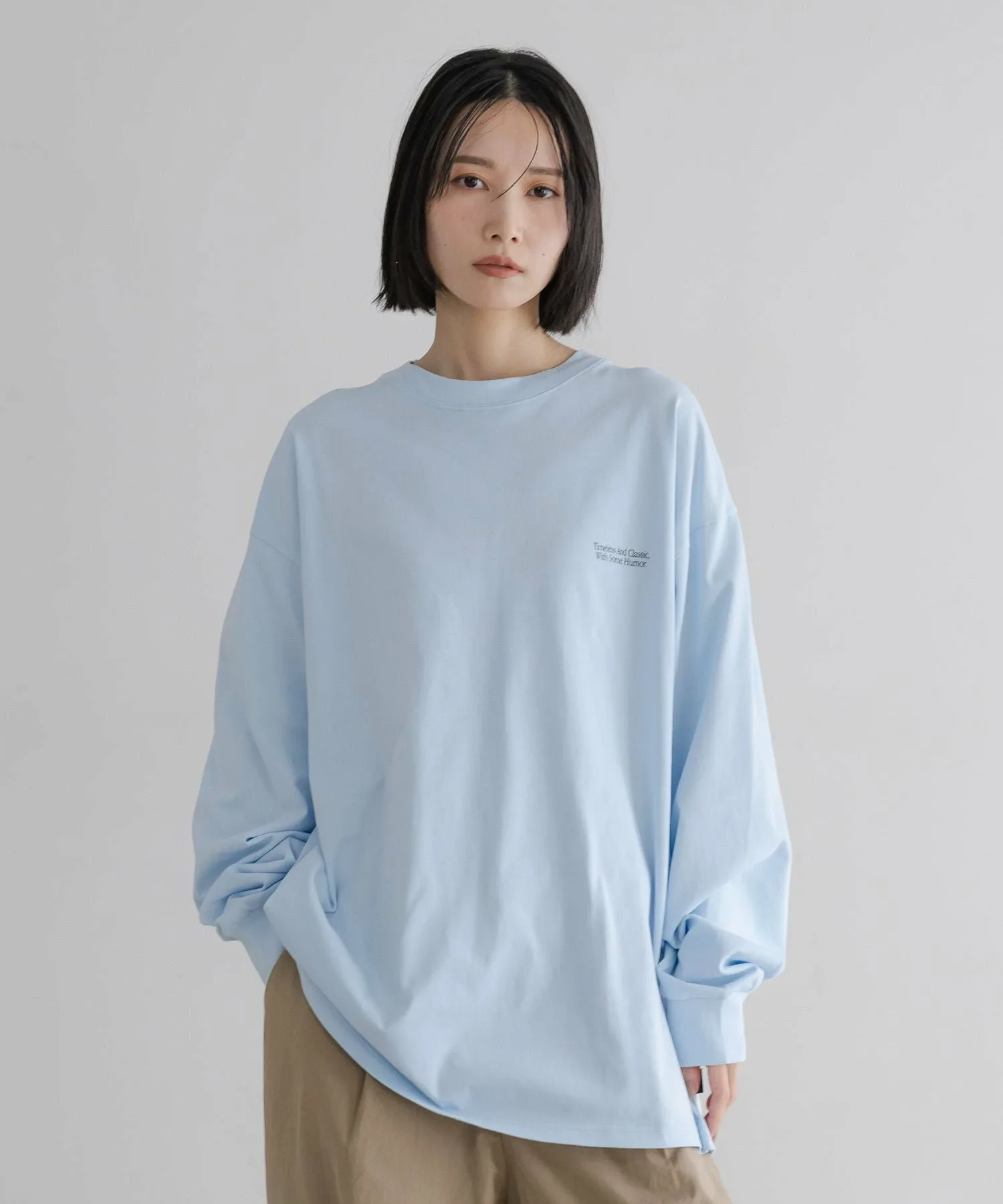 Футболка с длинными рукавами умеренно свободного, оверсайз силуэта, которая отлично смотрится даже в качестве самостоятельной одежды.