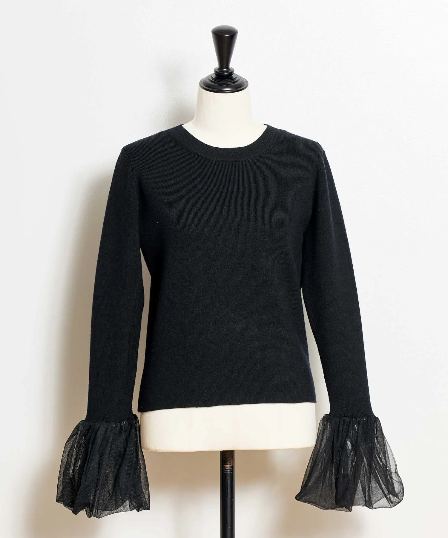 Этот вязаный топ украшен тюлем на манжетах, что придает ему утонченную элегантность.