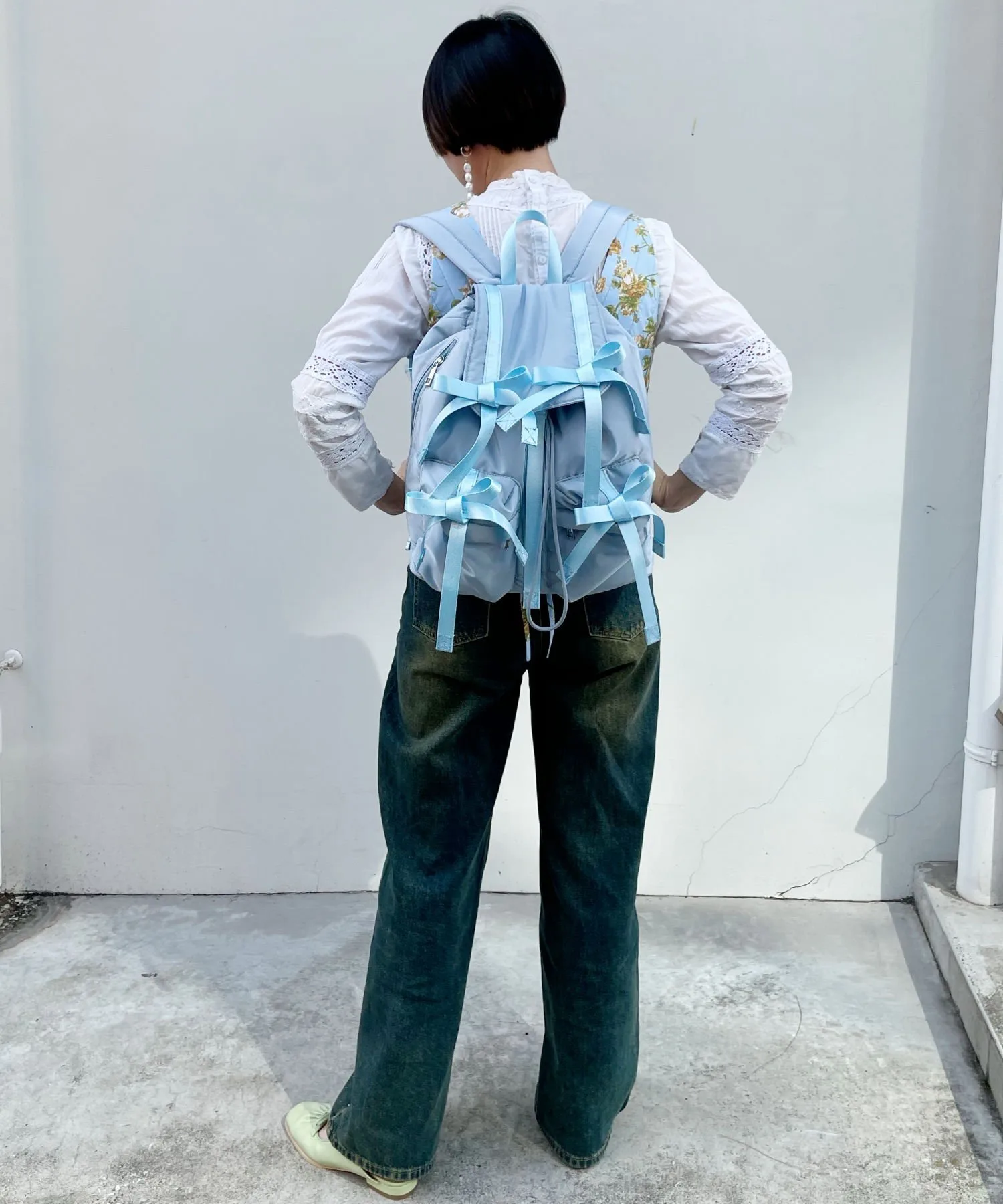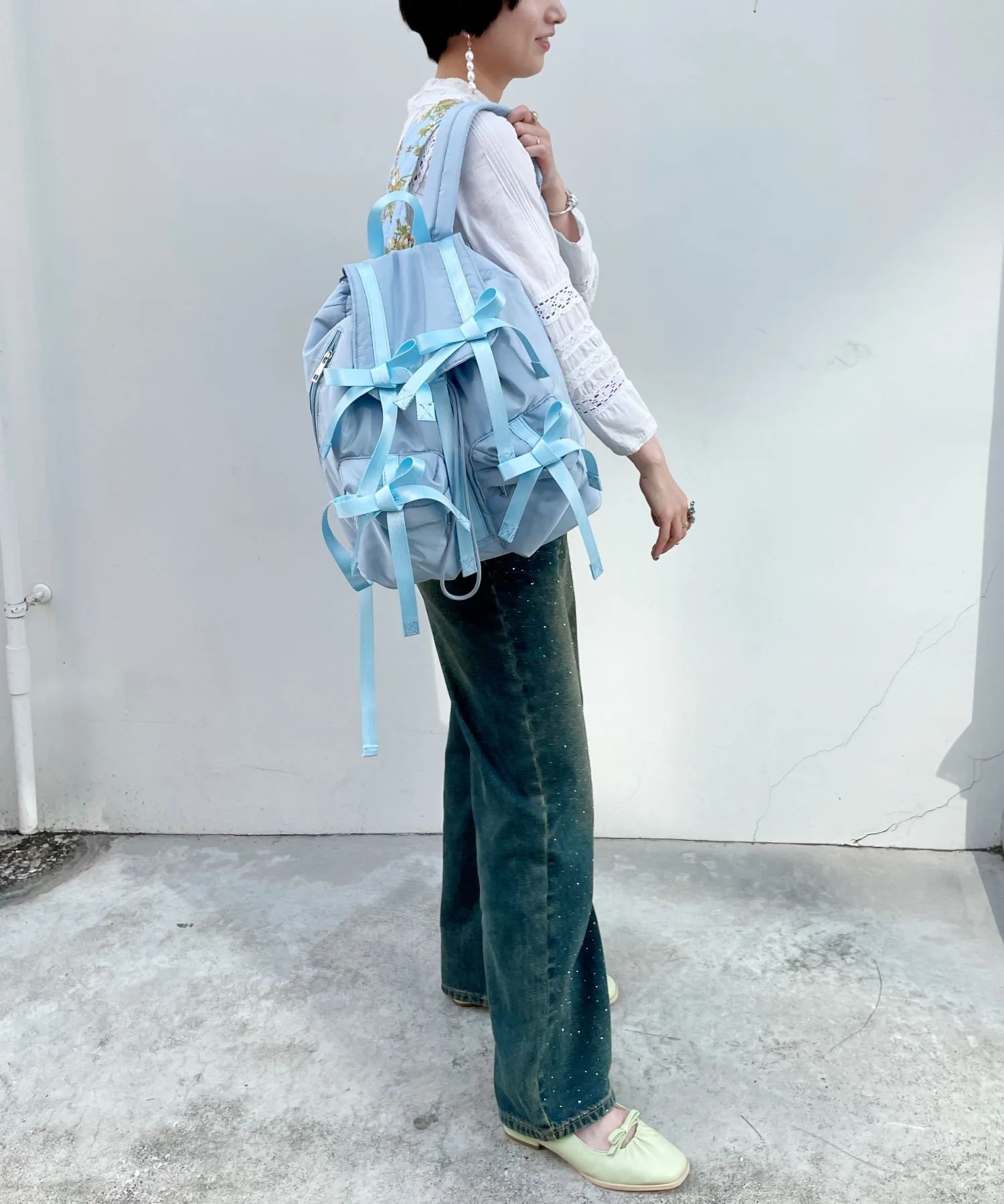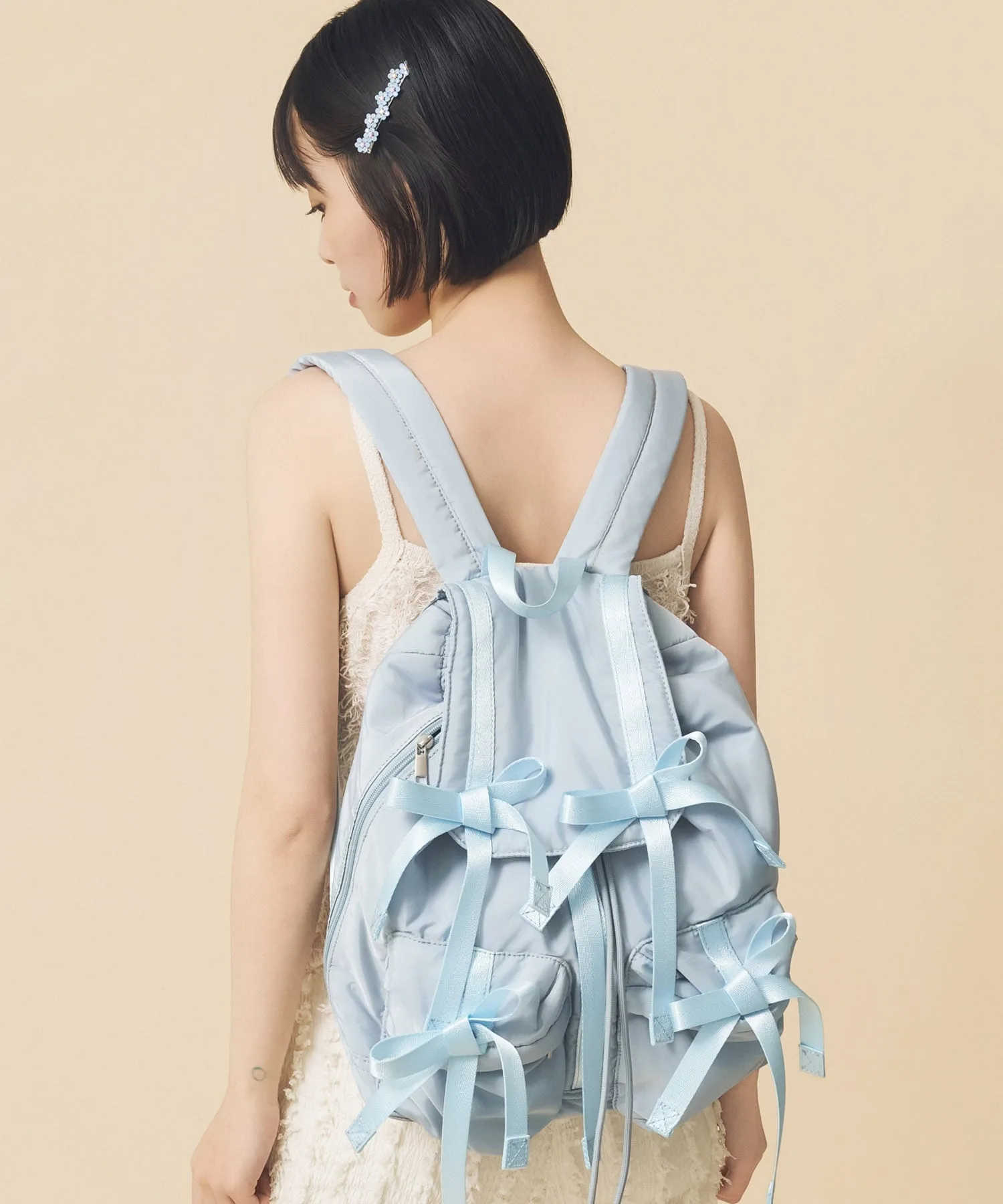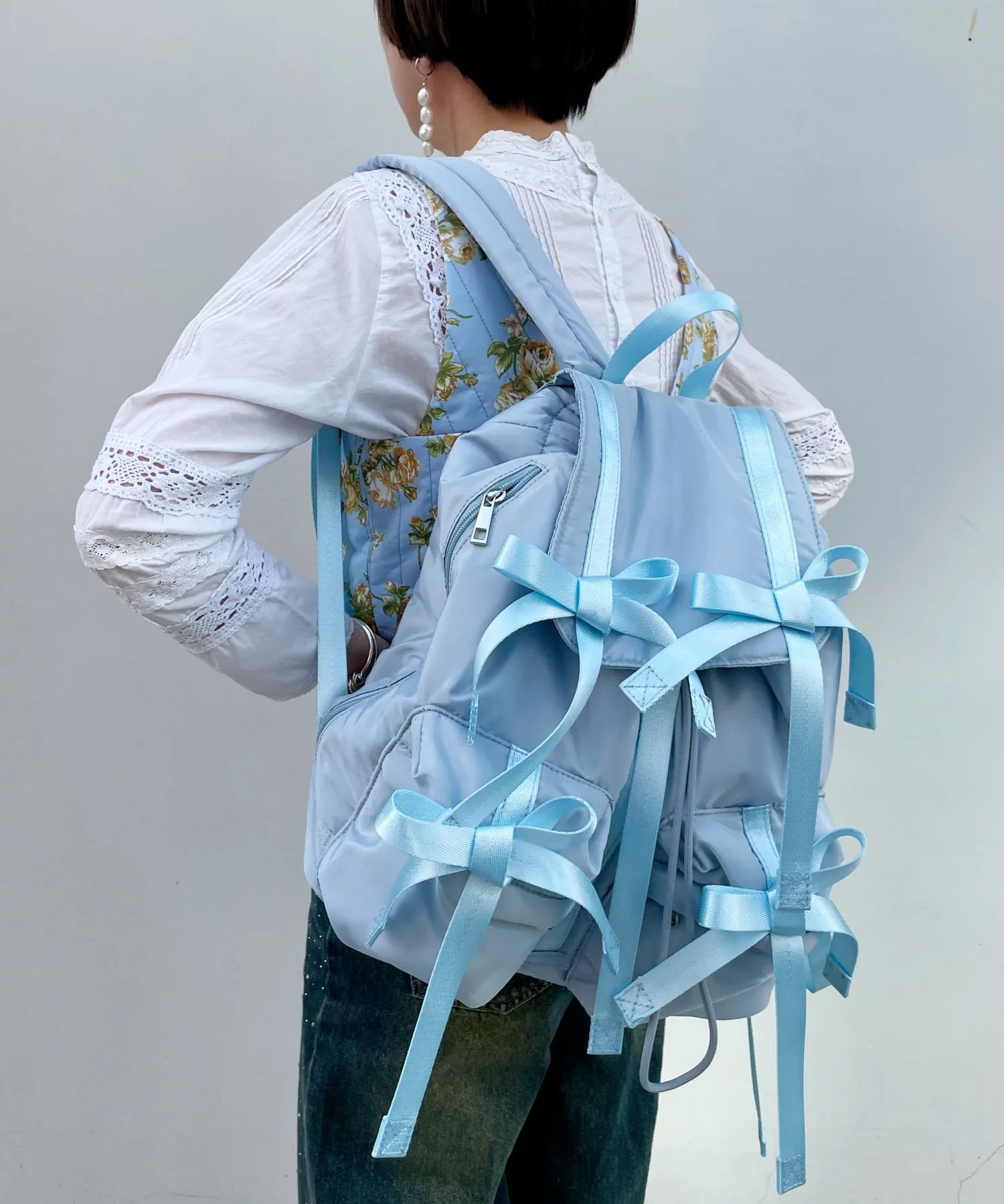 Рюкзак с модными многочисленными лентами.