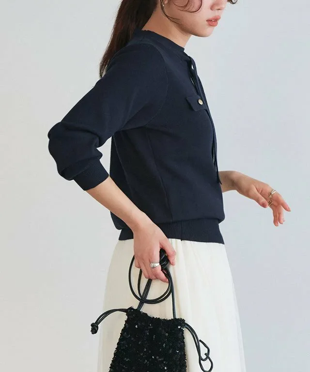 Дизайн в виде бабочки и золотые пуговицы на груди создают привлекательный силуэт, придающий образу женственность. Ширина изделия не слишком облегающая, что обеспечивает умеренный силуэт, поэтому вы можете носить его, не чувствуя стеснения. Даже просто надев этот свитер, вы получите стильный образ.