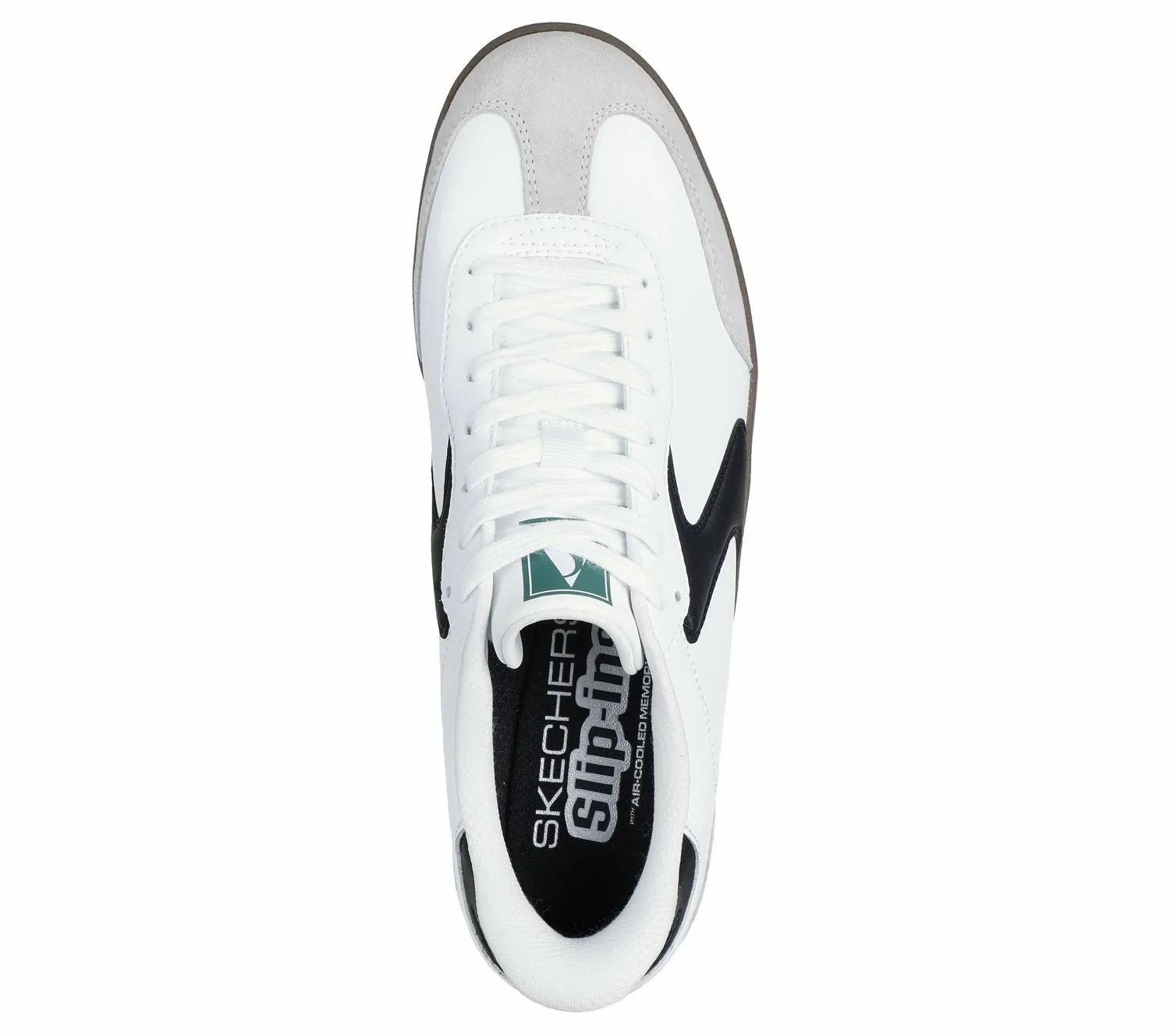Особенности Современная классика сочетается с комфортом в слипонах Skechers HandsFree Slip-ins: Hot Shot - Relegate. Классические слипоны для корта с дизайном HeelPillow. Особенности включают верх из синтетической кожи и замши из свиной кожи, регулируемые шнурки, контрастный логотип «S» на боковой части и фирменную амортизирующую стельку Skechers Air-Cooled Memory Foam.