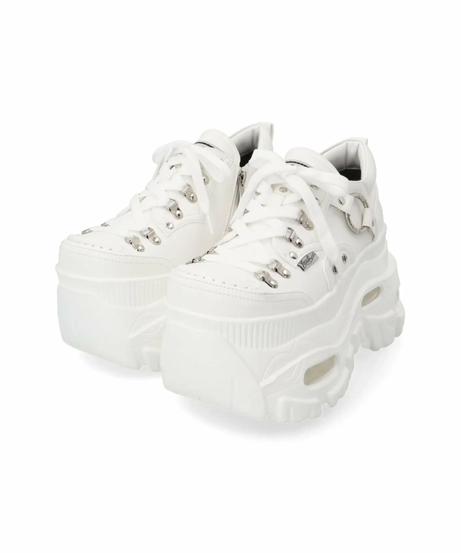 Эти кроссовки уникально дополнены кольцами и металлическими деталями по бокам.