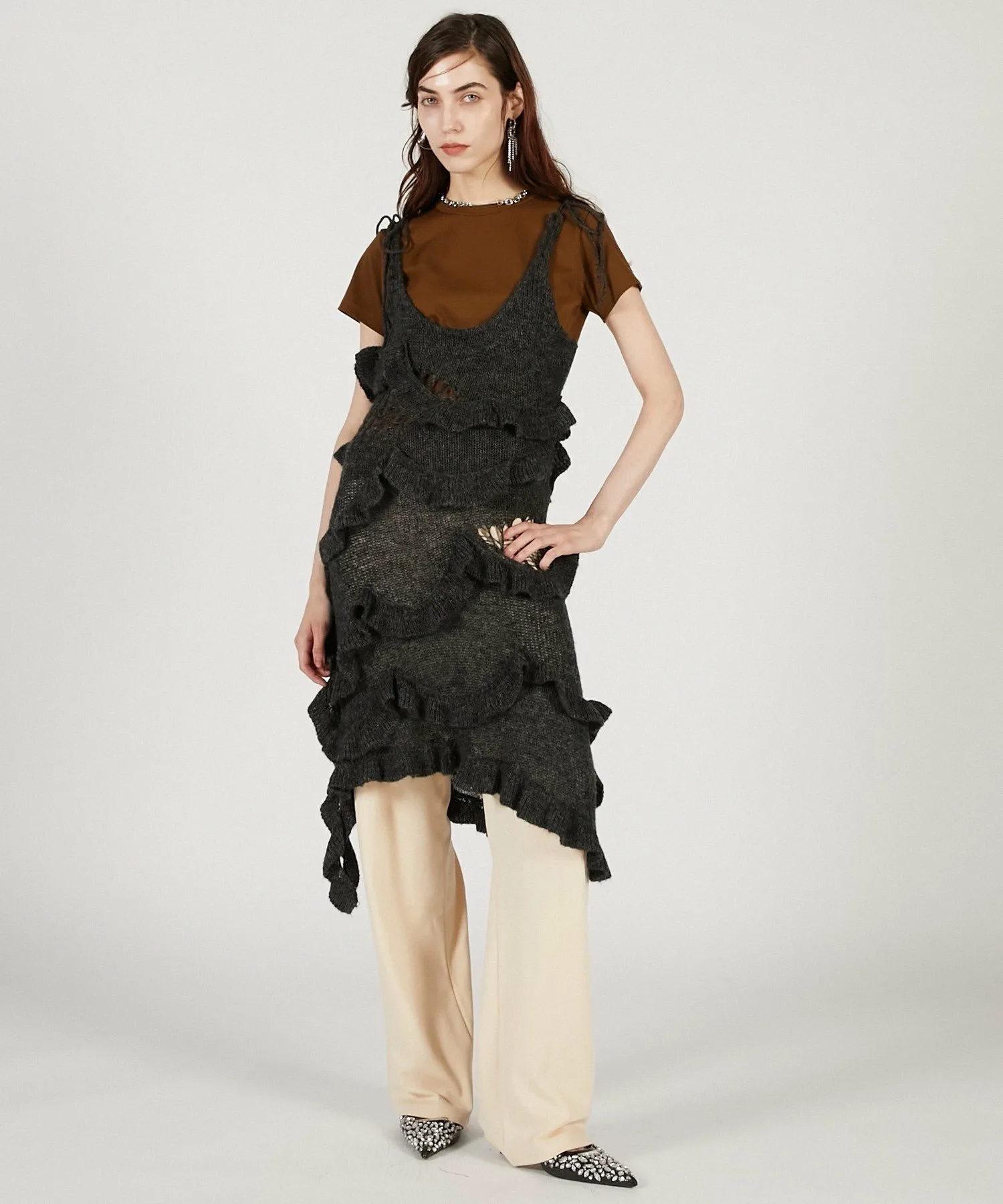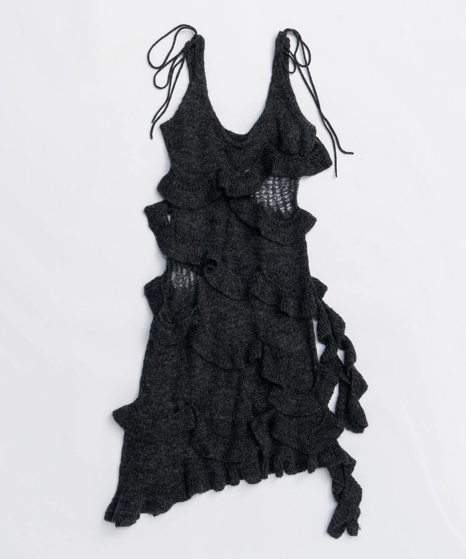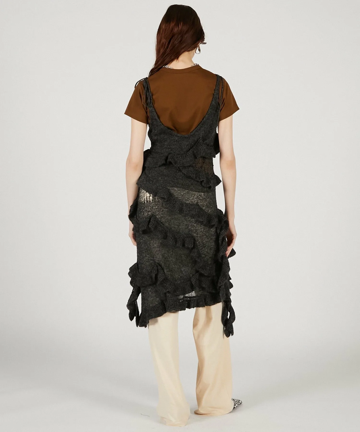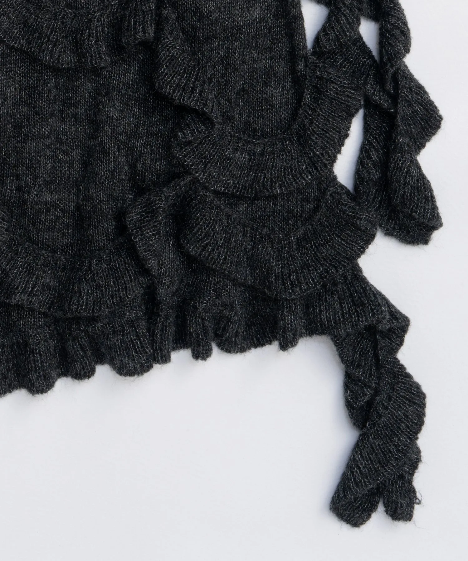 Главная особенность — щедрая оборка из той же пряжи, обвивающая все тело.