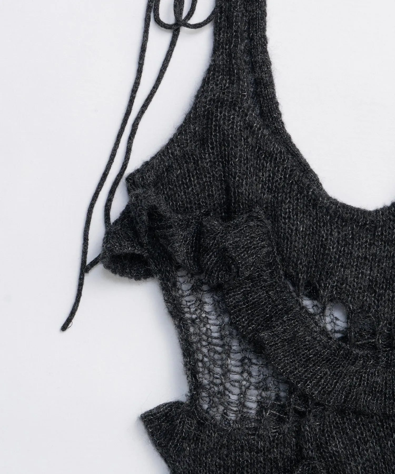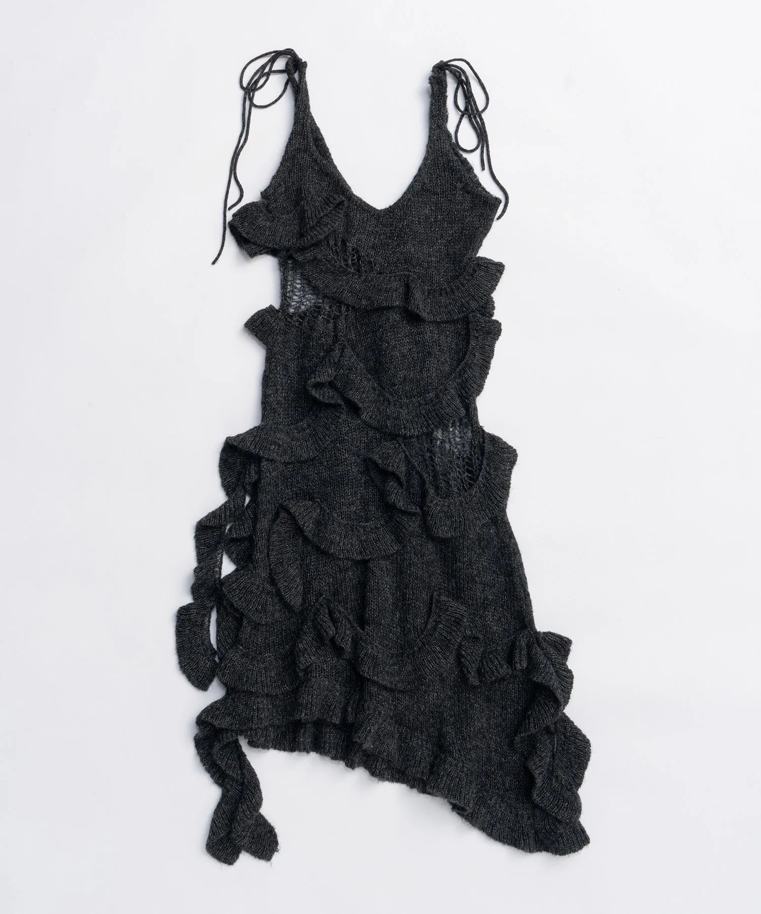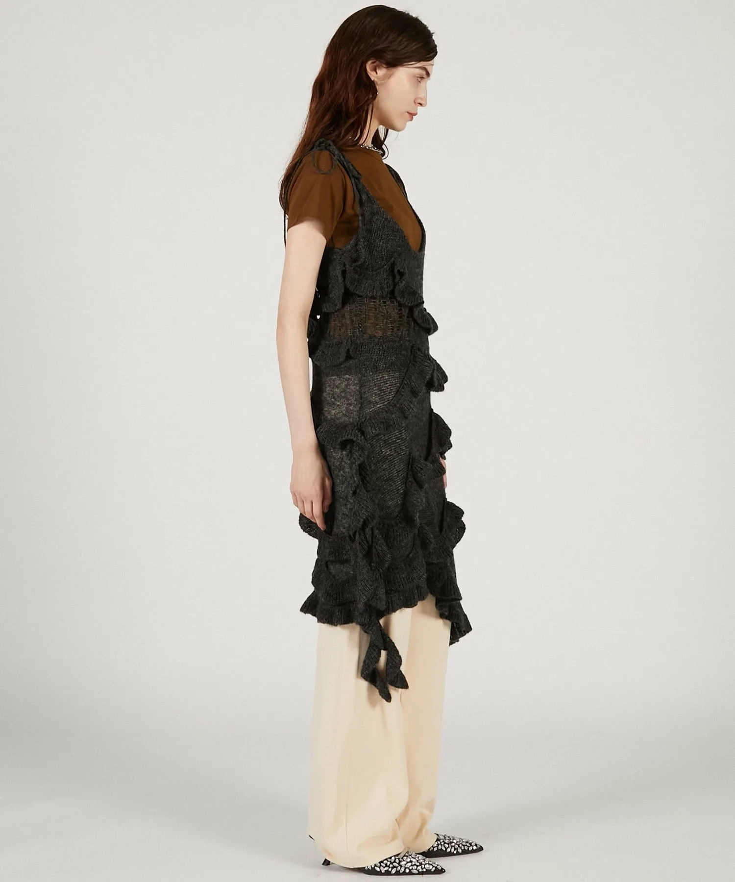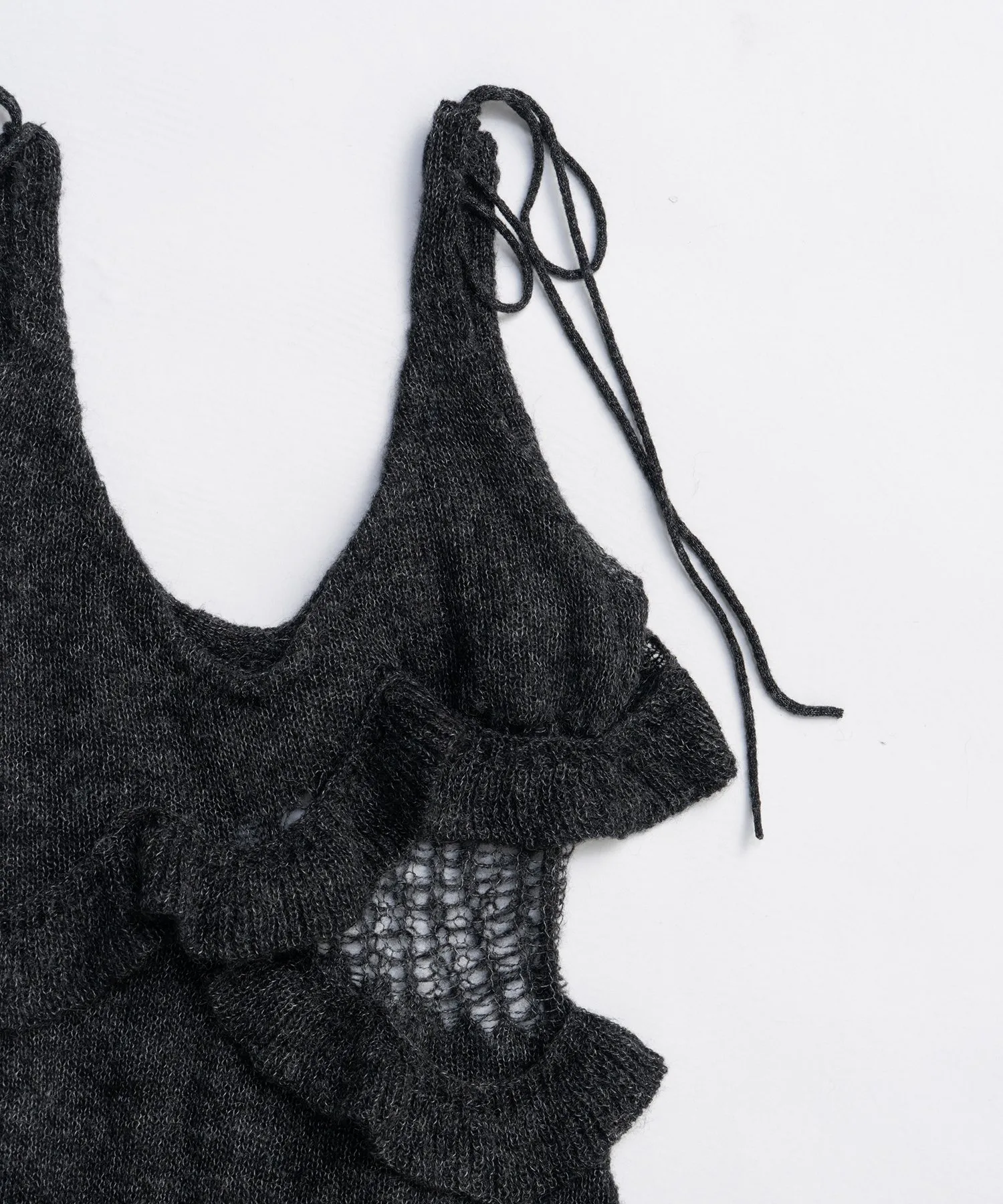 Главная особенность — щедрая оборка из той же пряжи, обвивающая все тело.