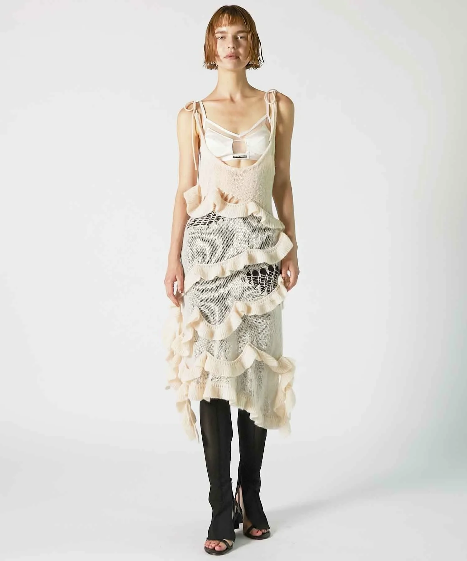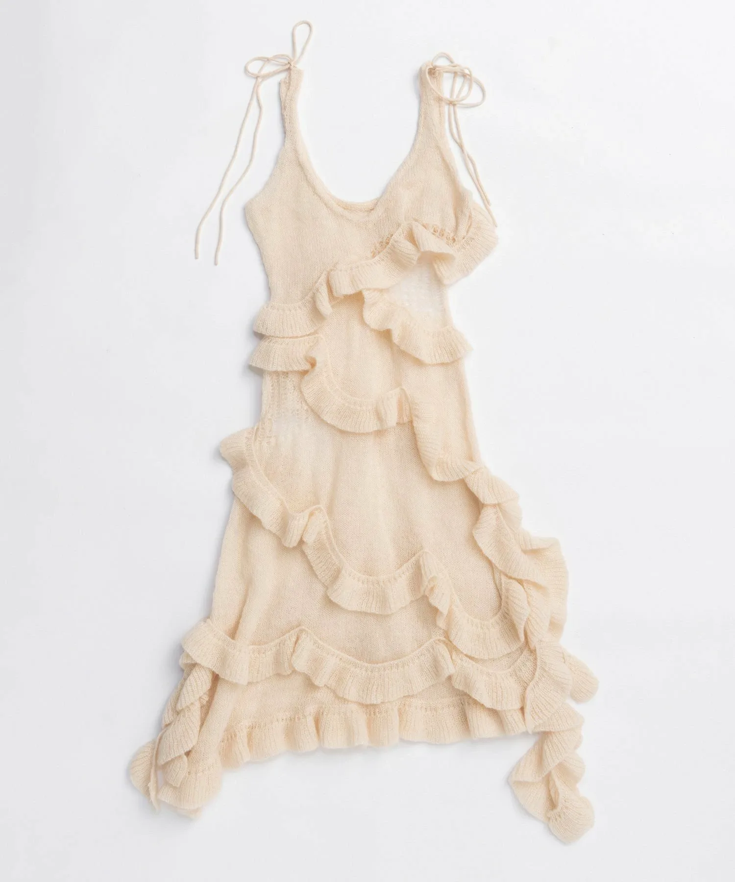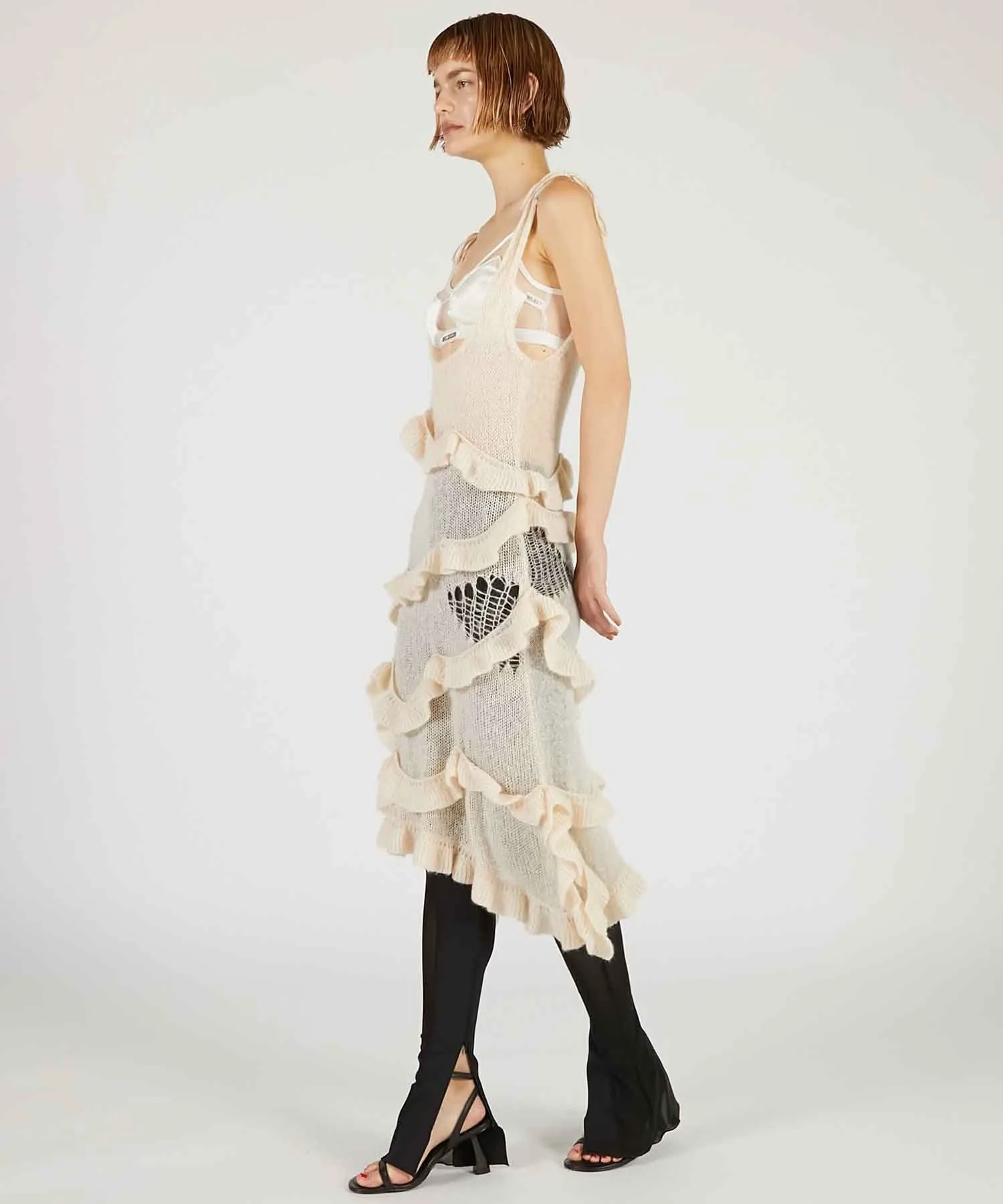 Главная особенность — щедрая оборка из той же пряжи, обвивающая все тело.