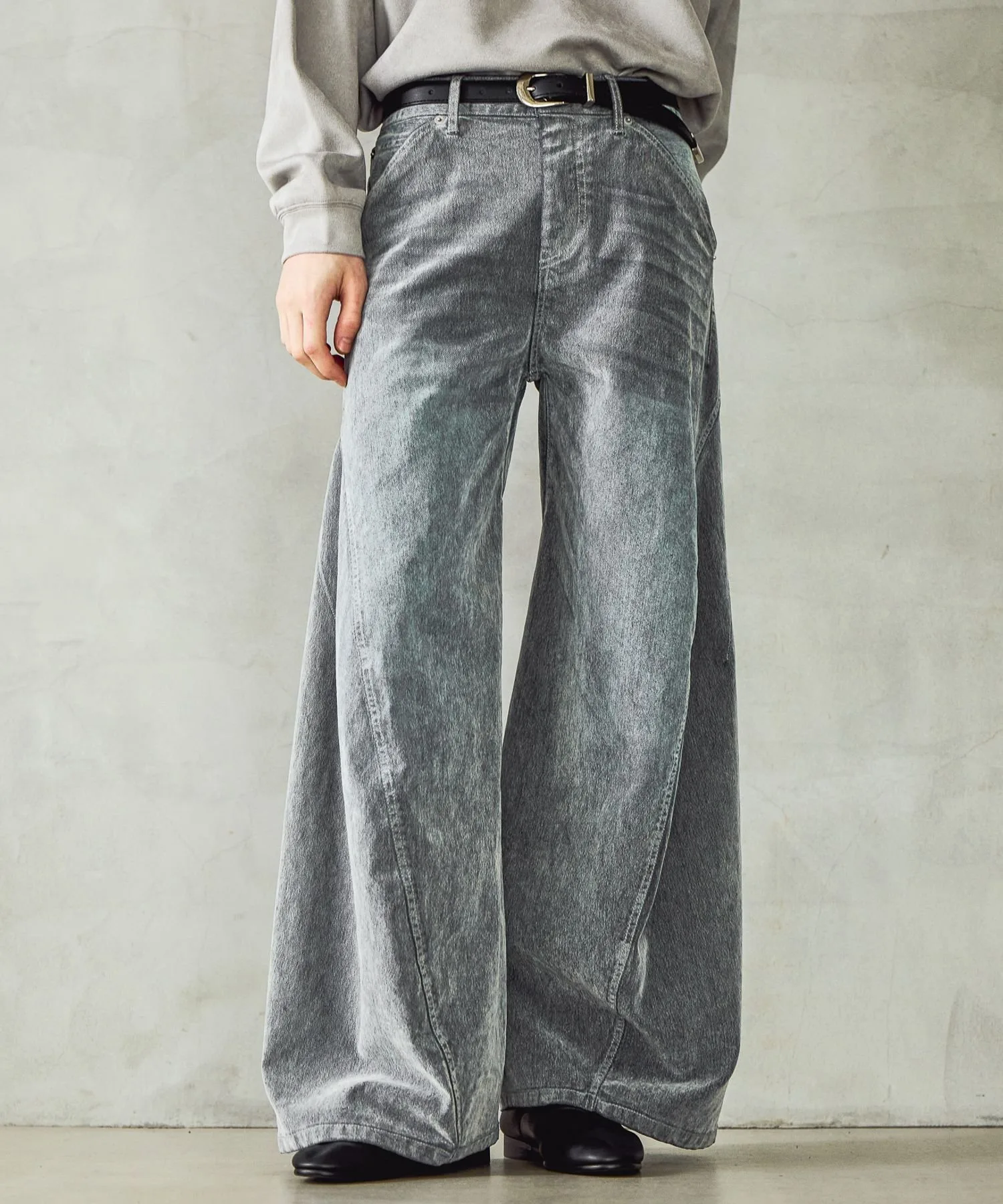 Эти широкие джинсы имеют трехмерный, изогнутый силуэт, позволяющий насладиться уникальной текстурой и эффектом выцветания денима.