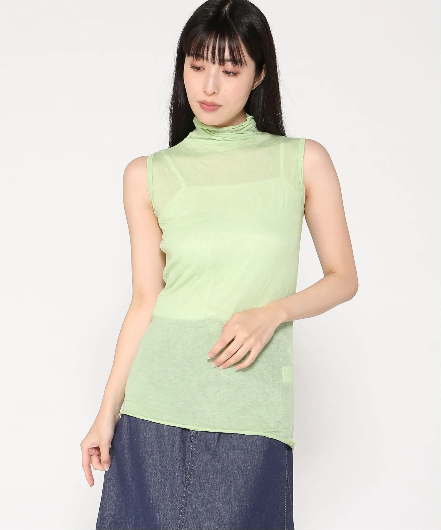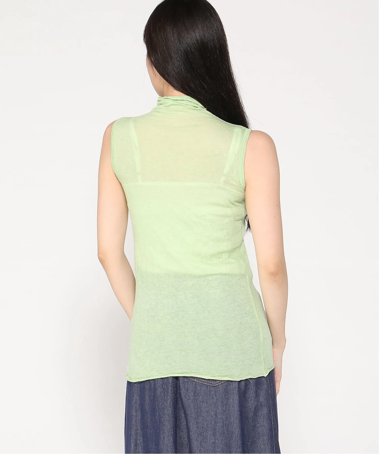 Представляем топ без рукавов из полупрозрачной ткани, которая обеспечивает ощущение легкости и создает здоровый и сексуальный образ. Этот топ сочетает в себе полиэстер, который не мнется и не прилипает к коже, и хлопок, обладающий приятной натуральной текстурой. Рекомендуем также фасон, который выгодно подчеркивает фигуру и создает красивый силуэт. Рост модели: 163 см. Размер: мятно-зеленый, темно-зеленый/F.