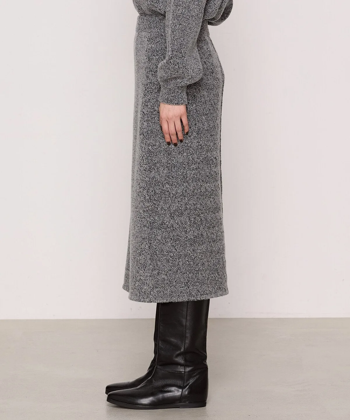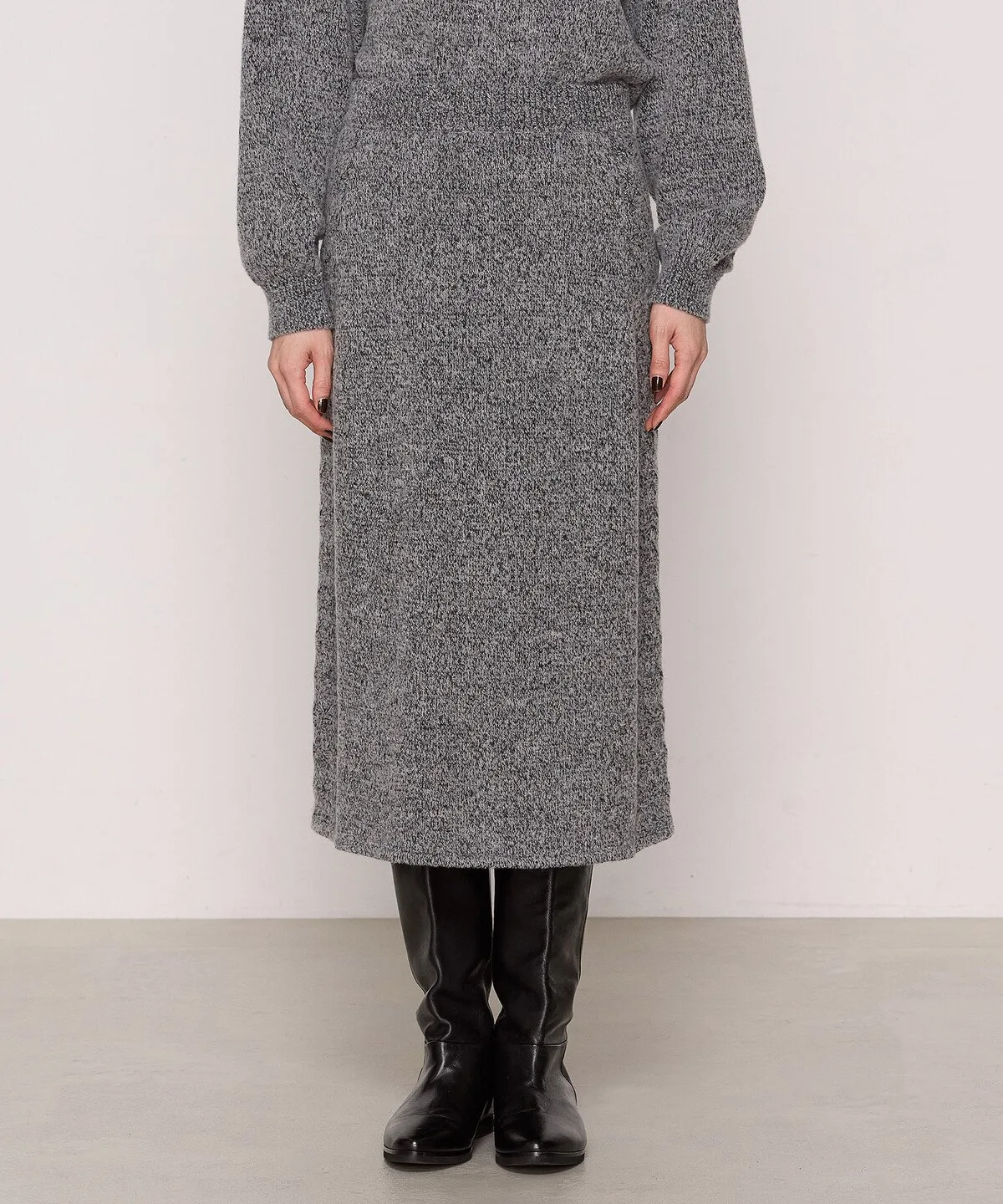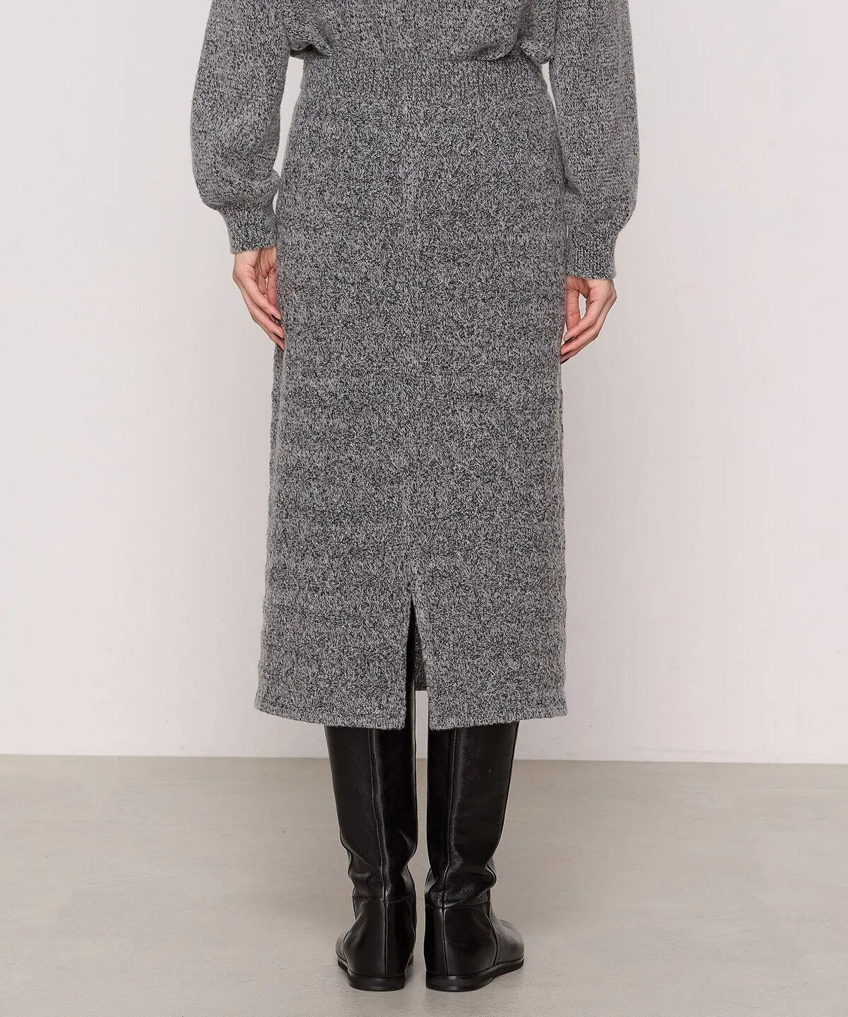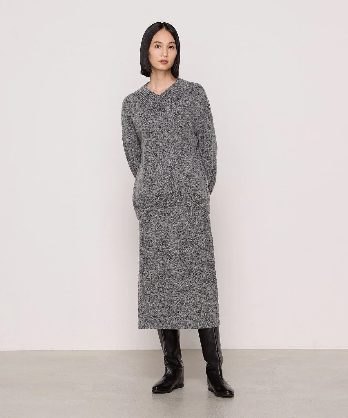 Эту вязаную юбку можно носить в комплекте с юбкой с V-образным вырезом из той же серии (
