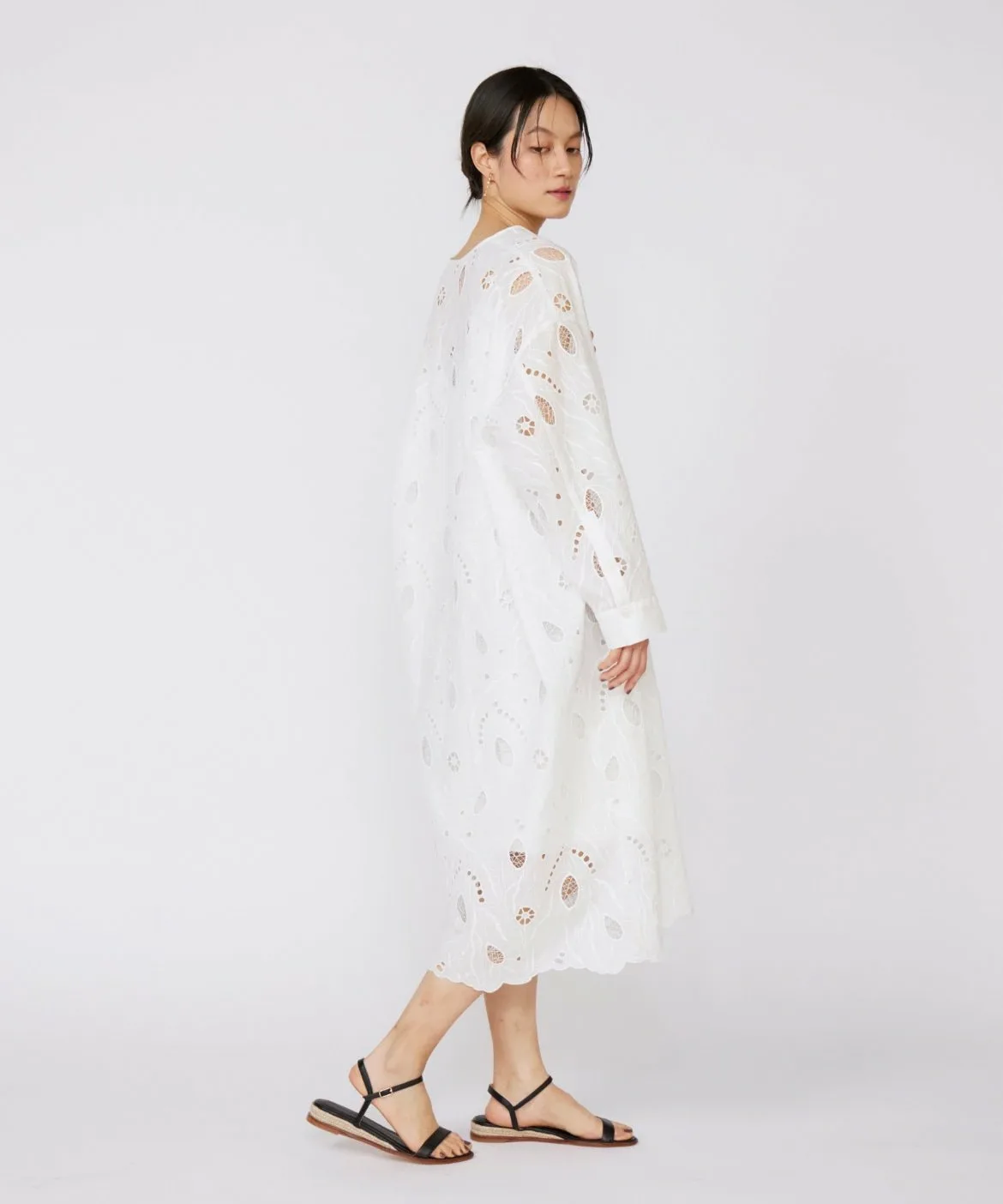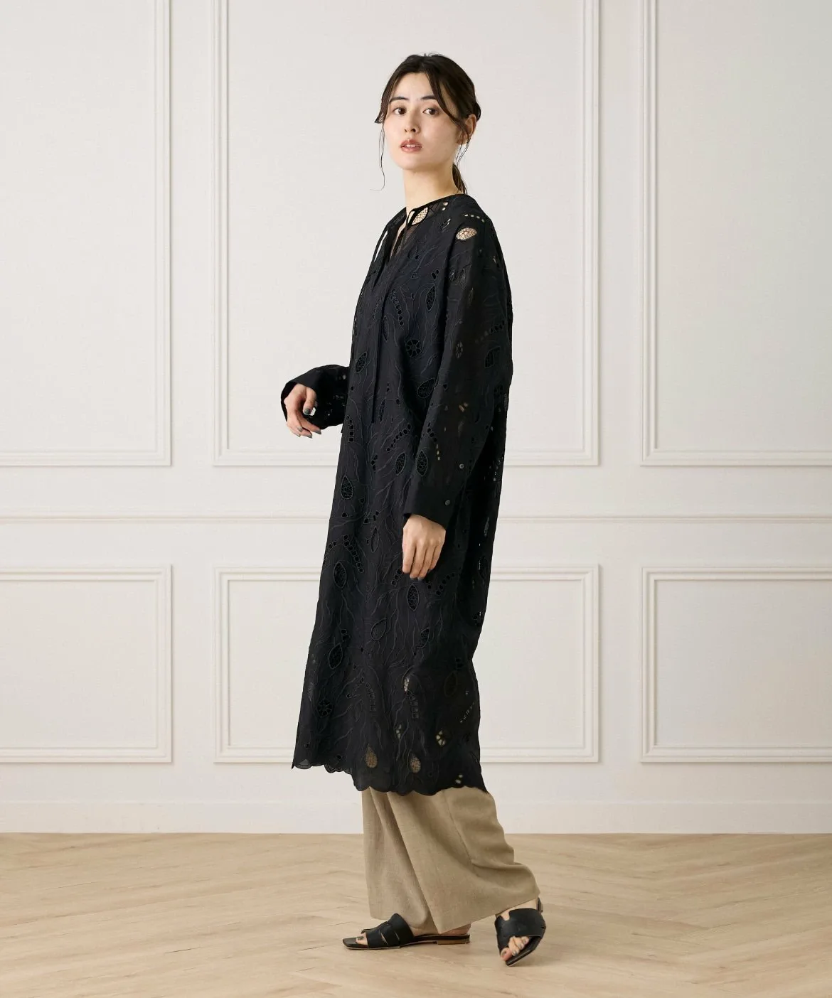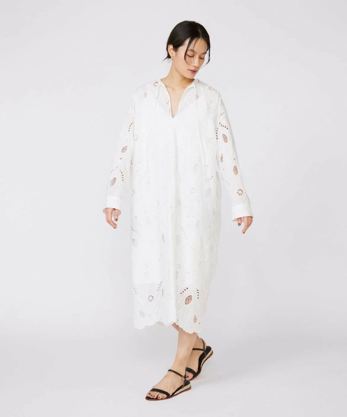 Это платье-кафтан отличается оригинальной вышитой кружевной отделкой и манжетами в стиле рубашки, что позволяет избежать слишком повседневного вида. Рекомендуется сочетать его с широкими брюками для создания изысканного образа, но его также можно носить поверх купальника на курорте. Это универсальная и элегантная вещь для взрослых.