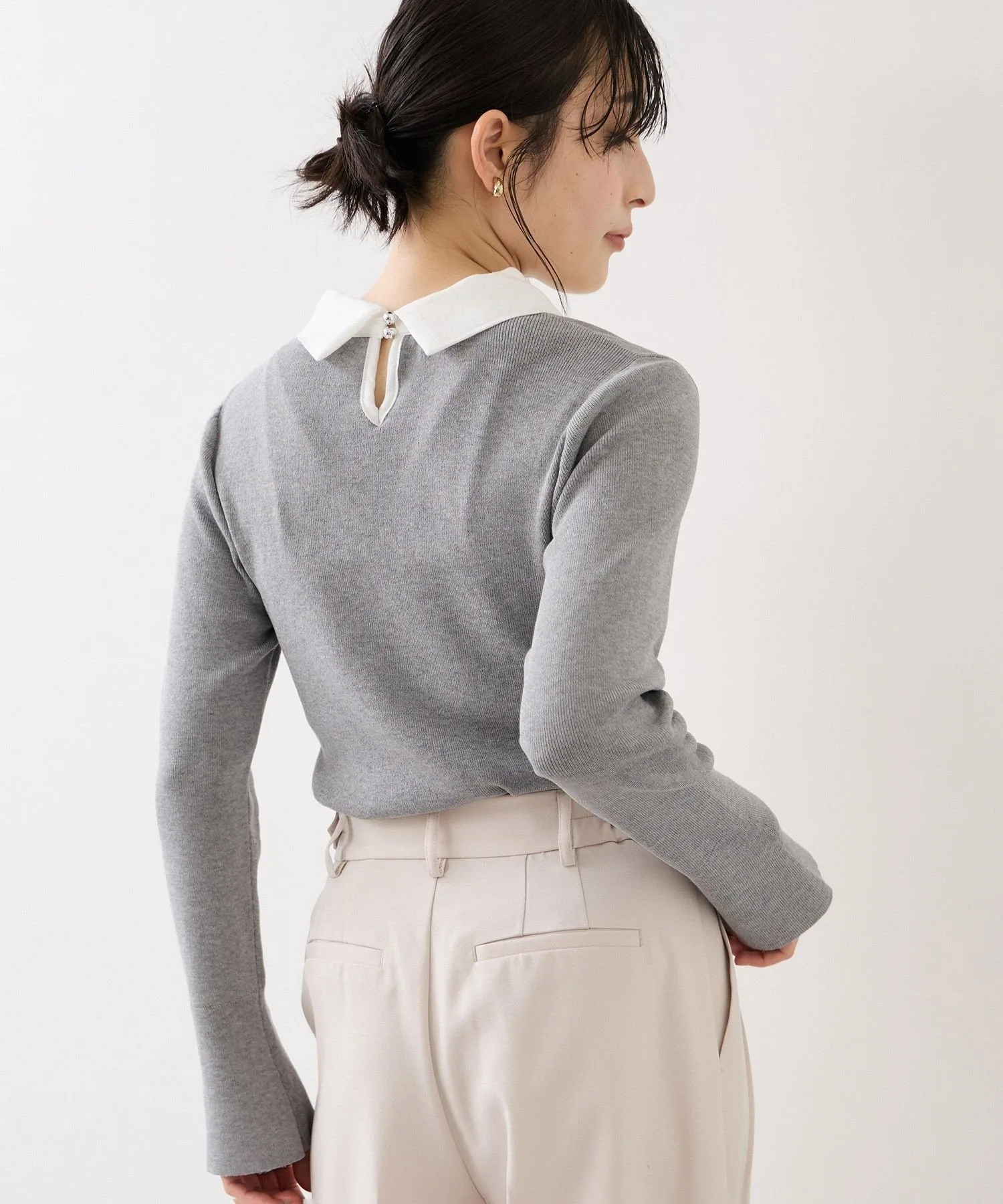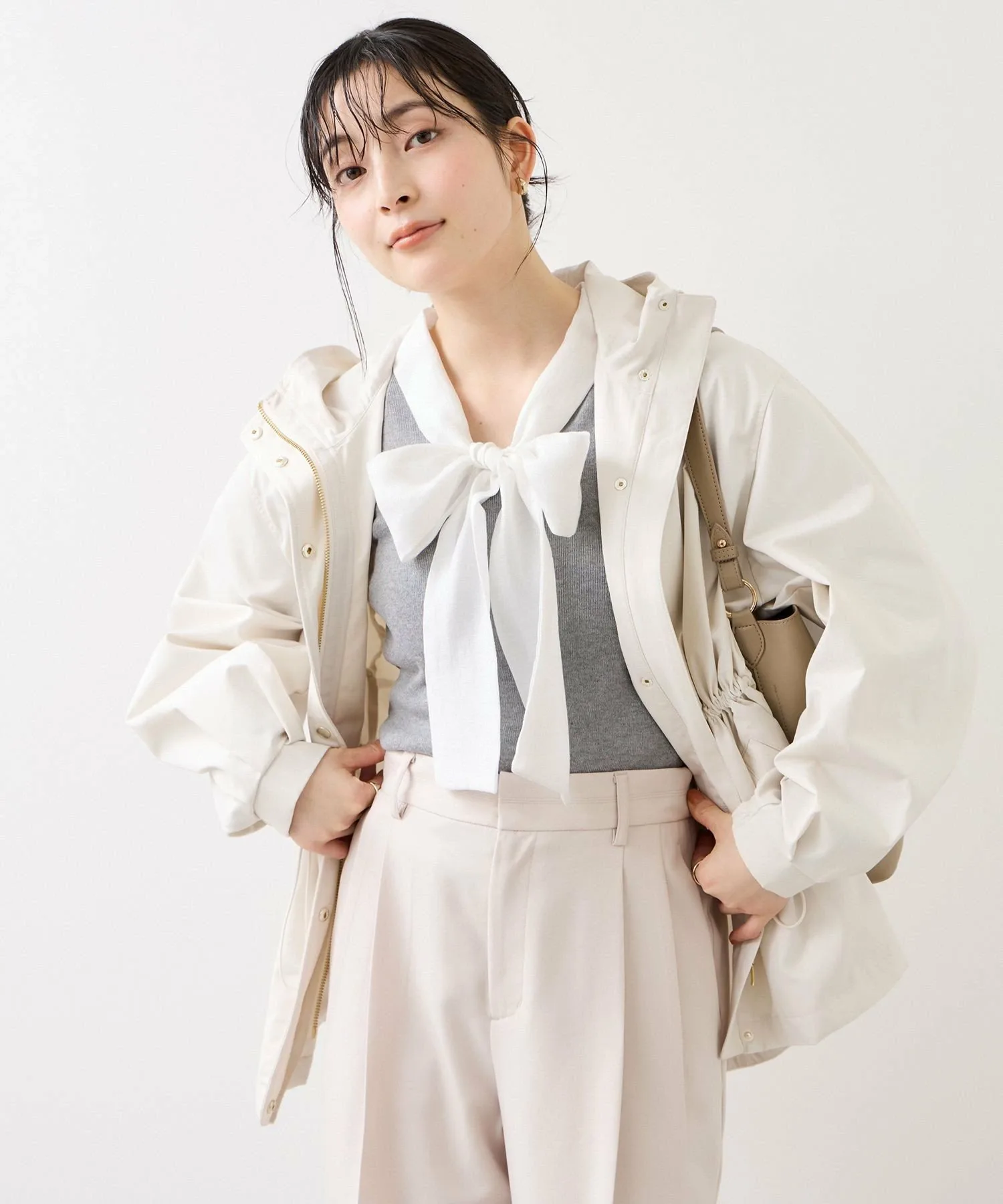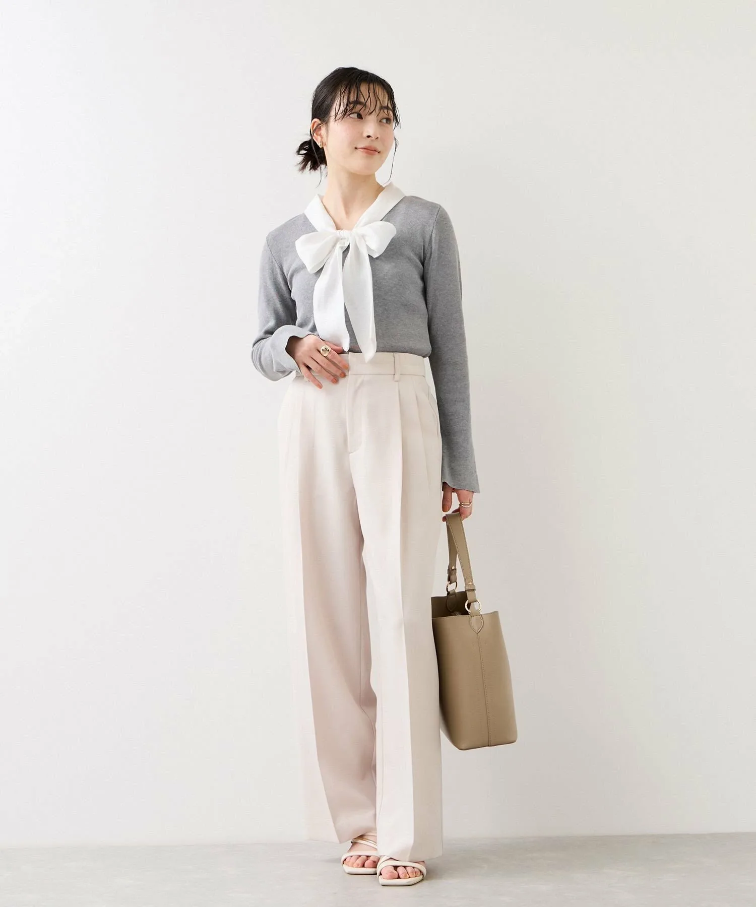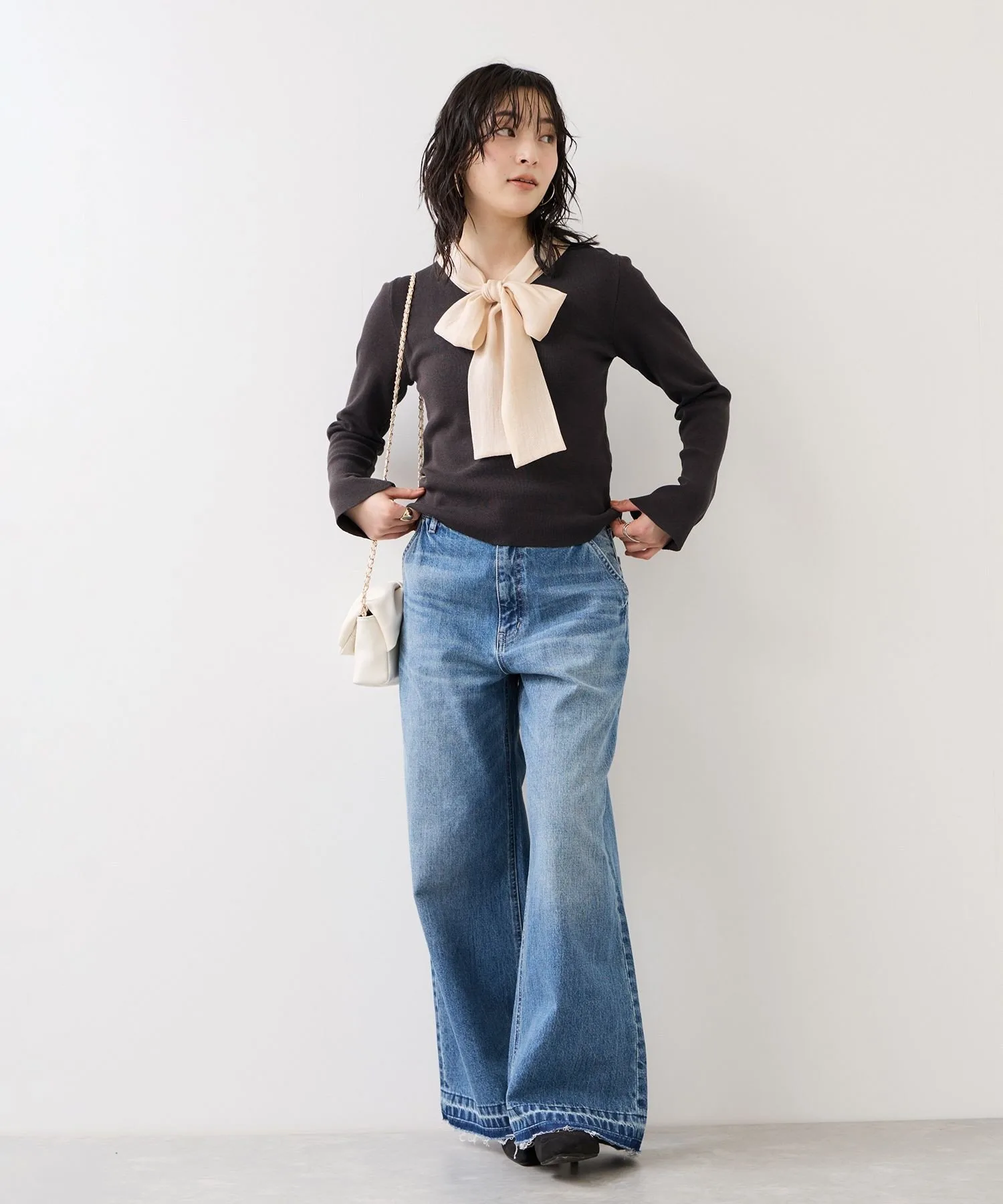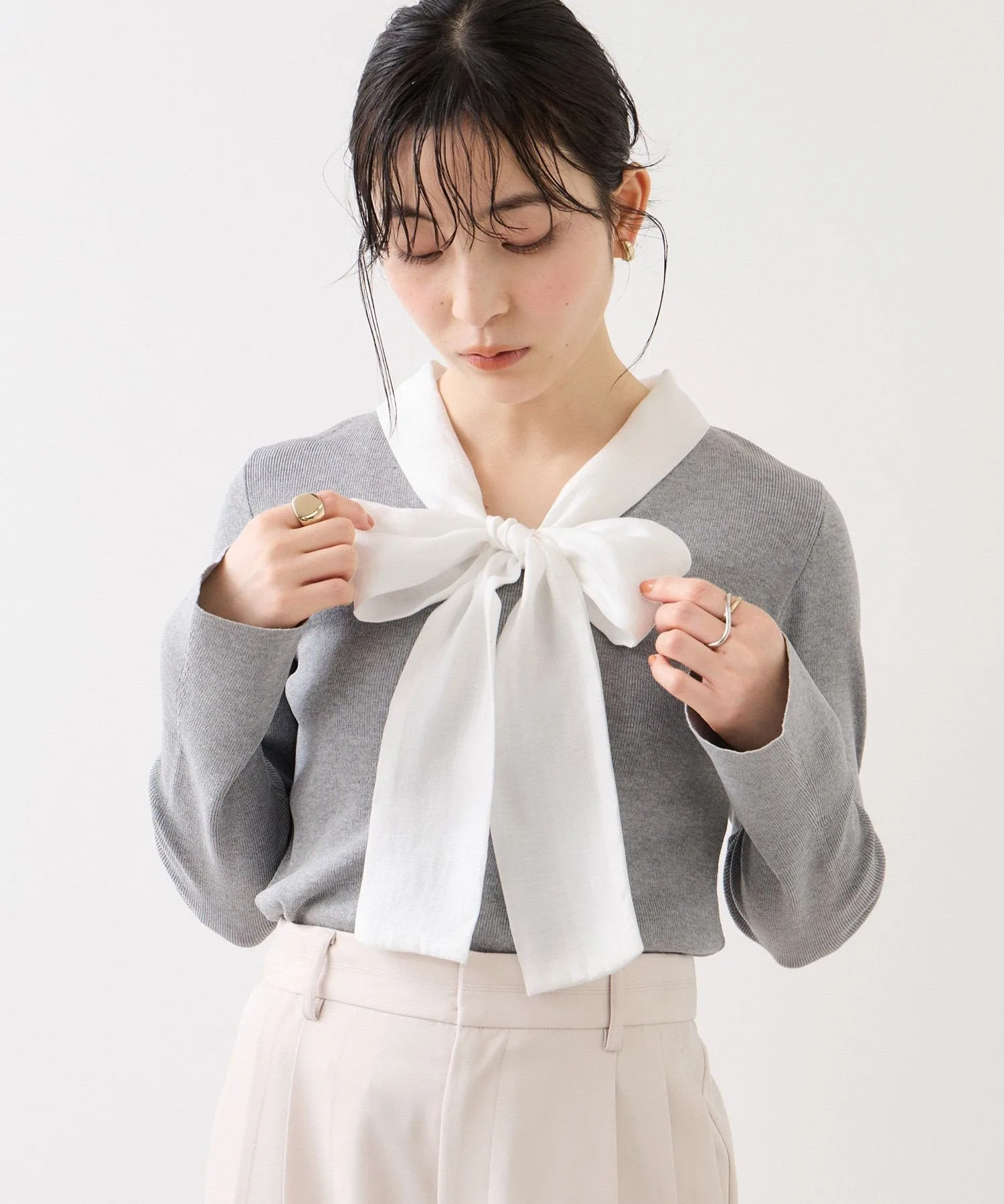 Великолепный вязаный пуловер с бантом из ленты, который можно носить как самостоятельно, так и под верхней одеждой. [Весна 2026] [26SS]
