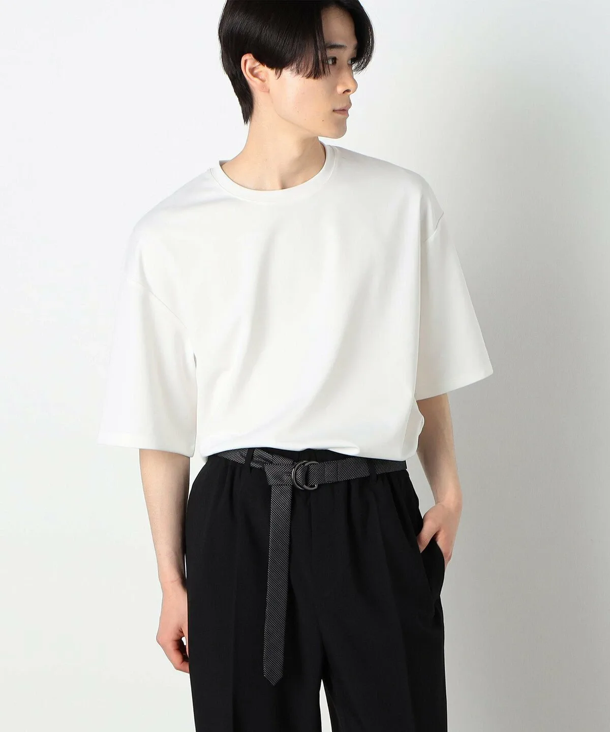 Стильный пояс из ткани с точечным узором.