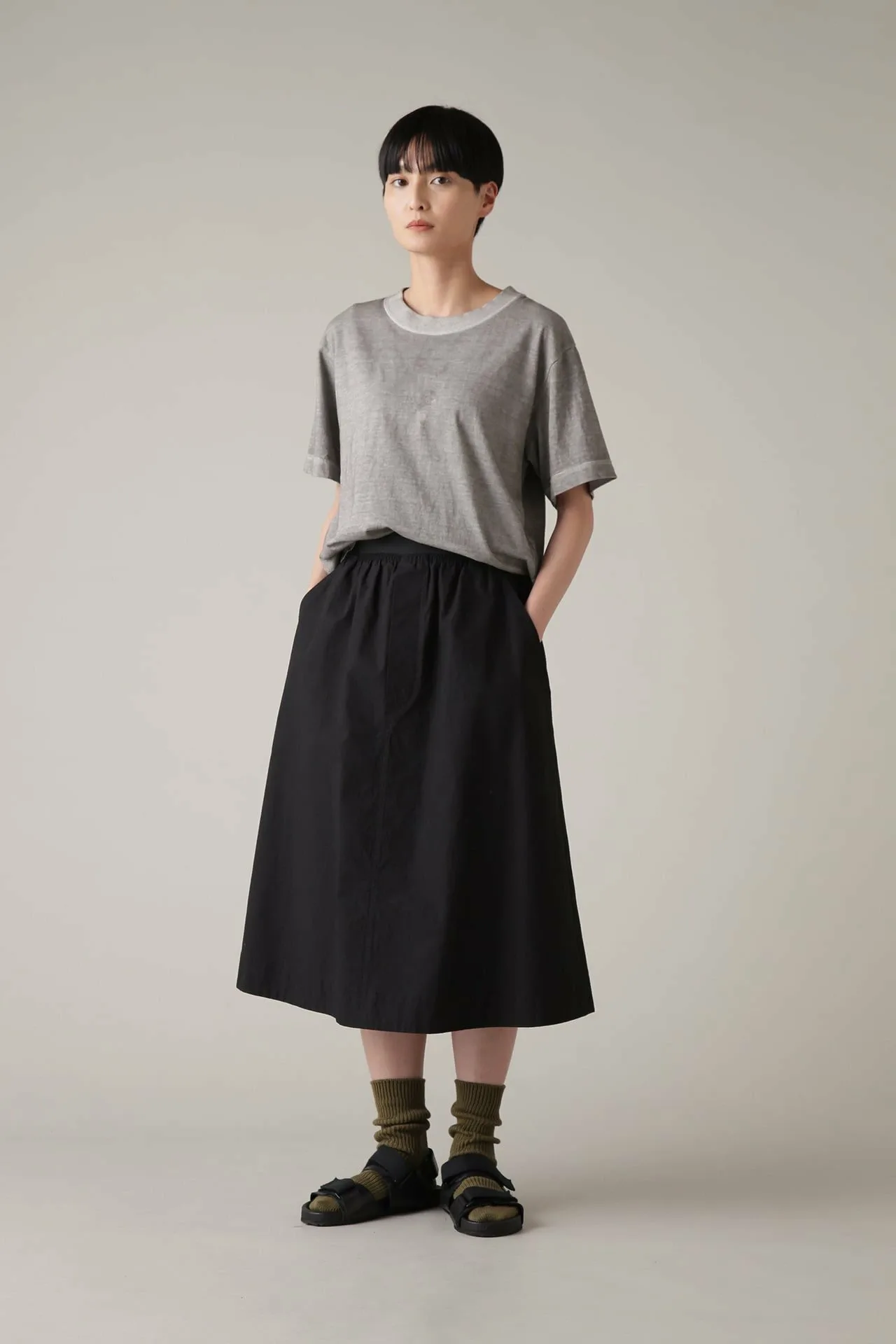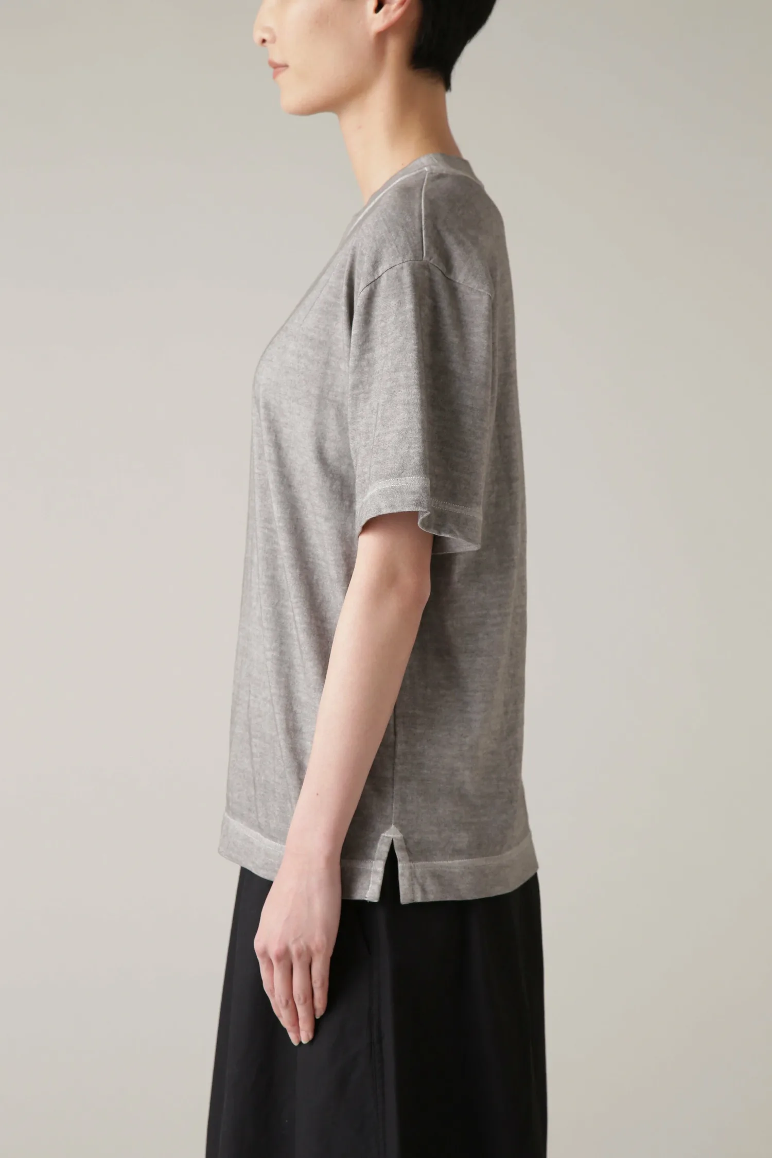 Футболка, изготовленная из трикотажного материала, смешанного с хлопком из разных регионов. Ключевая особенность — натуральная текстура, которая максимально раскрывает характеристики каждого вида хлопка. Свободный, сбалансированный силуэт и широкий воротник добавляют уникальности бренду. Доступна в одном цвете, окрашенном натуральными красителями.