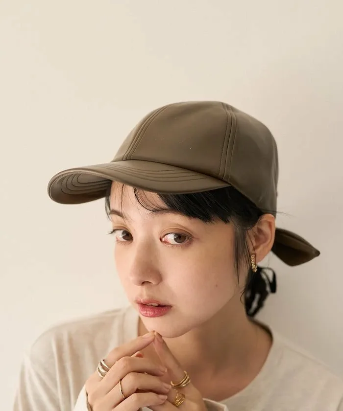 ●Кепка из искусственной кожи с плотной текстурой и милой ленточкой