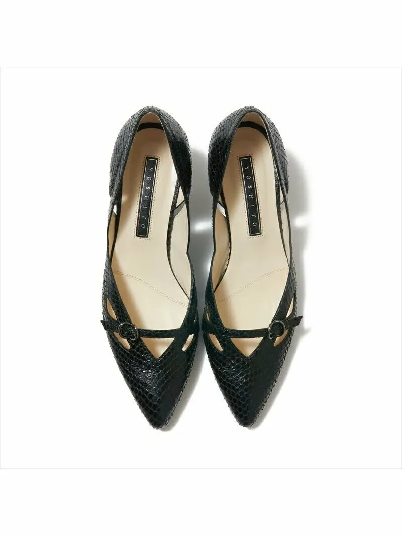 Представляем туфли-лодочки с расслабленным, пружинистым дизайном. V-образный вырез и тонкие ремешки выгодно подчеркивают форму стопы, надежно фиксируя подъем и создавая красивый силуэт. Тисненая кожа питона в той же цветовой гамме придает глубину, но не мешает вашему наряду, что делает их удобными в ношении. Слегка выступающий носок предотвращает соприкосновение пальцев с землей. Эта колодка также подходит для обладательниц длинных пальцев или загнутых вверх ногтей.