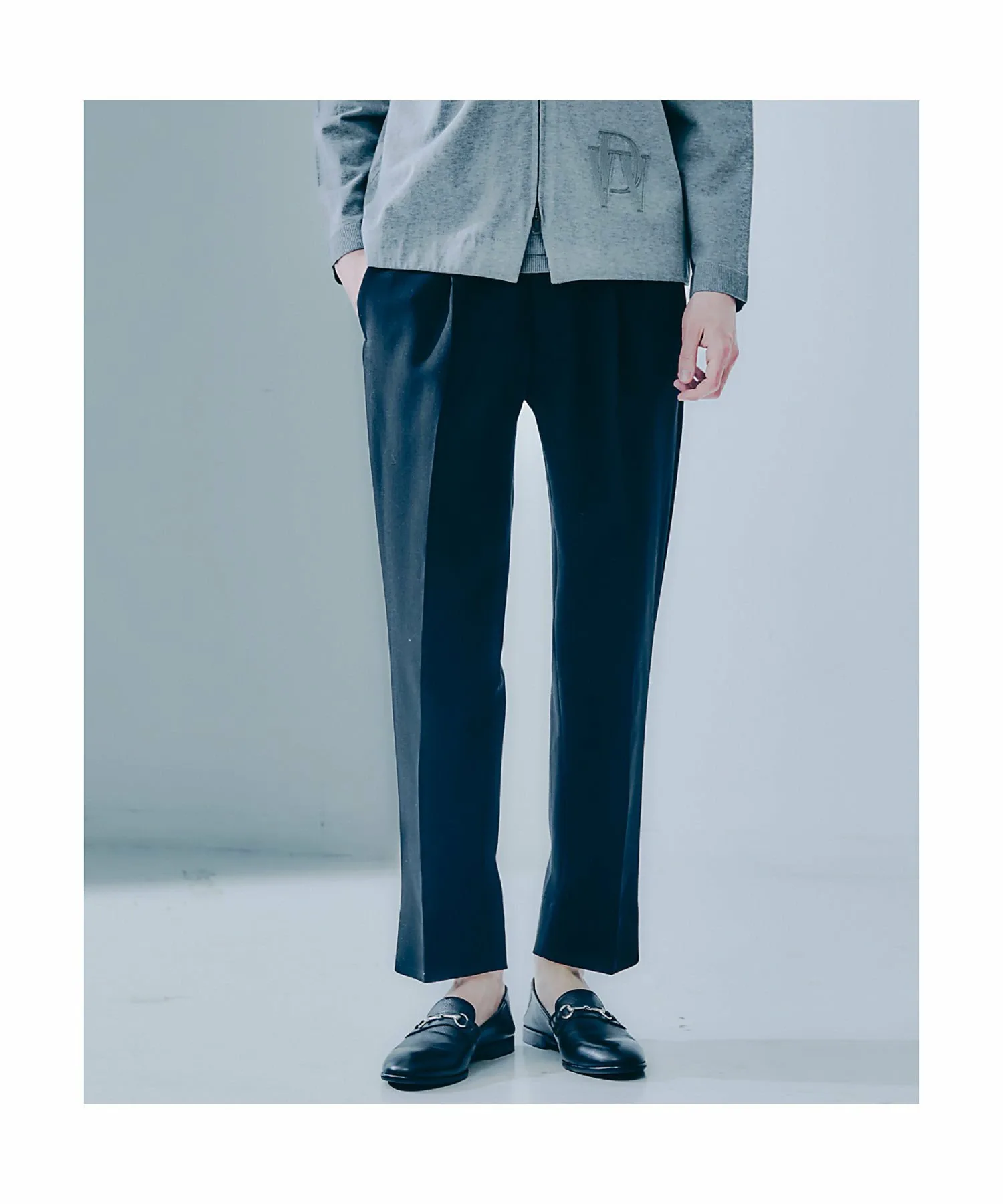 Эти брюки имеют зауженный, четко очерченный силуэт. Двойной материал обеспечивает им необходимую плотность и драпировку, что делает их идеальными для элегантного стиля.