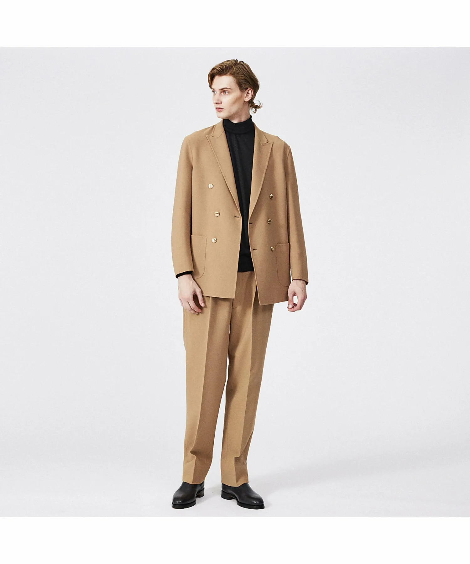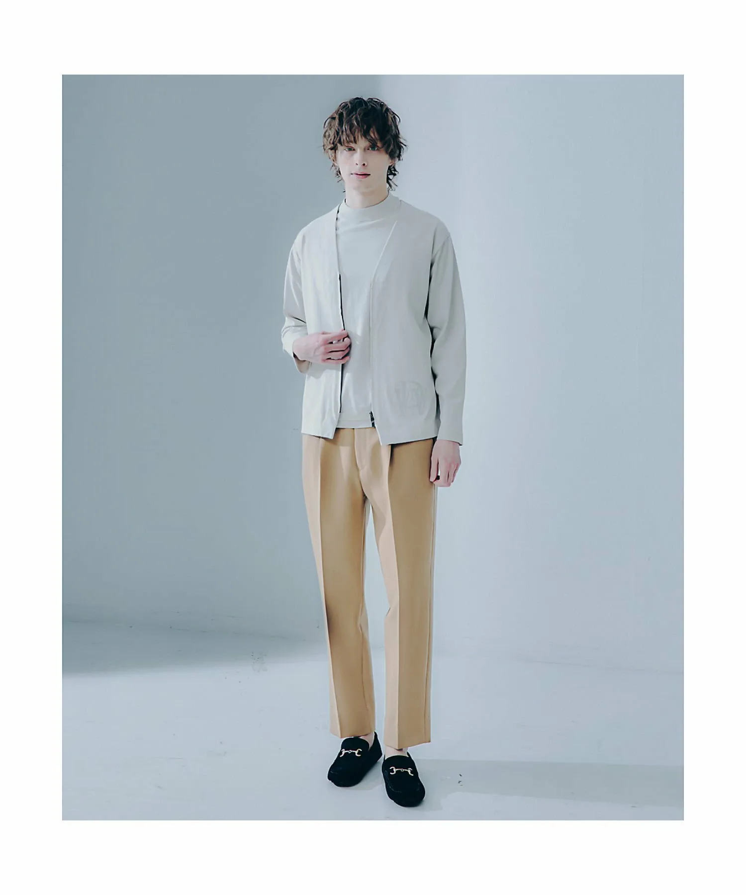 Двойной эластичный материал, изготовленный из скрученной смешанной пряжи [MASAKIYARN]. Гладкая и блестящая текстура ткани придает ей уникальную упругость и плотность, напоминающие шелк, несмотря на то, что это шерсть. Она также обладает эластичностью и драпировкой, что делает ее приятной на ощупь.