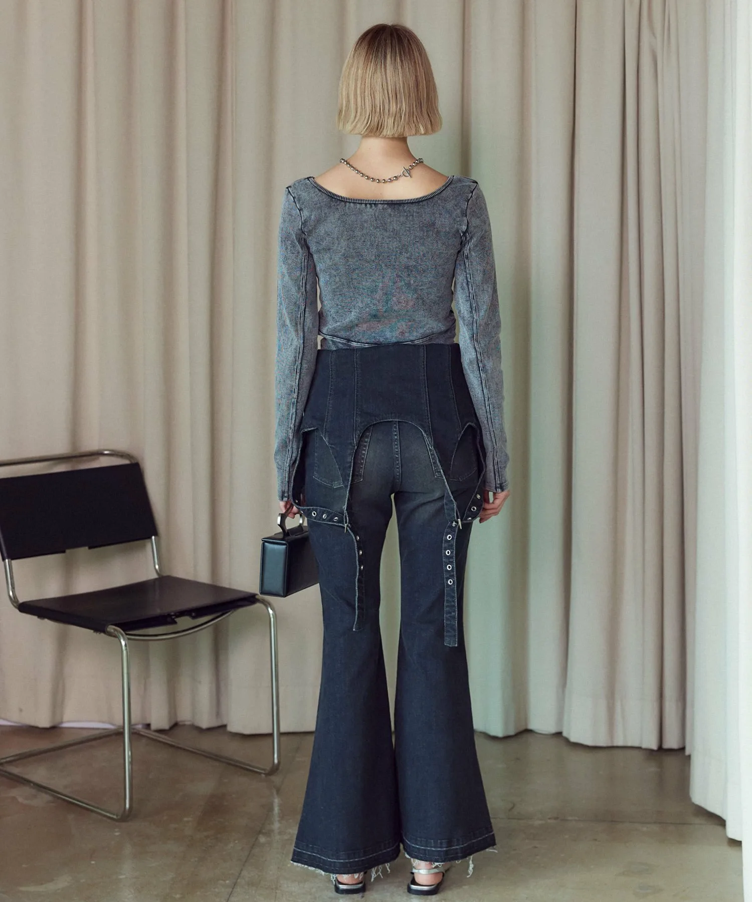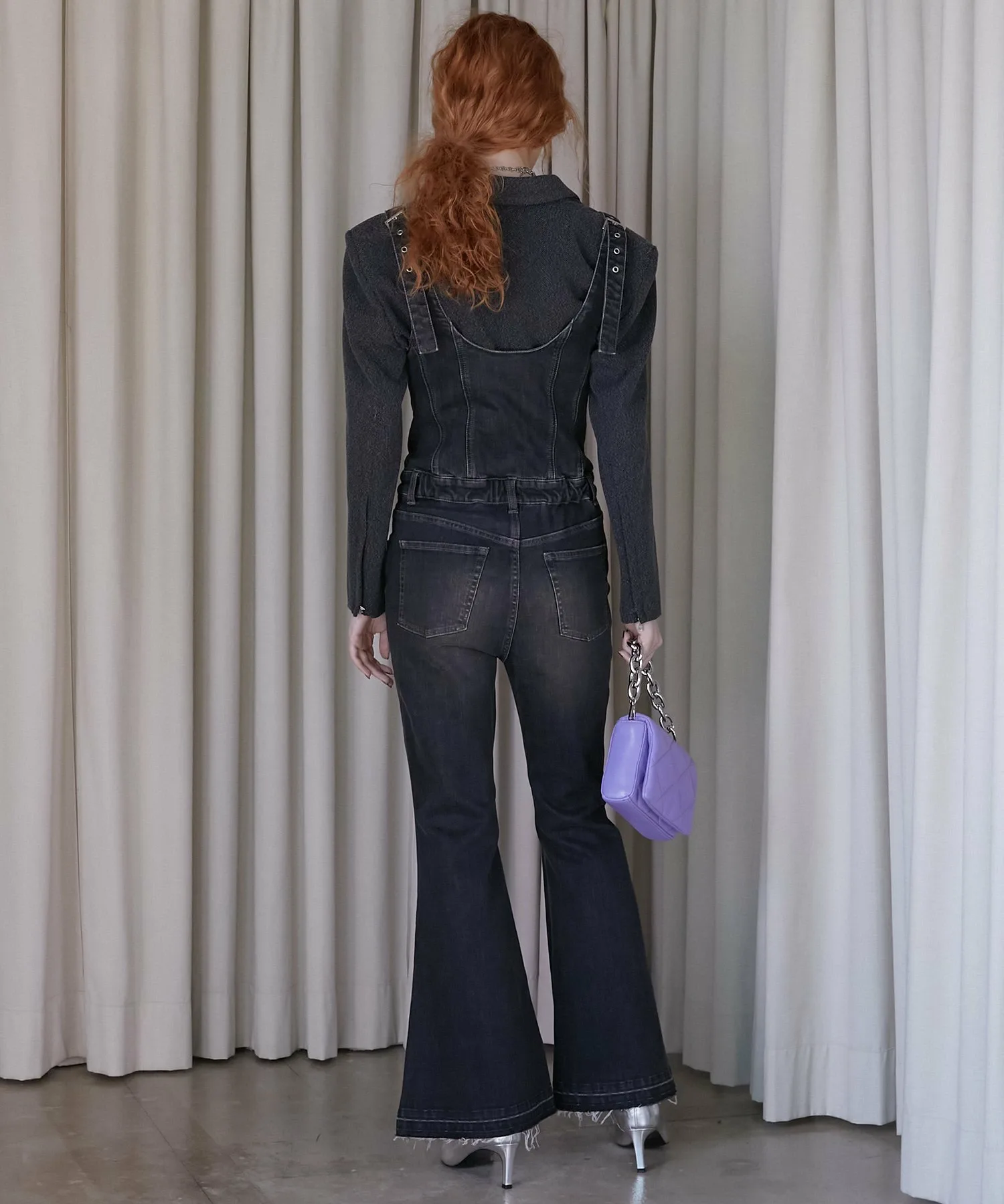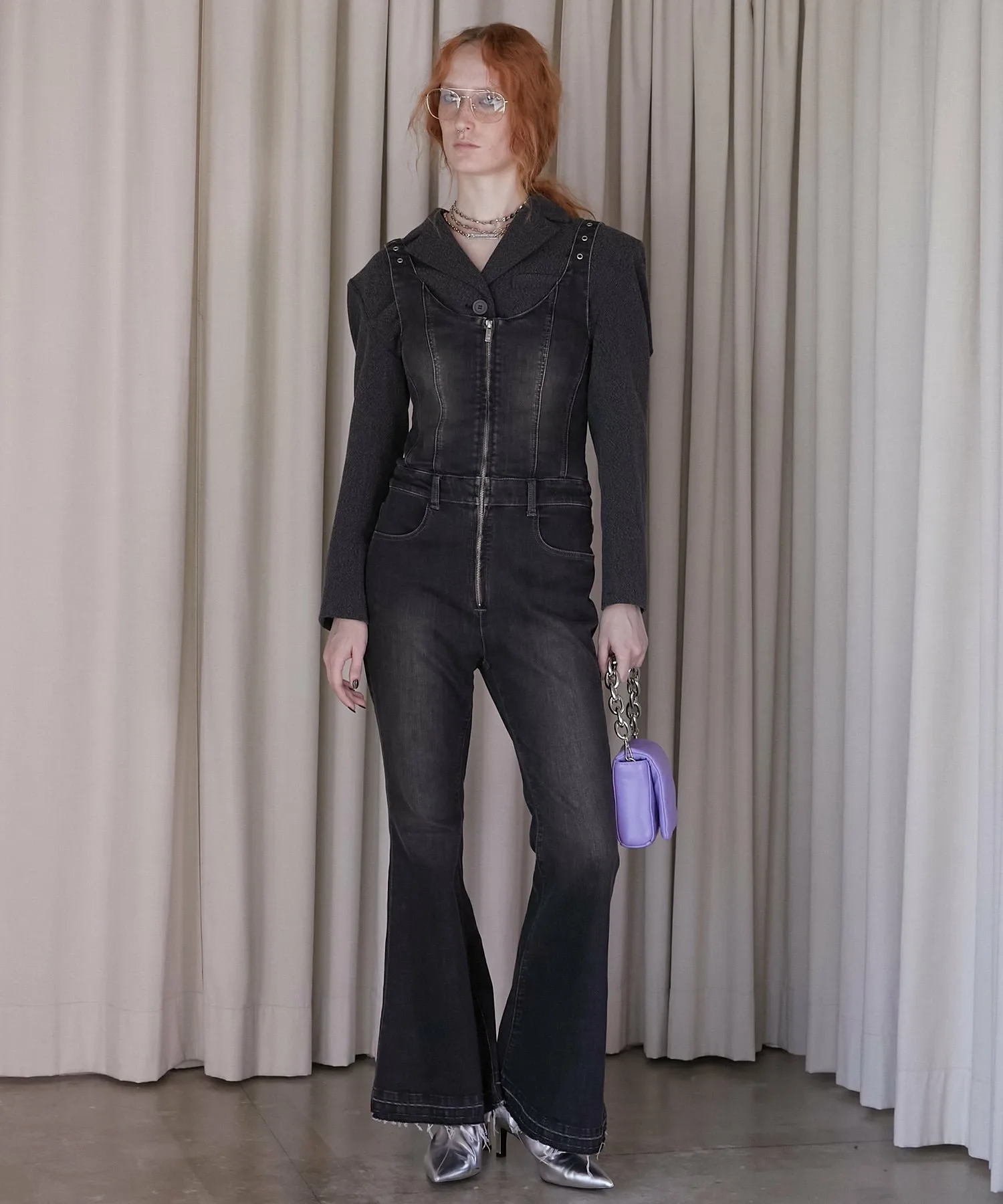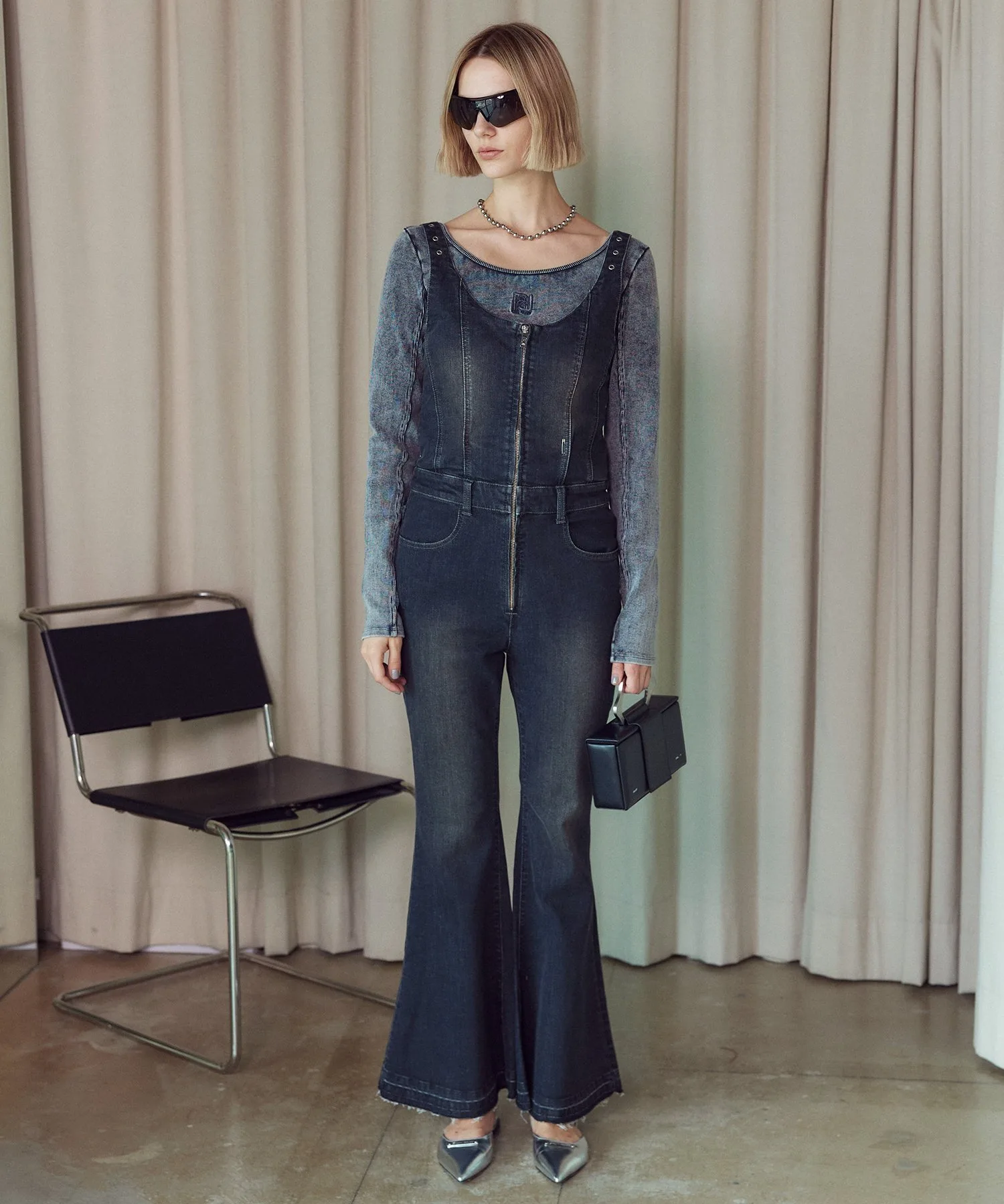 Джинсовый комбинезон со свежим и модным расклешенным силуэтом.