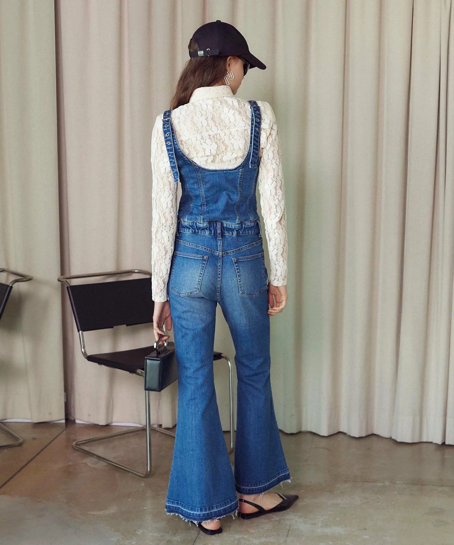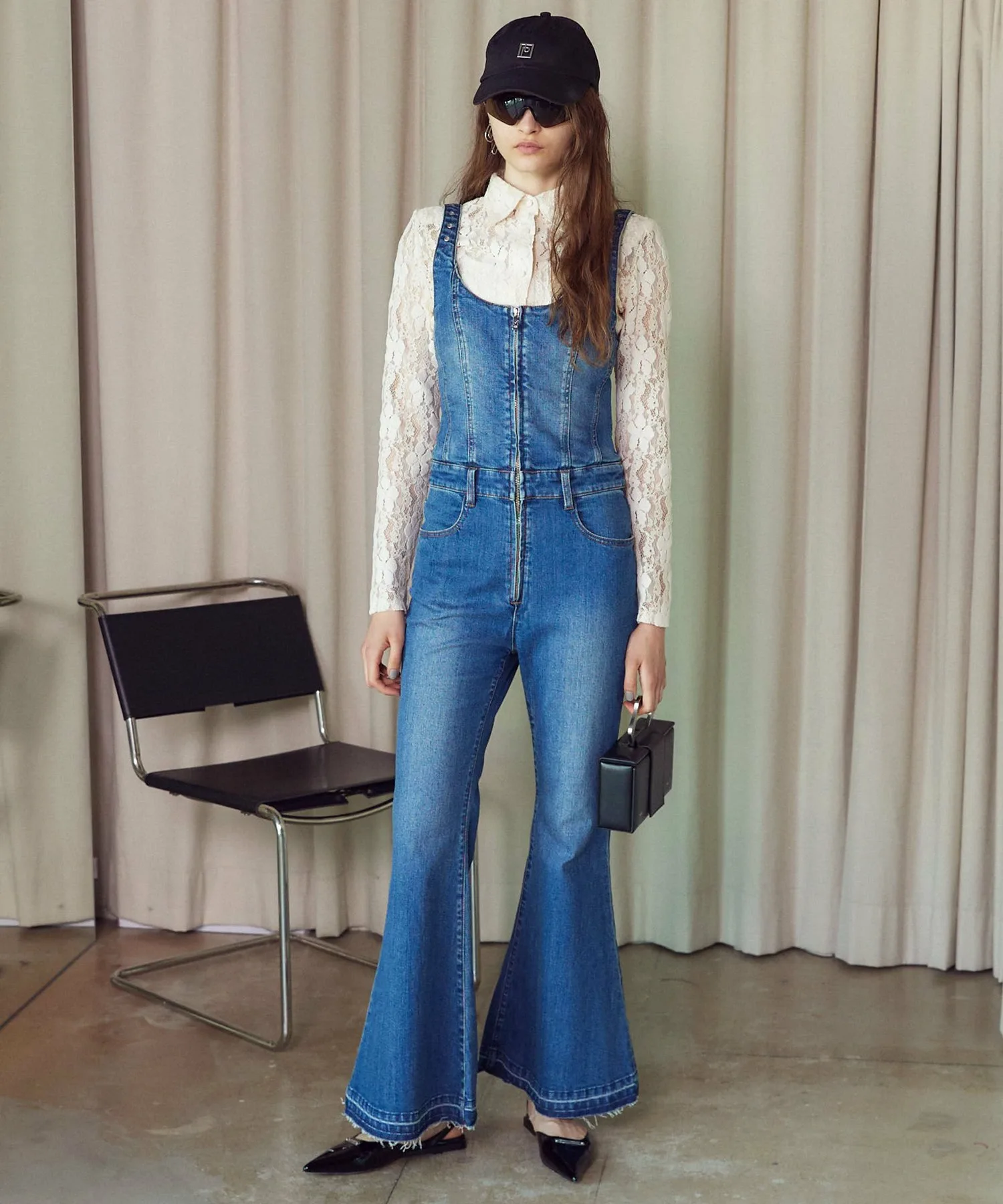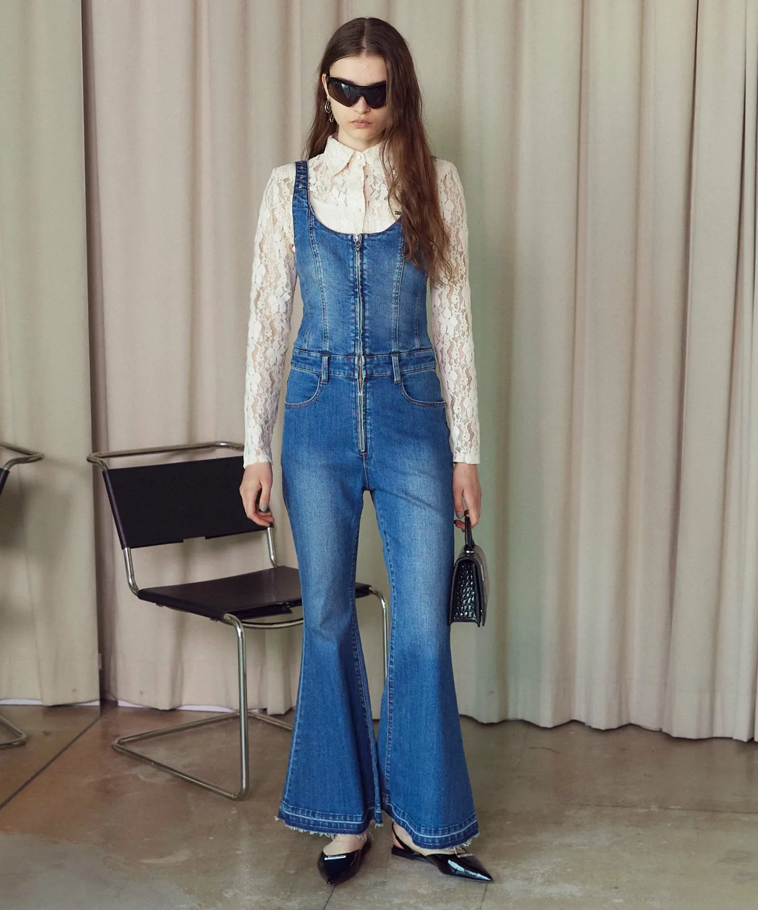 Джинсовый комбинезон со свежим и модным расклешенным силуэтом.