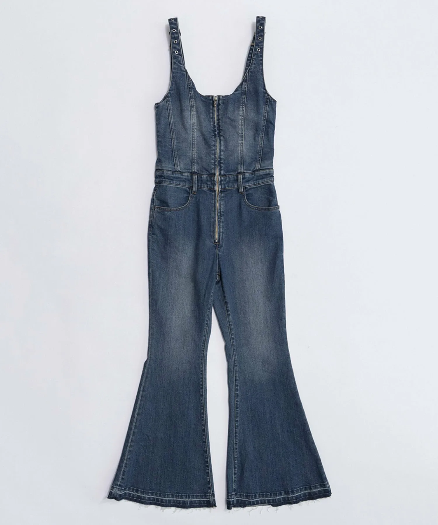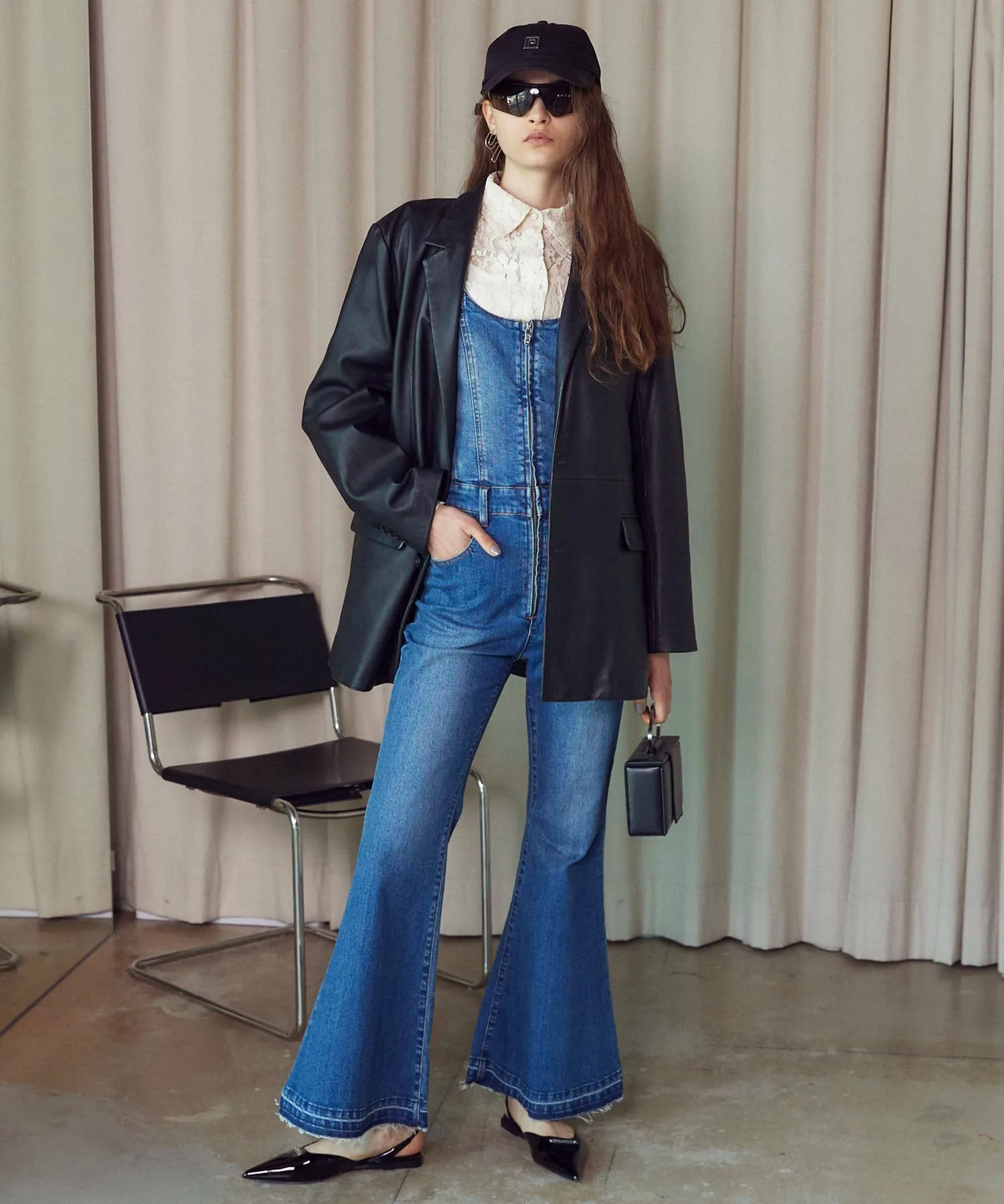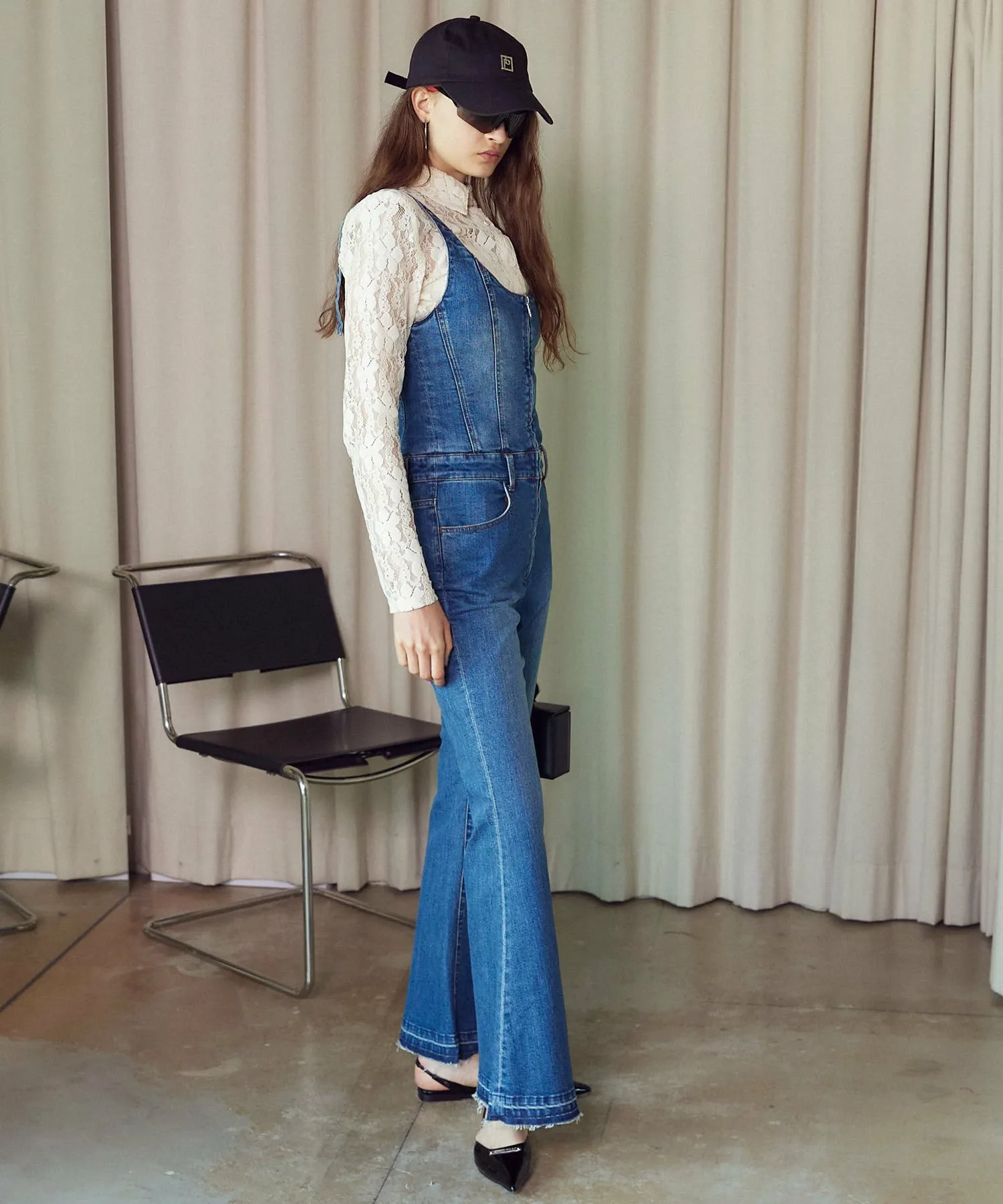 Джинсовый комбинезон со свежим и модным расклешенным силуэтом.
